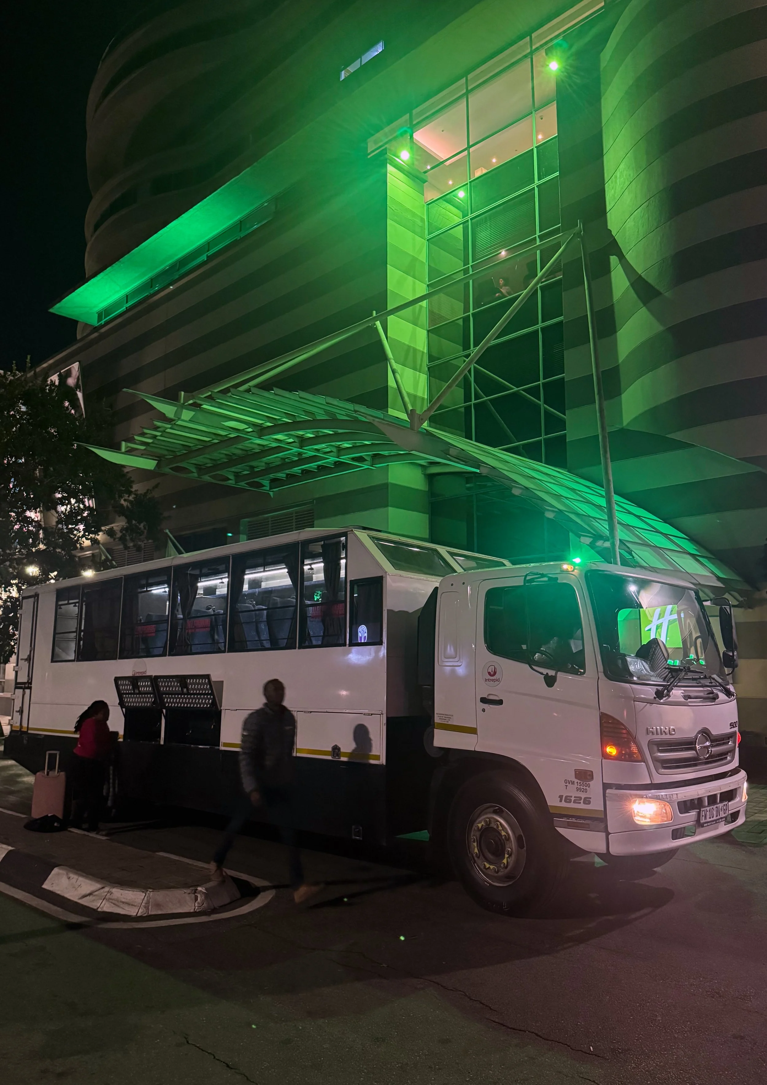 Intrepid are an Australian based travel company operational in over 100 countries around the world. Built on an ethos of taking little and returning more to the destinations they visit, they have earned a reputation for ethical tourism and ground roots travel experiences. We would be travelling in a custom built 24 seater overland bus featuring large viewing windows, personal lockers and African A/C for the next 10 days and it all started in the alien green glow of the Holiday Inn Johannesburg.