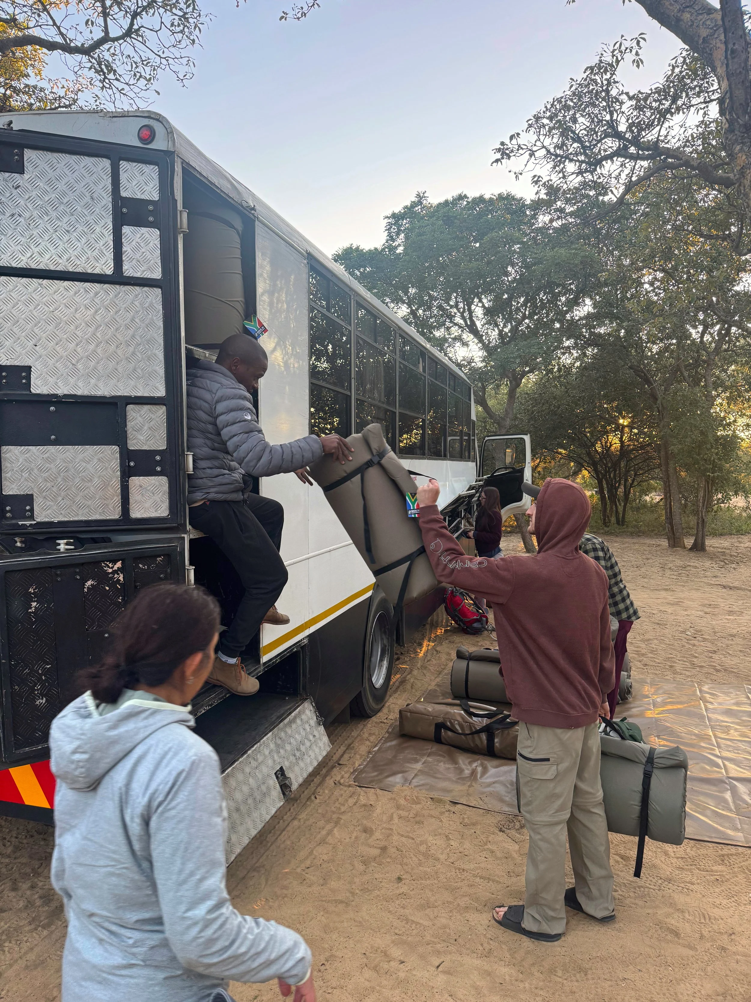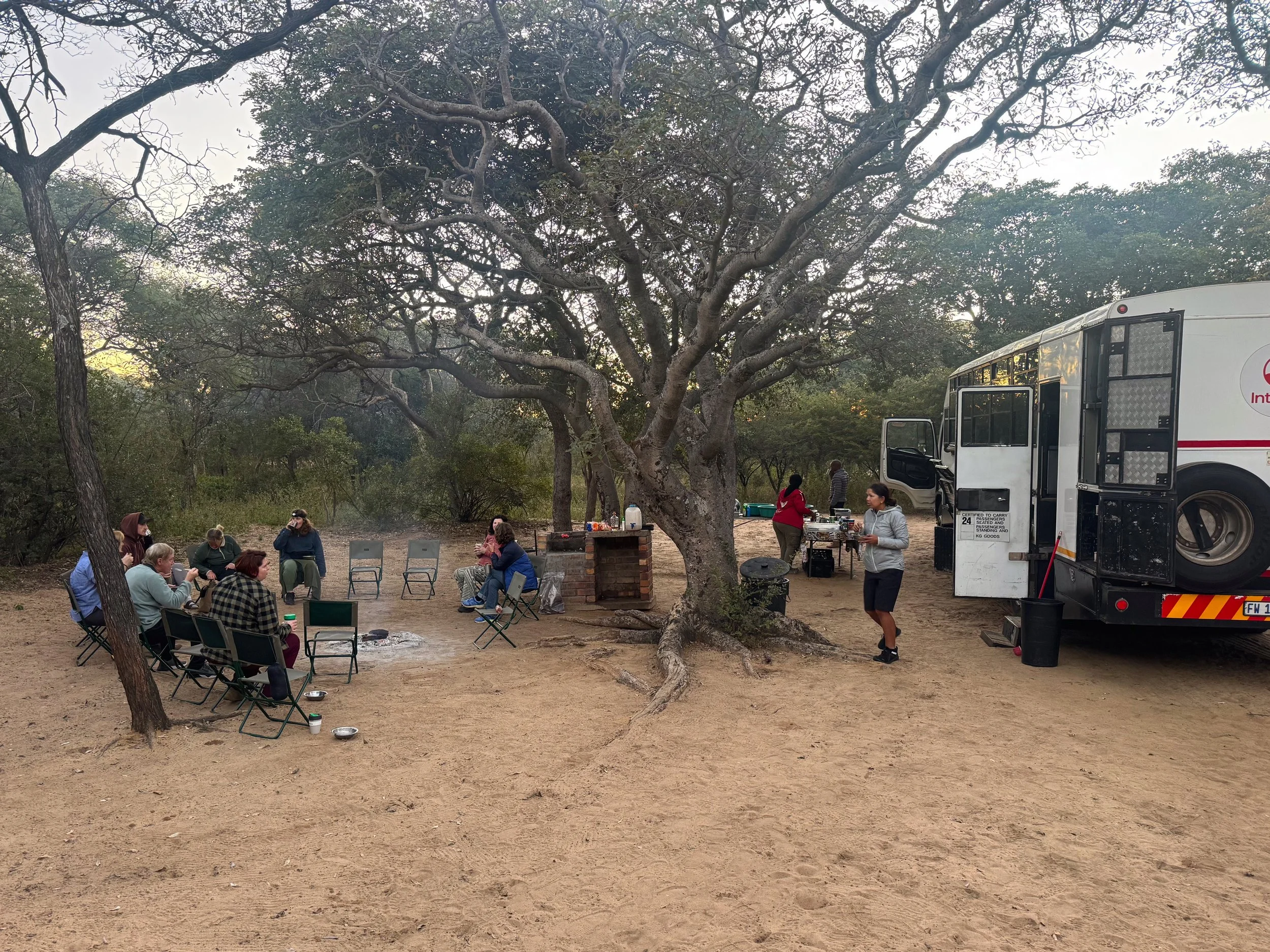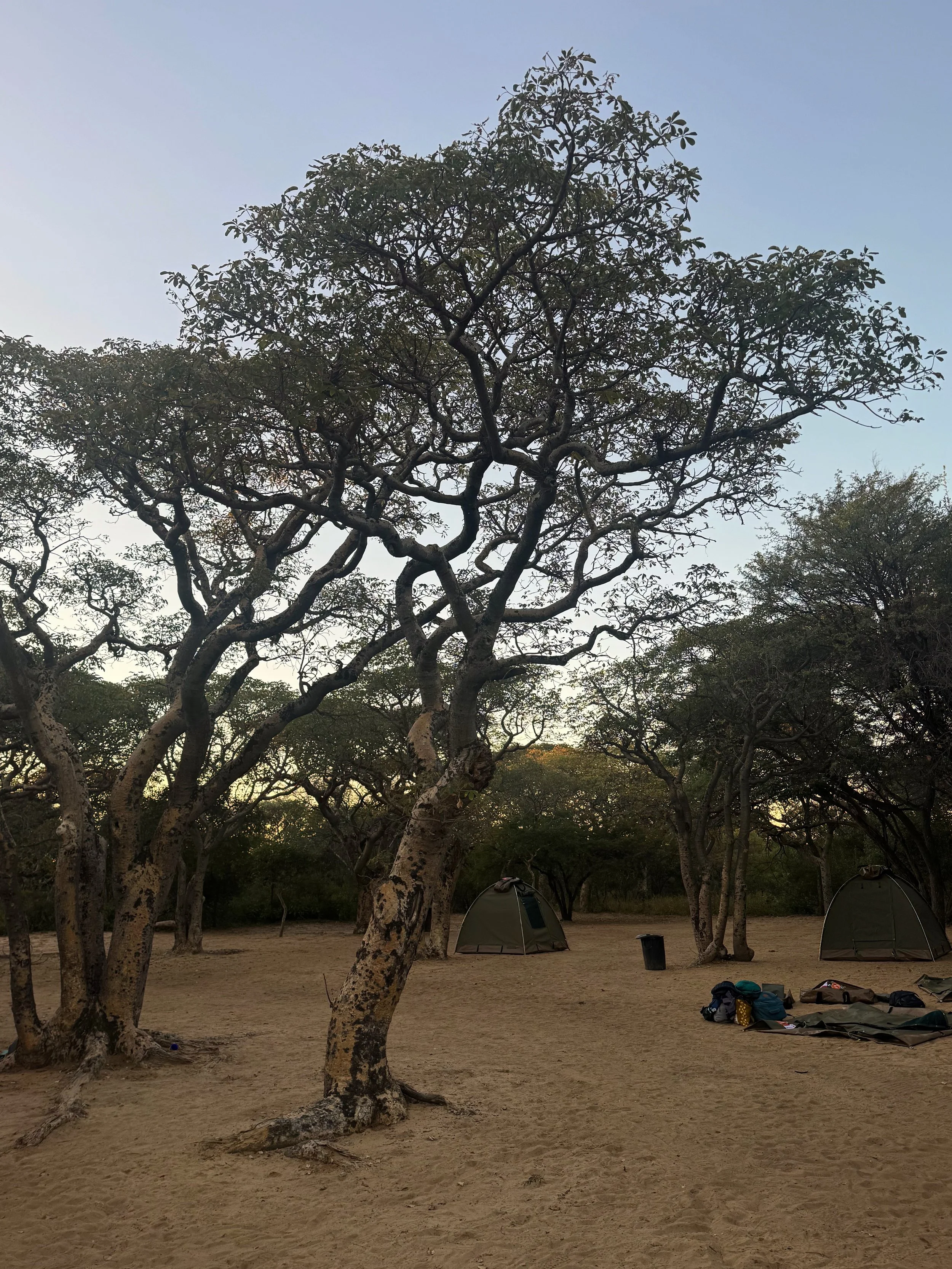 To many, a nylon sleeping bag laid over a 2 inch thick mattress housed in a dome shaped canvas tent barely sized to contain said mattress, on the African plains under a cloudless night sky in May perhaps mightn’t be the ideal holiday scenario, but to us it was romantic, nostalgic, and adventurous all at once. We were up before dawn well rested and spiritedly eager for the next leg of our journey despite its predictable longevity. Breakfast was as good as any and the dying embers of last nights fire were restored bringing both warmth and austerity to all.