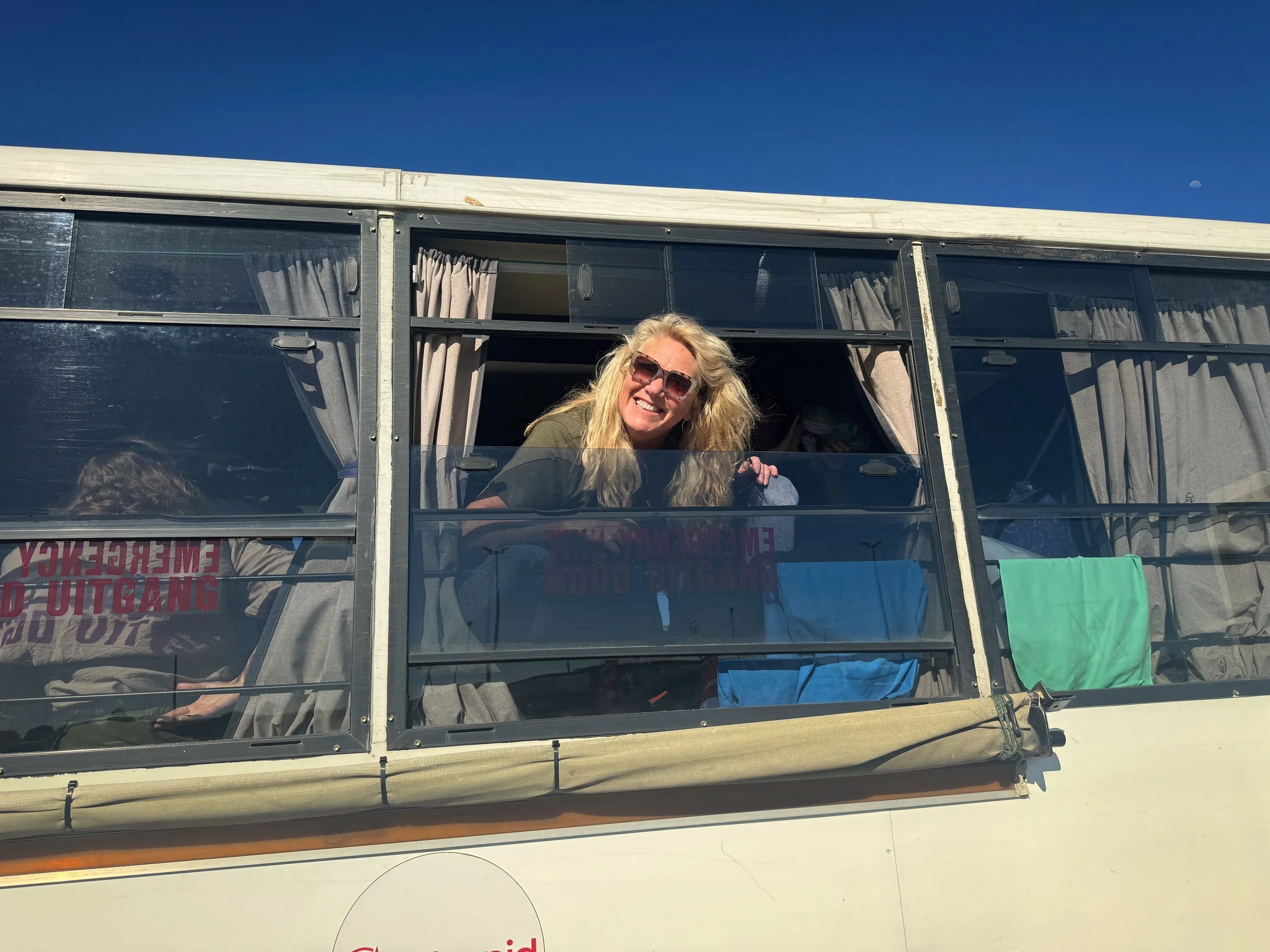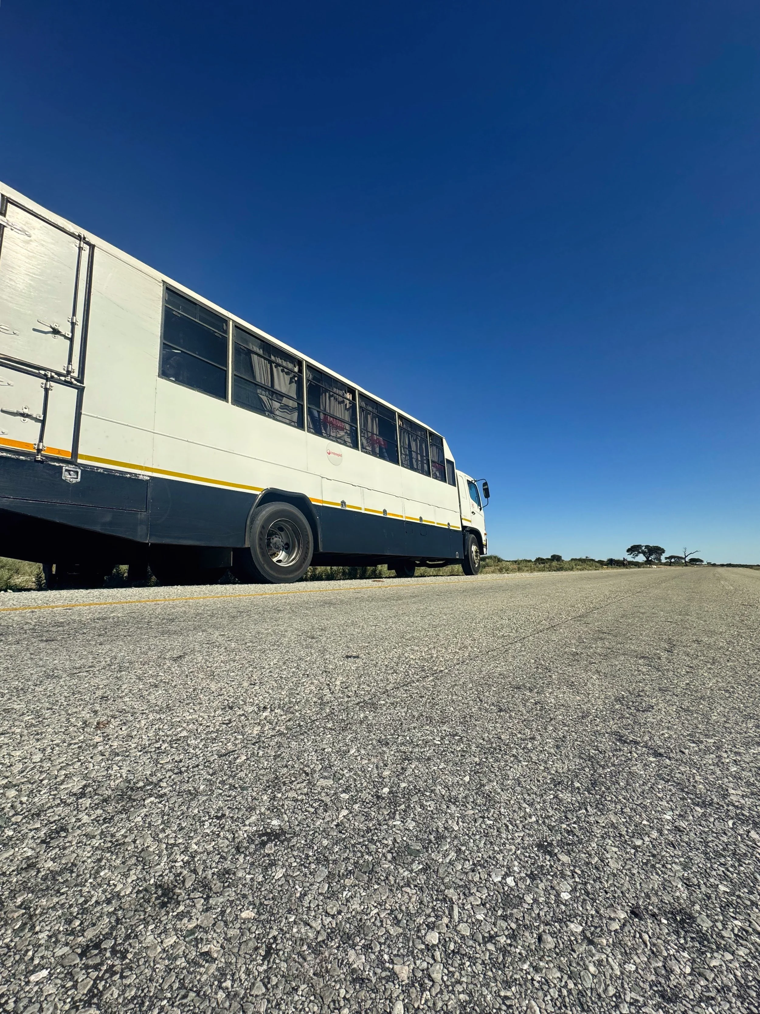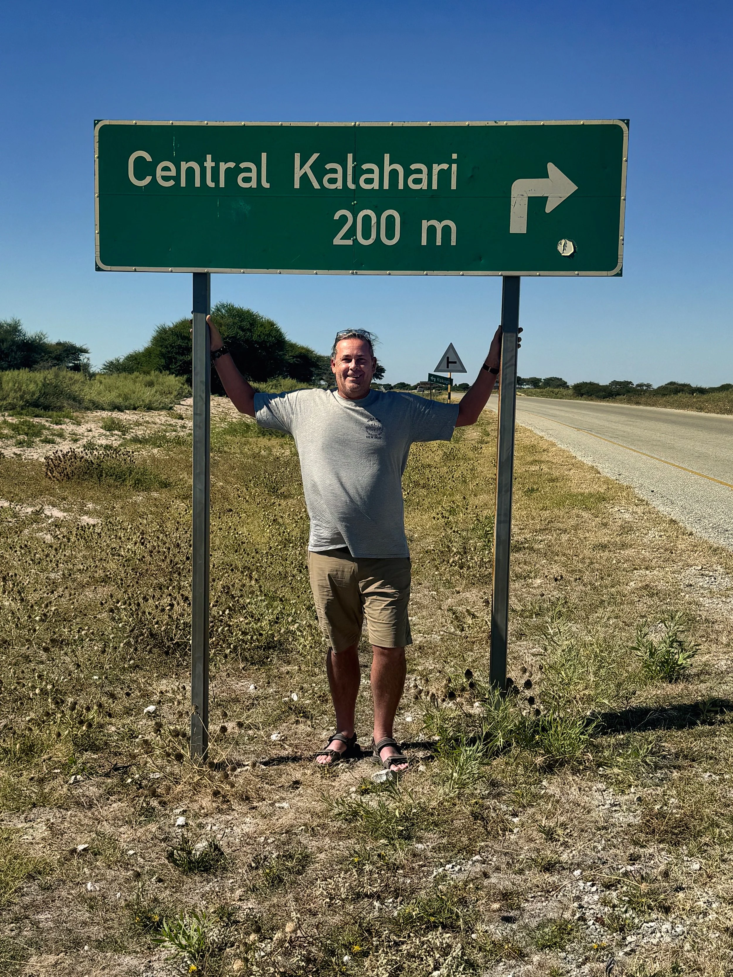 One of the rare highlights on such a long and arduous straight line jaunt down highway A14 was the passing of the Kalahari Desert. While we didn’t actually go through it, it was clearly seen from the bus and ran flat and straight for miles. As a large semiarid sandy savanna covering 900,000 km2 throughout much of Botswana, when spotted it was a great opportunity to get out and stretch the legs and have a “bushey-bushey”.