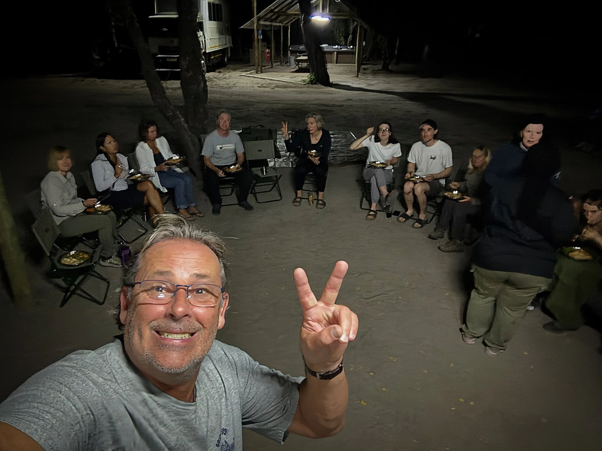 We arrived into Maun mid afternoon to find Sitatunga Campsite on the outskirts of town where we would be spending the night. Immediately this was different to Khama with full facilities including pool, bar and restaurant together with a rustic but clean amenities block and campsite incorporating sheltered areas and electric outlets for charging our gadgets. It was by no means the Ritz but more than we ever expected given this tour was categorised “basic camping” in the brochure. After the tents were pitched and everything removed from the bus and set up for the night, Fatpap who had by now had a gutful of travel and bus confinement, plunged into the refreshment of both the onsite pool and a gin & tonic. Both served their immediate purpose, and with all the grumpy washed away, we set up stumps at one of the outdoor tables for a round or 5. Dinner soon followed together with a full briefing of our journey tomorrow to the Okavango Delta but there was also some other housekeeping to address. A milestone tried to slip through the cracks last night unnoticed so with some clever foraging work yielding a cake and candles, we all helped celebrate Duncan’s birthday. Needless to say the excitement was palpable with plenty more libations had at the bar.