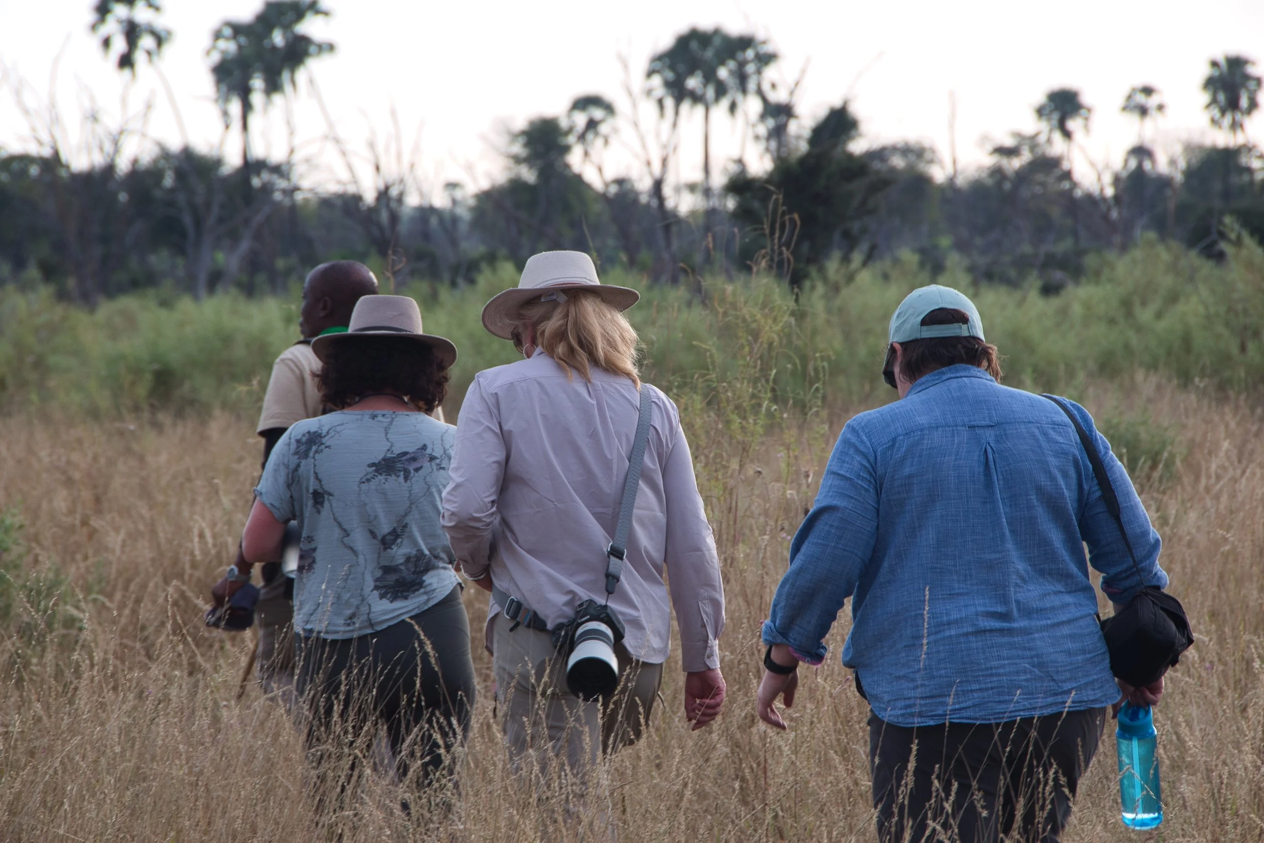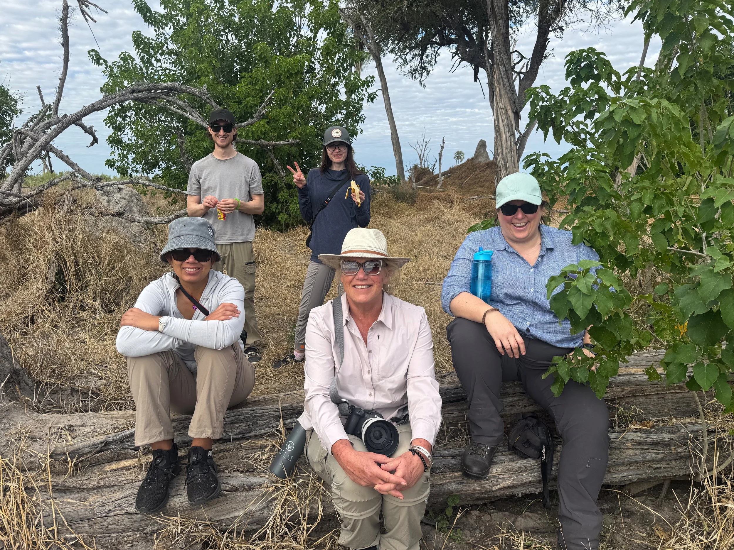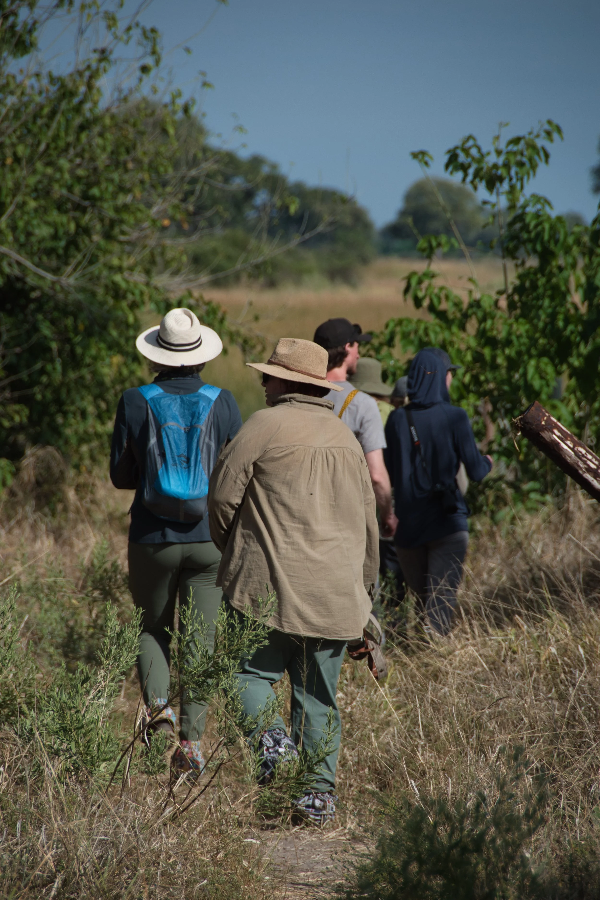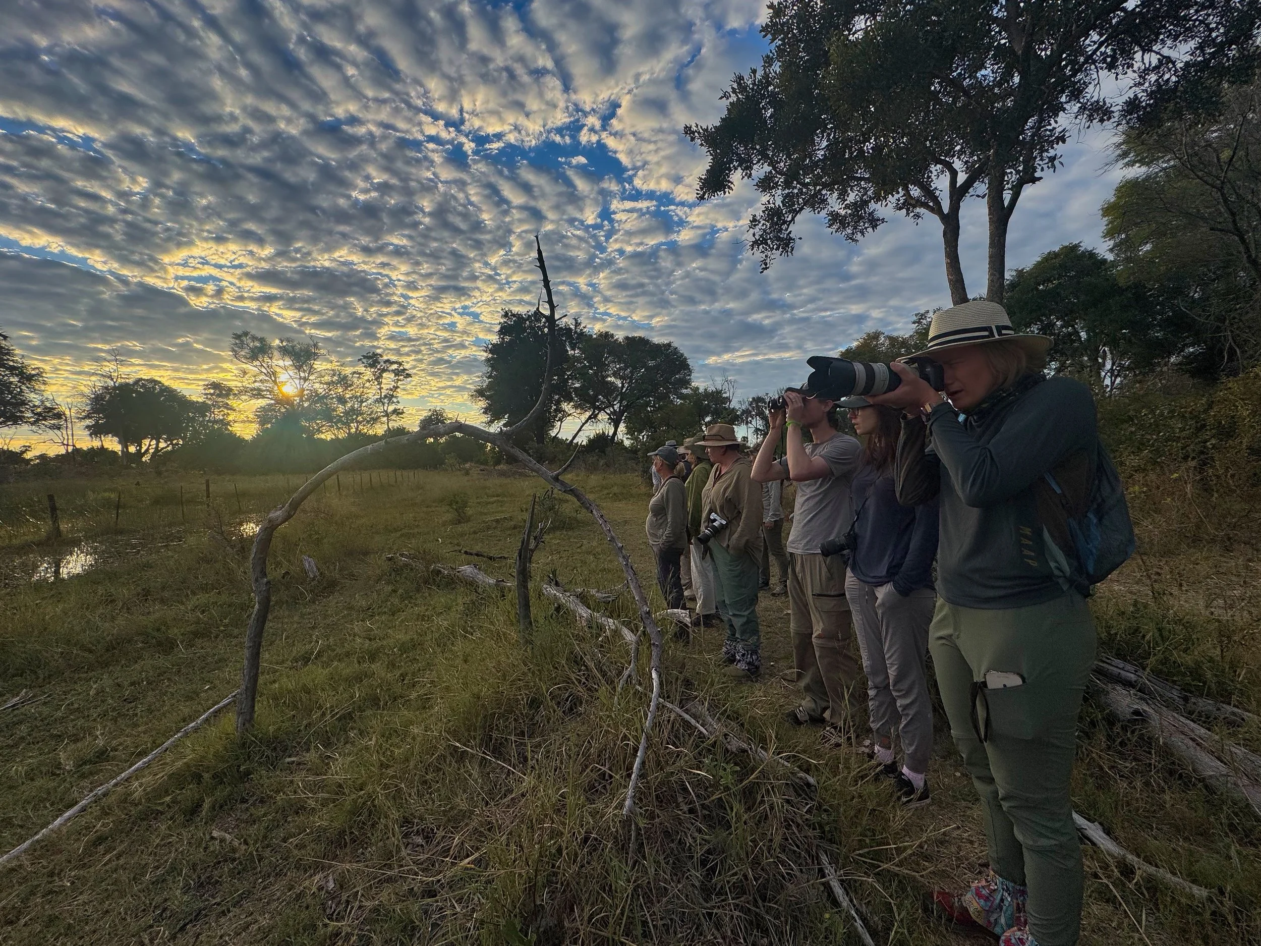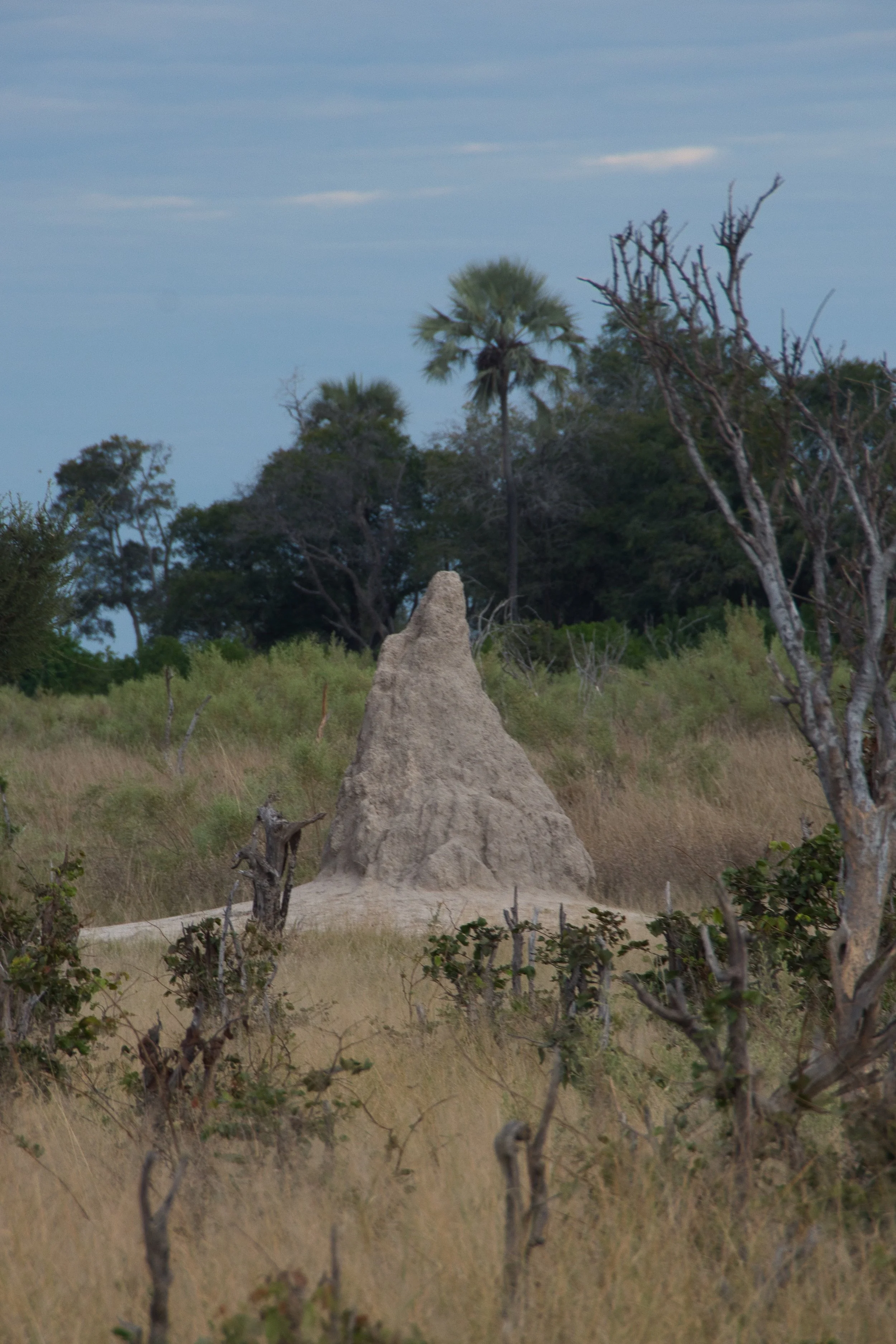 Vegetation was primarily a combination of shrubs and grasses but the Okavango Delta is home to a diverse range of tree species including iconic baobabs, figs, and palms which have adapted to the unique wetland environment. These trees play a vital ecological role providing food and shelter for wildlife and hold cultural significance for local communities. Throughout the walk the guides pointed out the unmistakable patterns of animal behaviour, particularly when feeding, together with fresh lion prints they astutely steered us away from. Termite mounds peppered the landscape containing yet another bio-society within the complex African terrain while freshly produced elephant dung brought on any number of childish jokes.