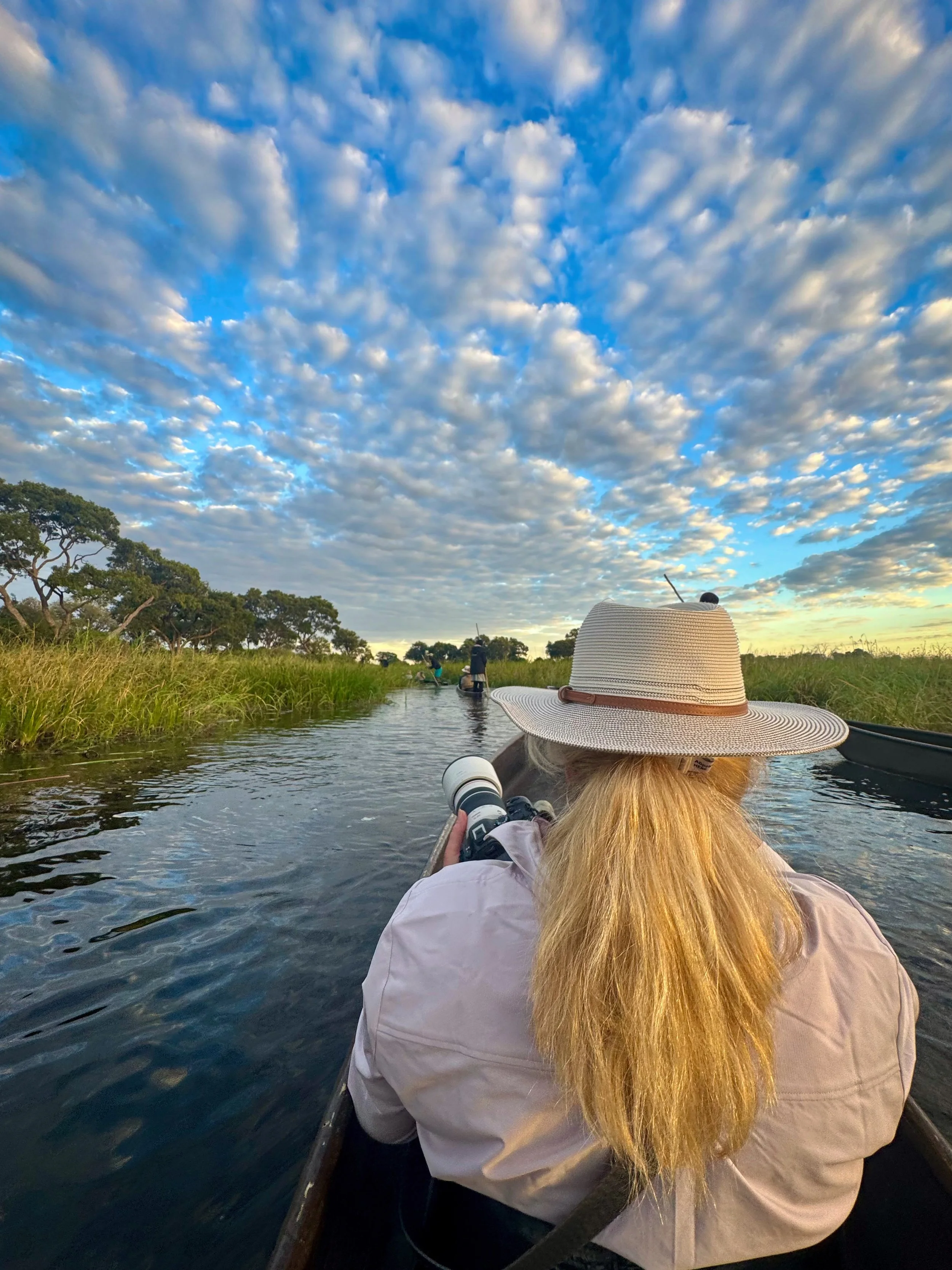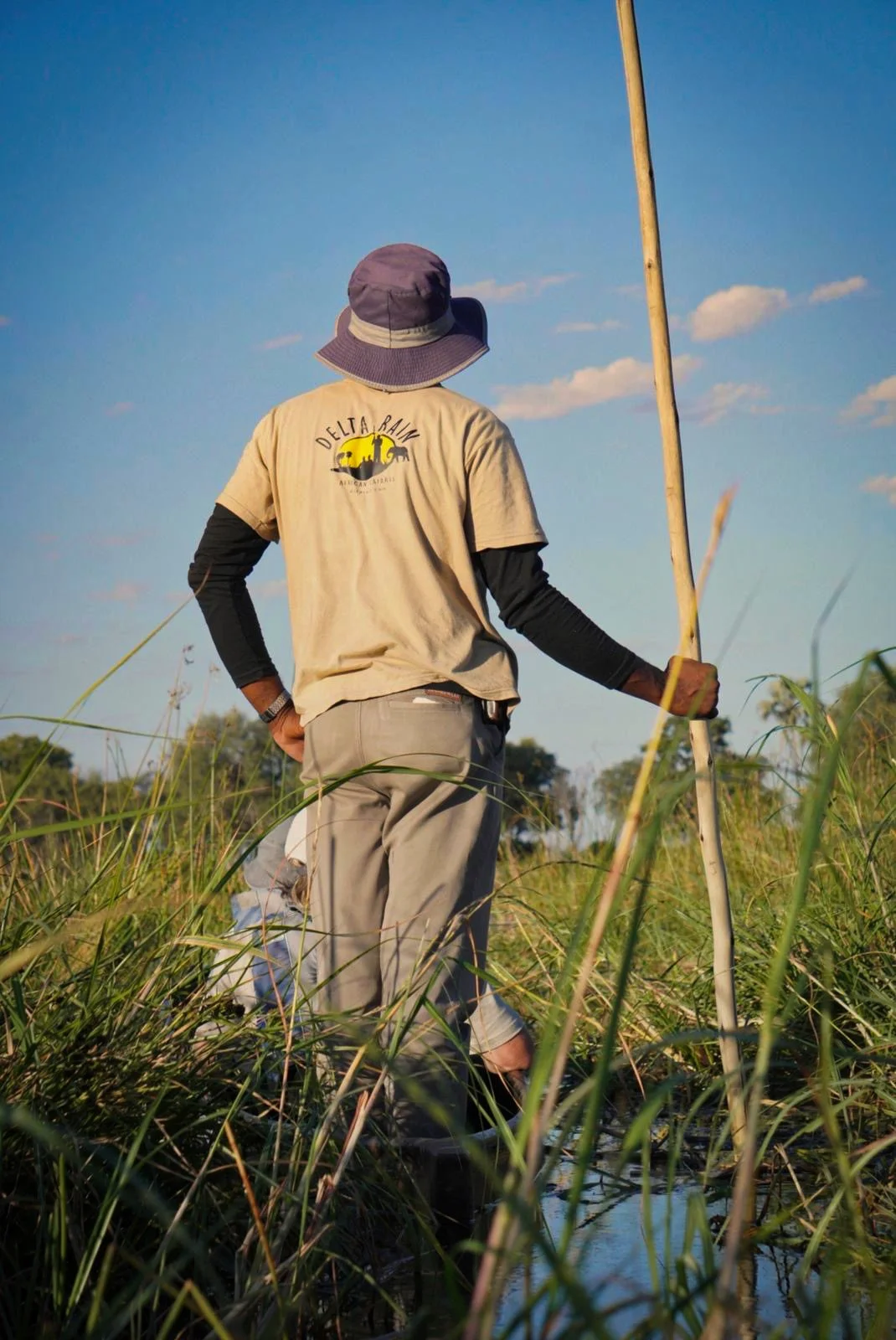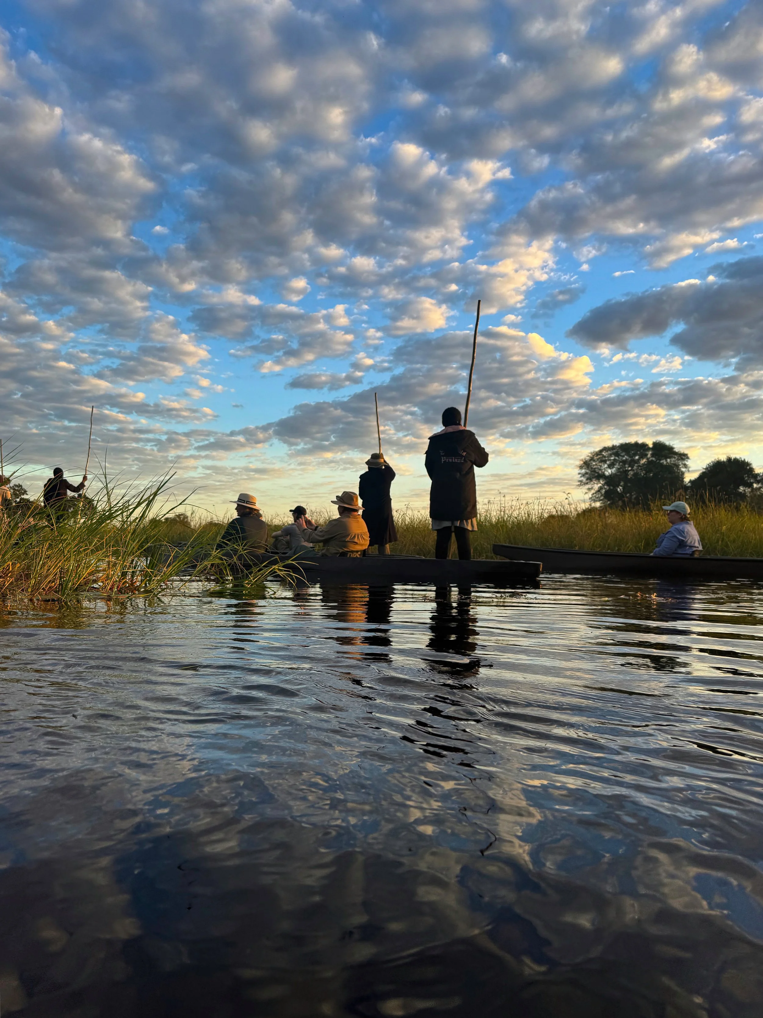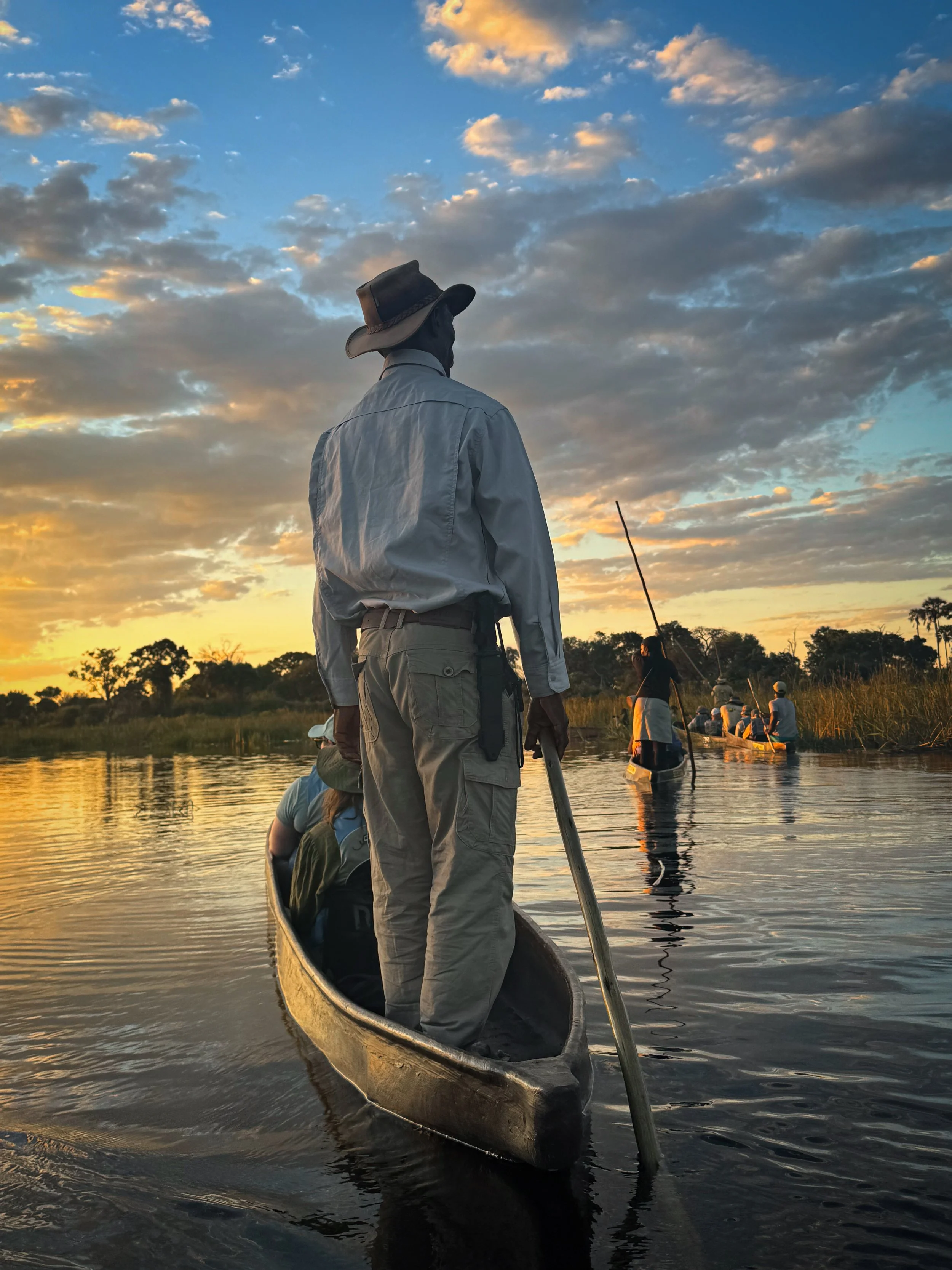 The day finished the way it started, on a canoe chasing both hippos and the sun over the tranquil surface of the Okavango River. Late afternoon we set sail again in the hope of catching some hippopotami doing some hippopotami things and hit pay dirt almost immediately. Finding several animals in a large pool near the opposite bank, they were frolicking and splashing in the water and playfully interacting with each other. As we were in the last mokoro of the fleet we couldn’t get in close enough to see this first hand, but those that did said it was both amazing and a little frightening. But if frightening was on anyones hippo-bingo card it was Pete & Champay winning the chicken. Poling further down river the canoes began to spread out a little with the lead boat in search of any hippos. From our vantage point all we saw was the poler move a hell of a lot quicker than usual to turn the craft around and get out of the channel. The cries coming from his passengers told us what happened even though we couldn’t see it. Over the coming days that tale grew some gilded legs with Pete constantly closing the distance between man and hippo on each retelling. The beast would become known as Bonecrusher, and Peter, well he became Hippopotamus Pete.