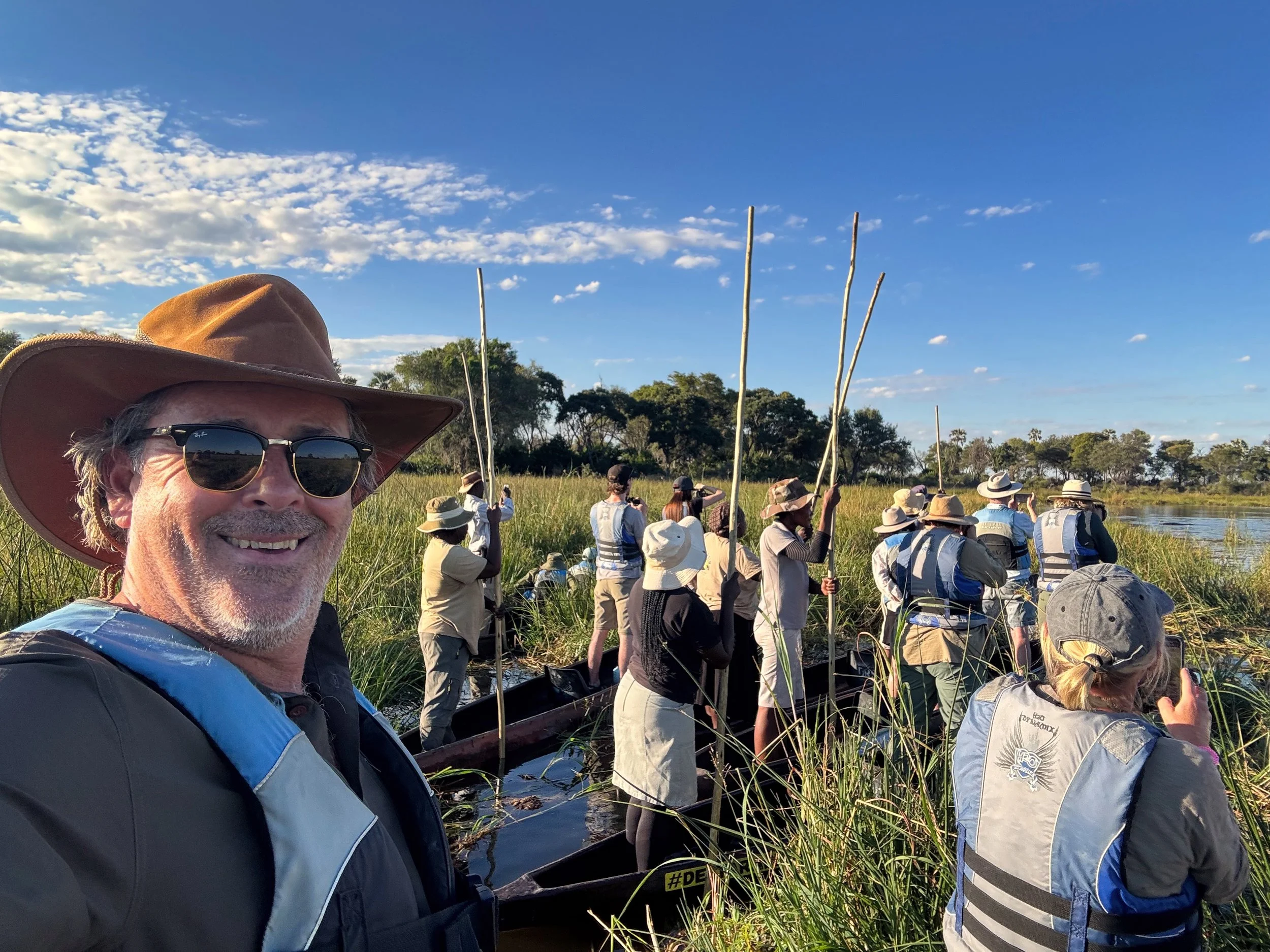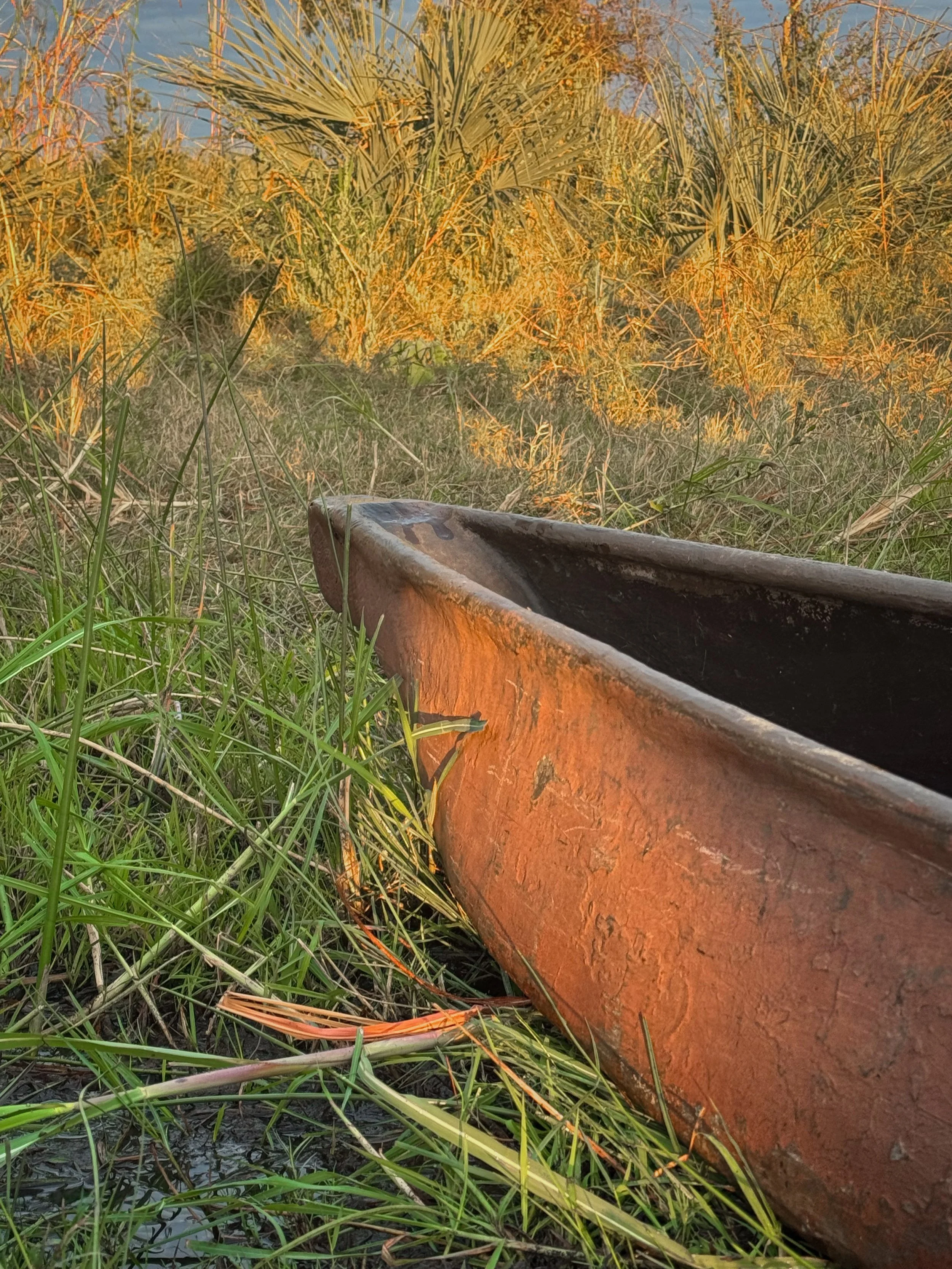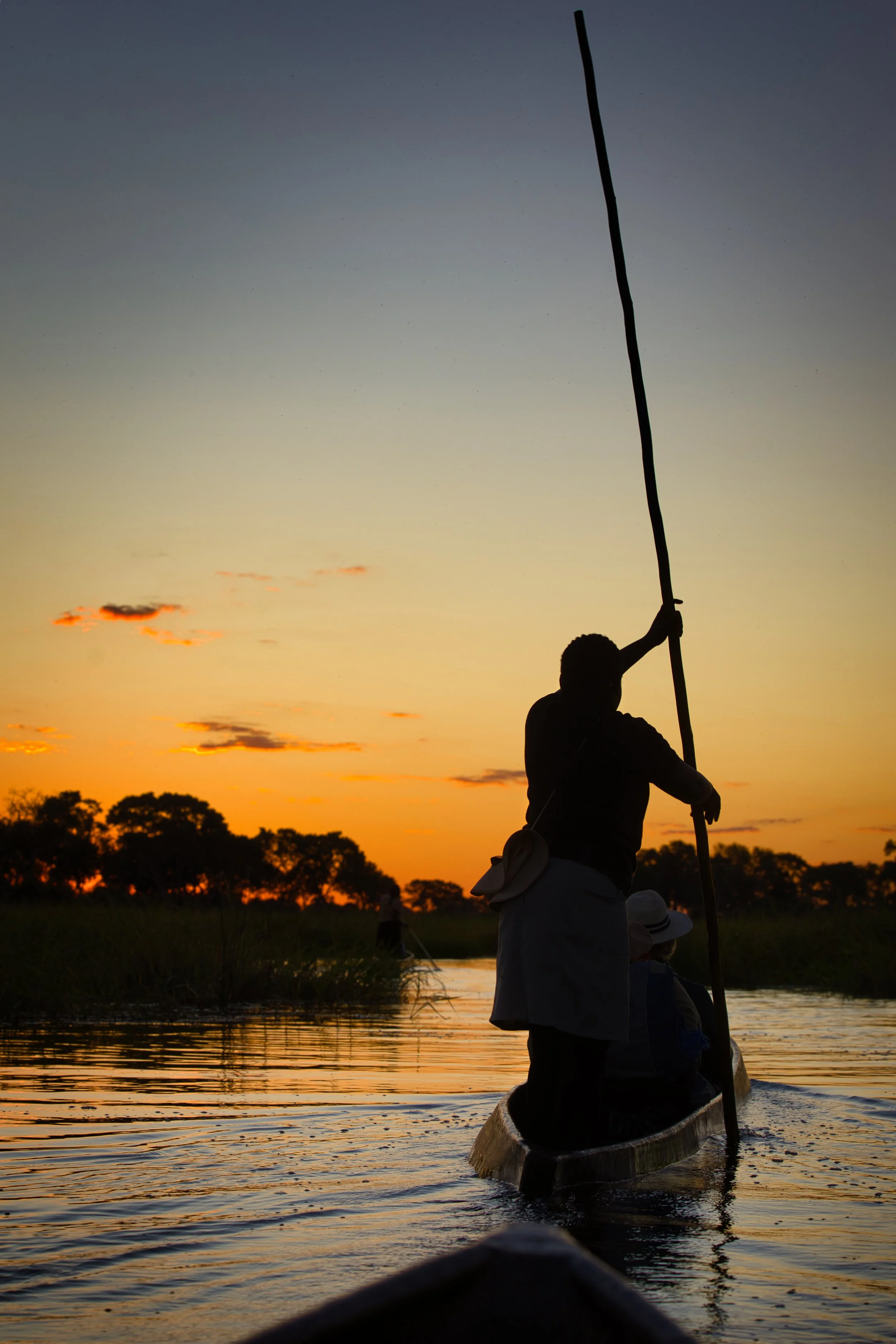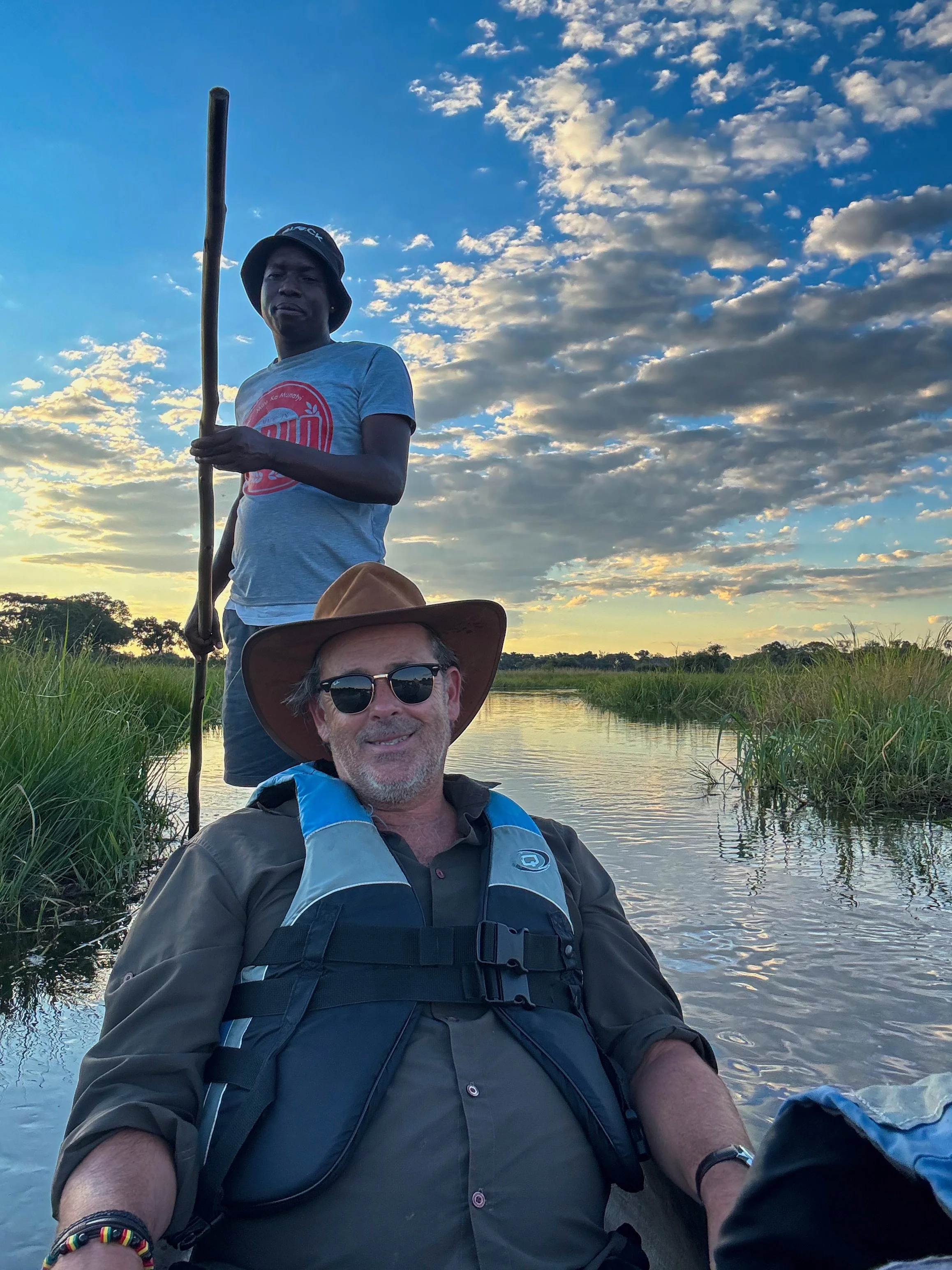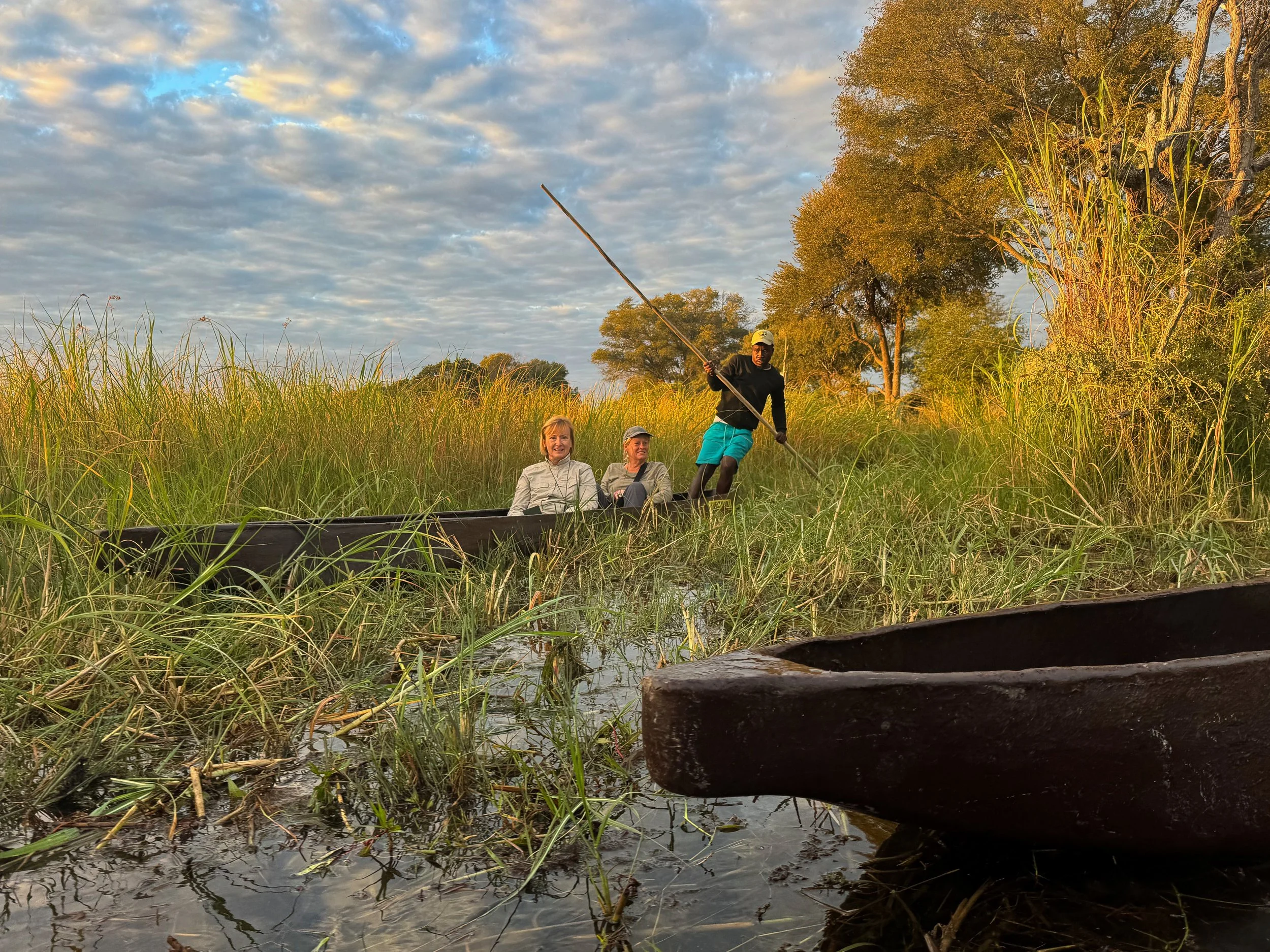 The day finished the way it started, on a canoe chasing both hippos and the sun over the tranquil surface of the Okavango River. Late afternoon we set sail again in the hope of catching some hippopotami doing some hippopotami things and hit pay dirt almost immediately. Finding several animals in a large pool near the opposite bank, they were frolicking and splashing in the water and playfully interacting with each other. As we were in the last mokoro of the fleet we couldn’t get in close enough to see this first hand, but those that did said it was both amazing and a little frightening. But if frightening was on anyones hippo-bingo card it was Pete & Champay winning the chicken. Poling further down river the canoes began to spread out a little with the lead boat in search of any hippos. From our vantage point all we saw was the poler move a hell of a lot quicker than usual to turn the craft around and get out of the channel. The cries coming from his passengers told us what happened even though we couldn’t see it. Over the coming days that tale grew some gilded legs with Pete constantly closing the distance between man and hippo on each retelling. The beast would become known as Bonecrusher, and Peter, well he became Hippopotamus Pete.