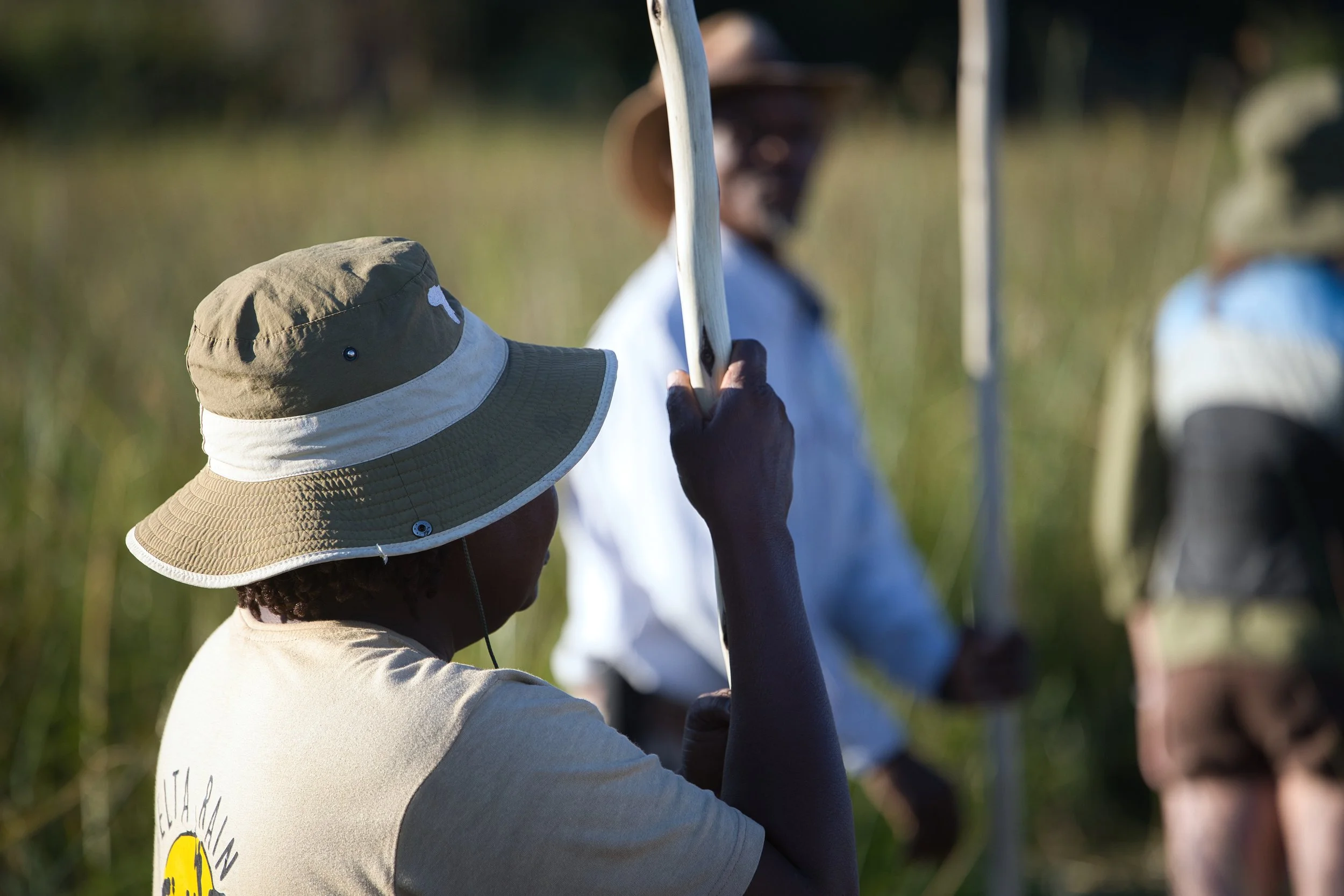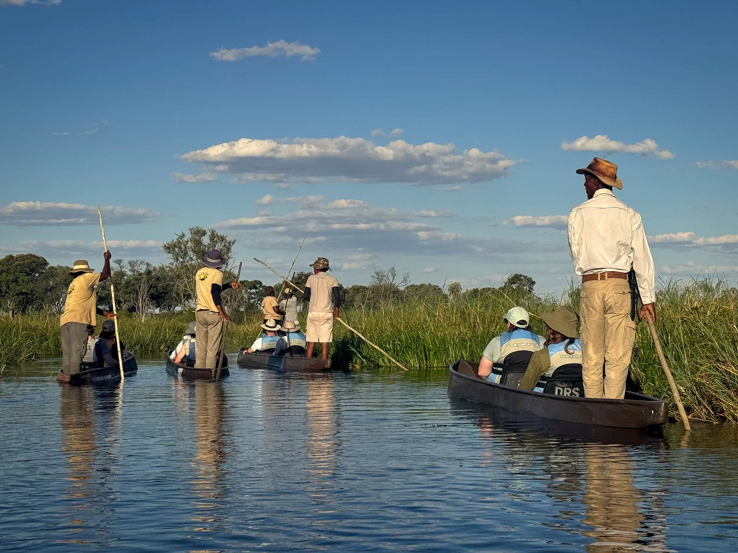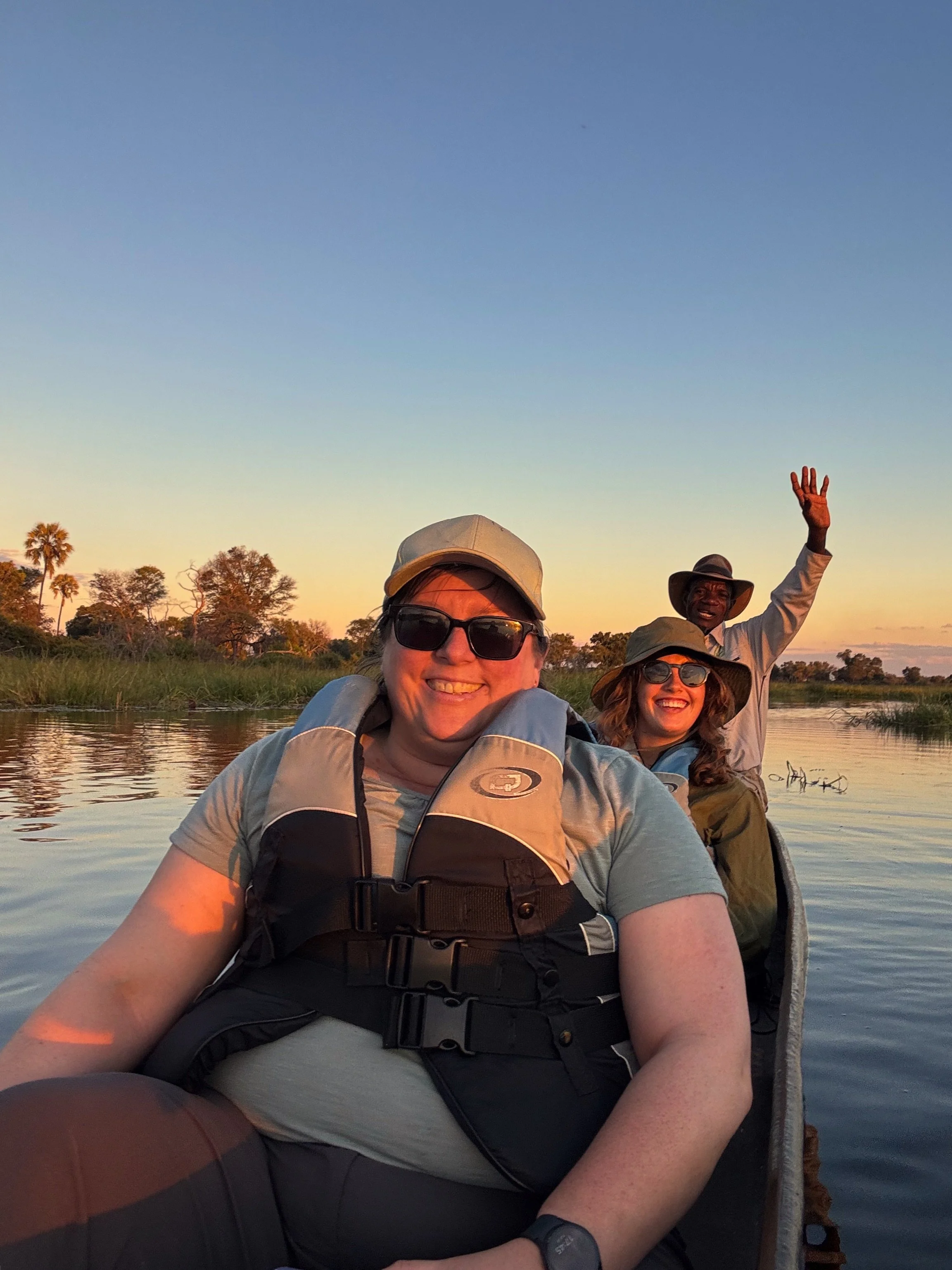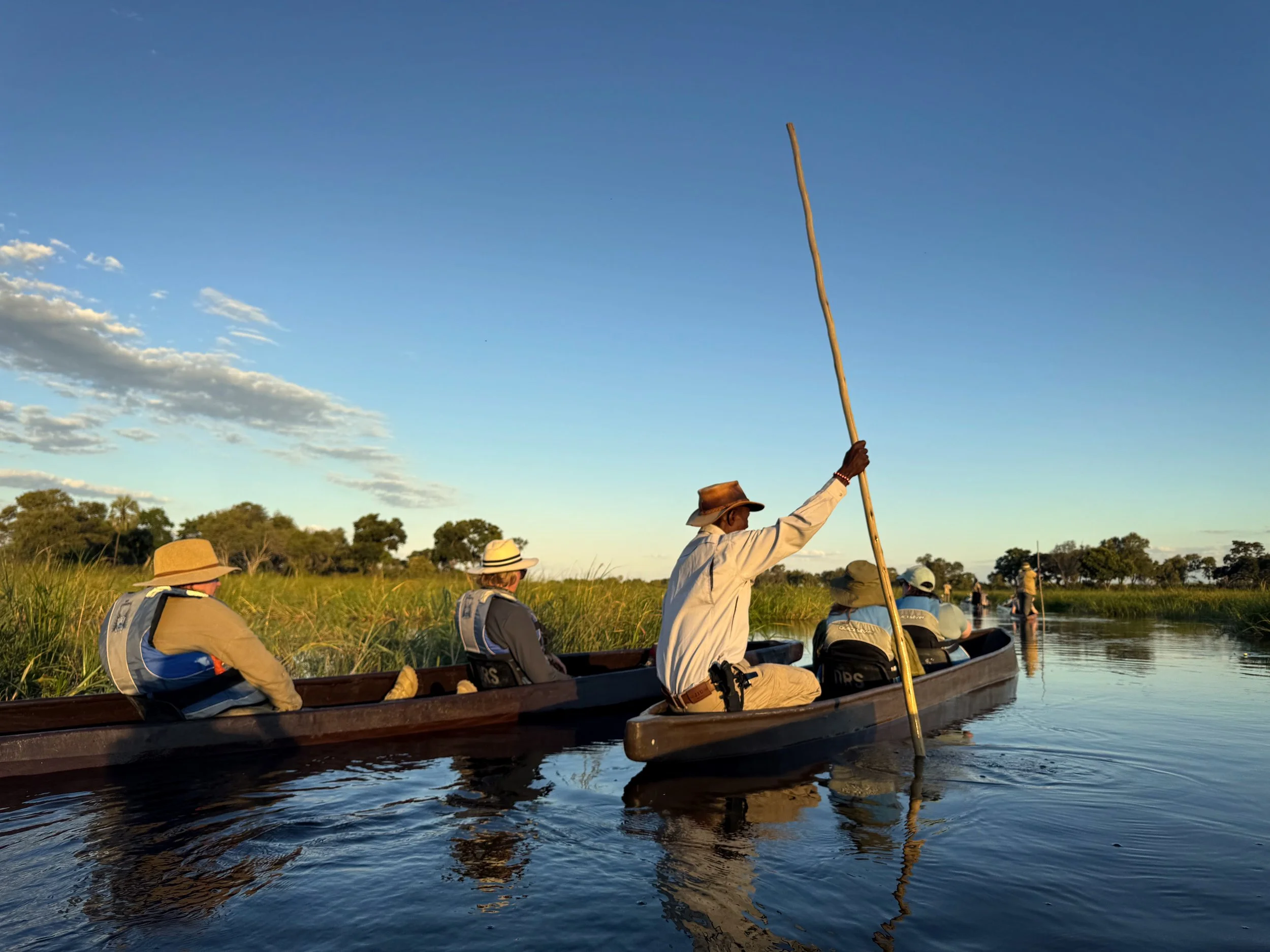 The day finished the way it started, on a canoe chasing both hippos and the sun over the tranquil surface of the Okavango River. Late afternoon we set sail again in the hope of catching some hippopotami doing some hippopotami things and hit pay dirt almost immediately. Finding several animals in a large pool near the opposite bank, they were frolicking and splashing in the water and playfully interacting with each other. As we were in the last mokoro of the fleet we couldn’t get in close enough to see this first hand, but those that did said it was both amazing and a little frightening. But if frightening was on anyones hippo-bingo card it was Pete & Champay winning the chicken. Poling further down river the canoes began to spread out a little with the lead boat in search of any hippos. From our vantage point all we saw was the poler move a hell of a lot quicker than usual to turn the craft around and get out of the channel. The cries coming from his passengers told us what happened even though we couldn’t see it. Over the coming days that tale grew some gilded legs with Pete constantly closing the distance between man and hippo on each retelling. The beast would become known as Bonecrusher, and Peter, well he became Hippopotamus Pete.
