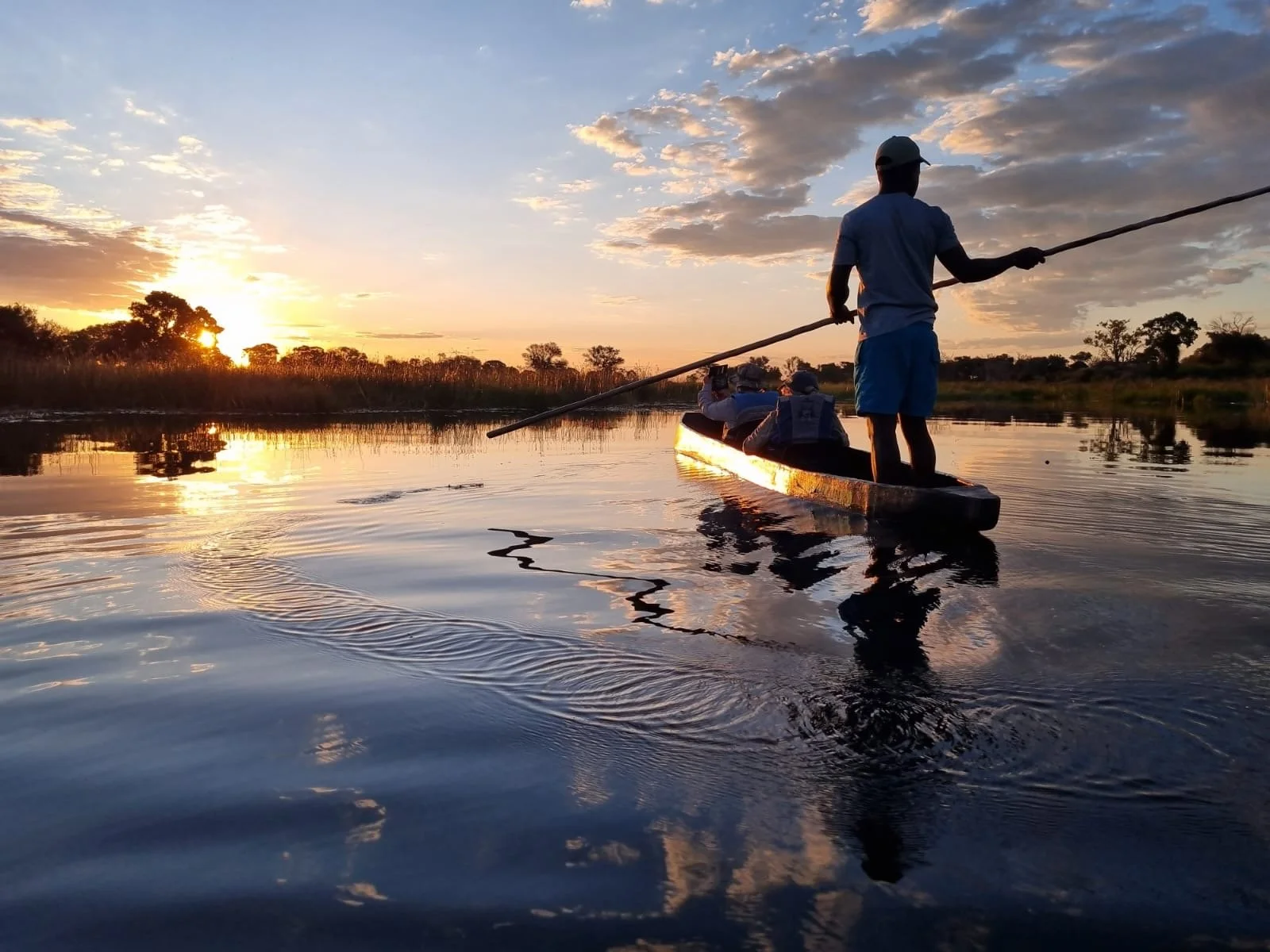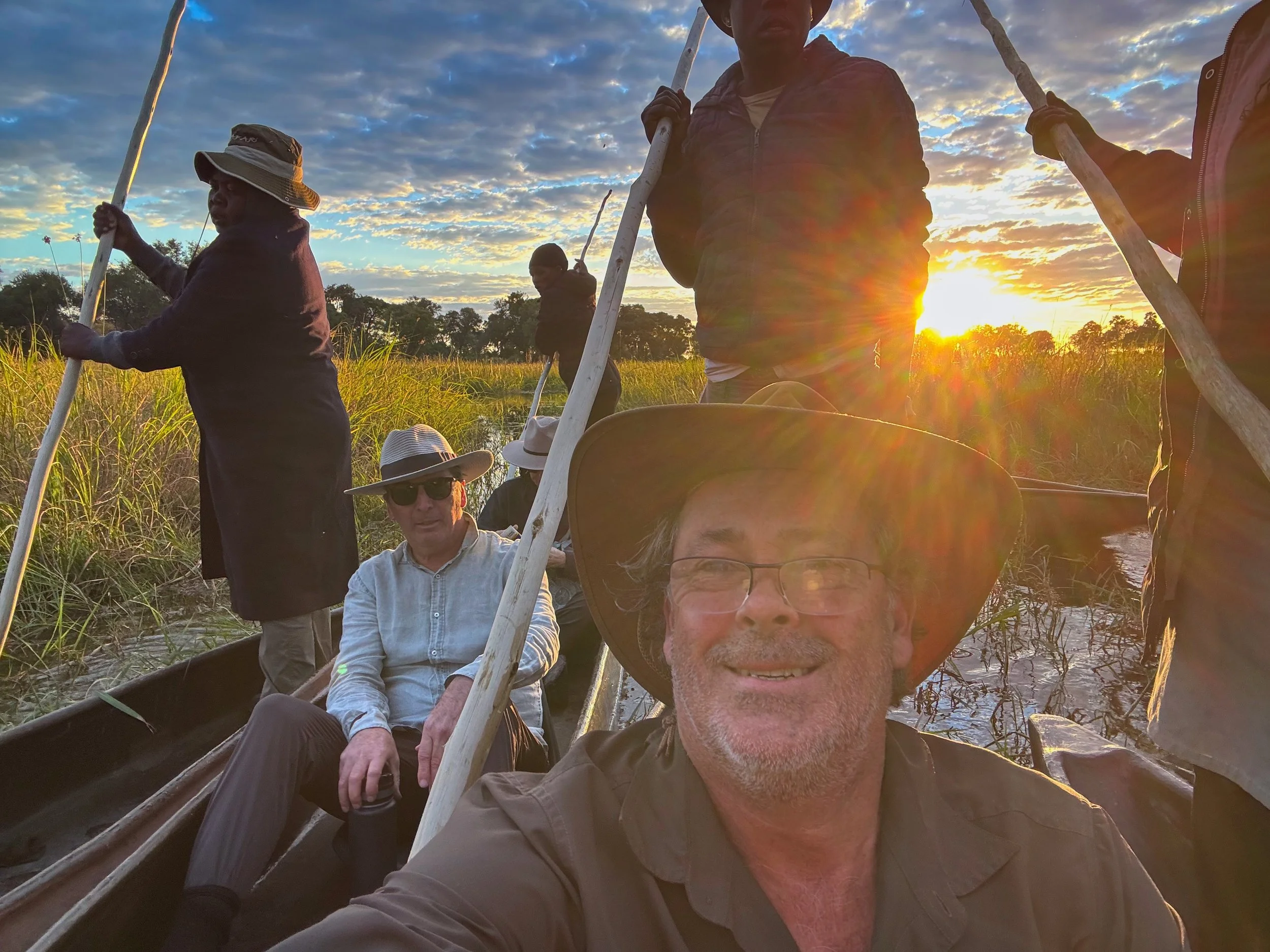 We drifted home in the most breathtaking sunset and after another spectacular dinner gathered around the campfire for a special thanks, and goodbye from our hosts. The Intrepid and Delta Rain leaders joined the local tribe in a series of traditional Botswanan and African songs. Sung a cappella, the harmonies were religious with baritones and tenors forming vocal base lines and the sopranos of the women rounding it off complete with the African “shrill” at the end. Ladysmith Black Mambazo couldn’t have done a better job. There was dancing of course and the exchange of some heartfelt words before everyone joined in learning the rhythm and lyrics very quickly. Under a canopy of stars the campfire flickered erratic light and the dulcet tones of voices not before heard brought with them emotion entirely unexpected. Fatpap hid for a while in the back stalls suppressing his tears but he wasn’t alone. Over another wine everyone spoke of a similar experience but that’s what Africa does. It stabs you in the heart and refuses to heal as your constant reminder to its wonder.