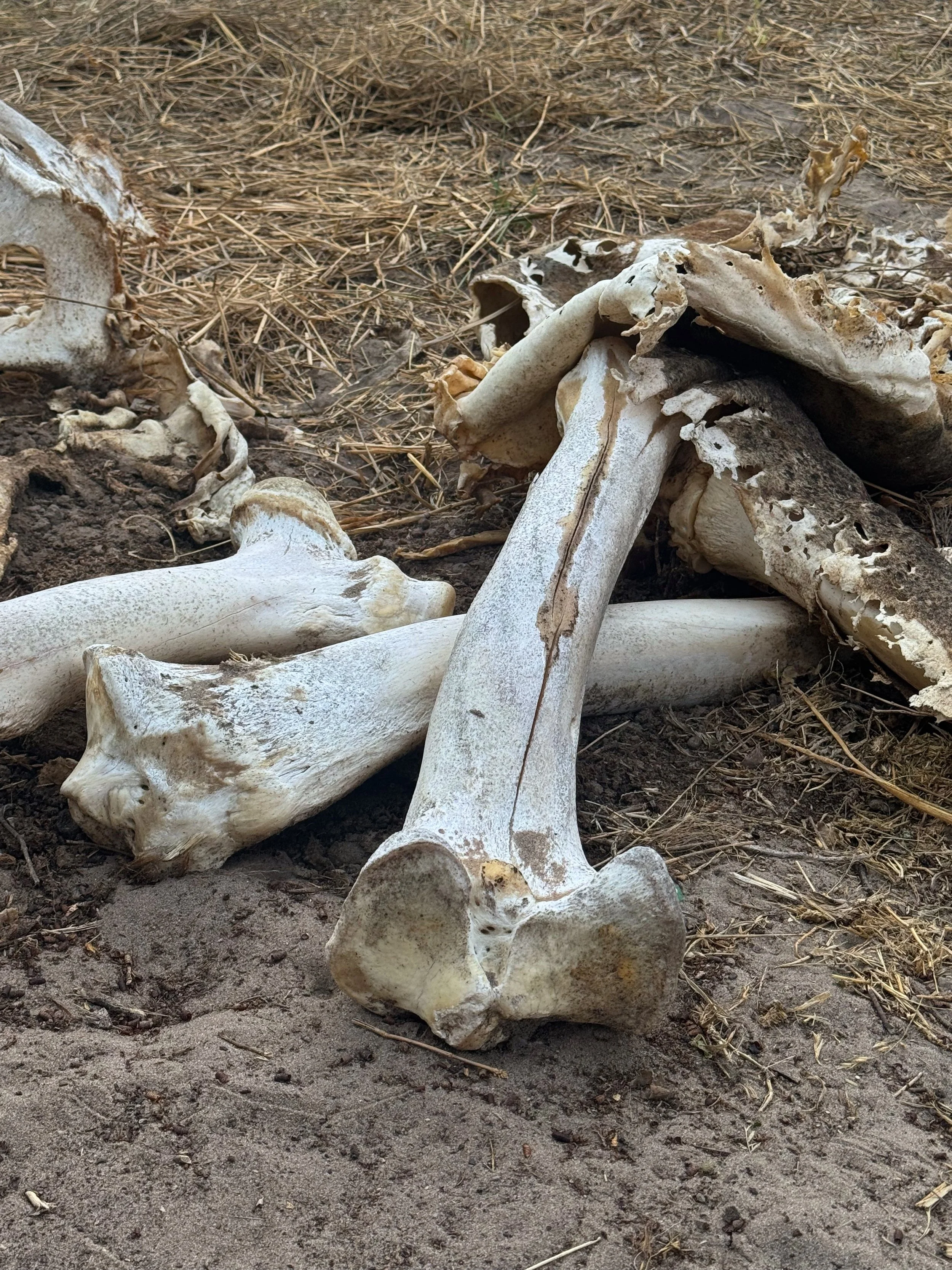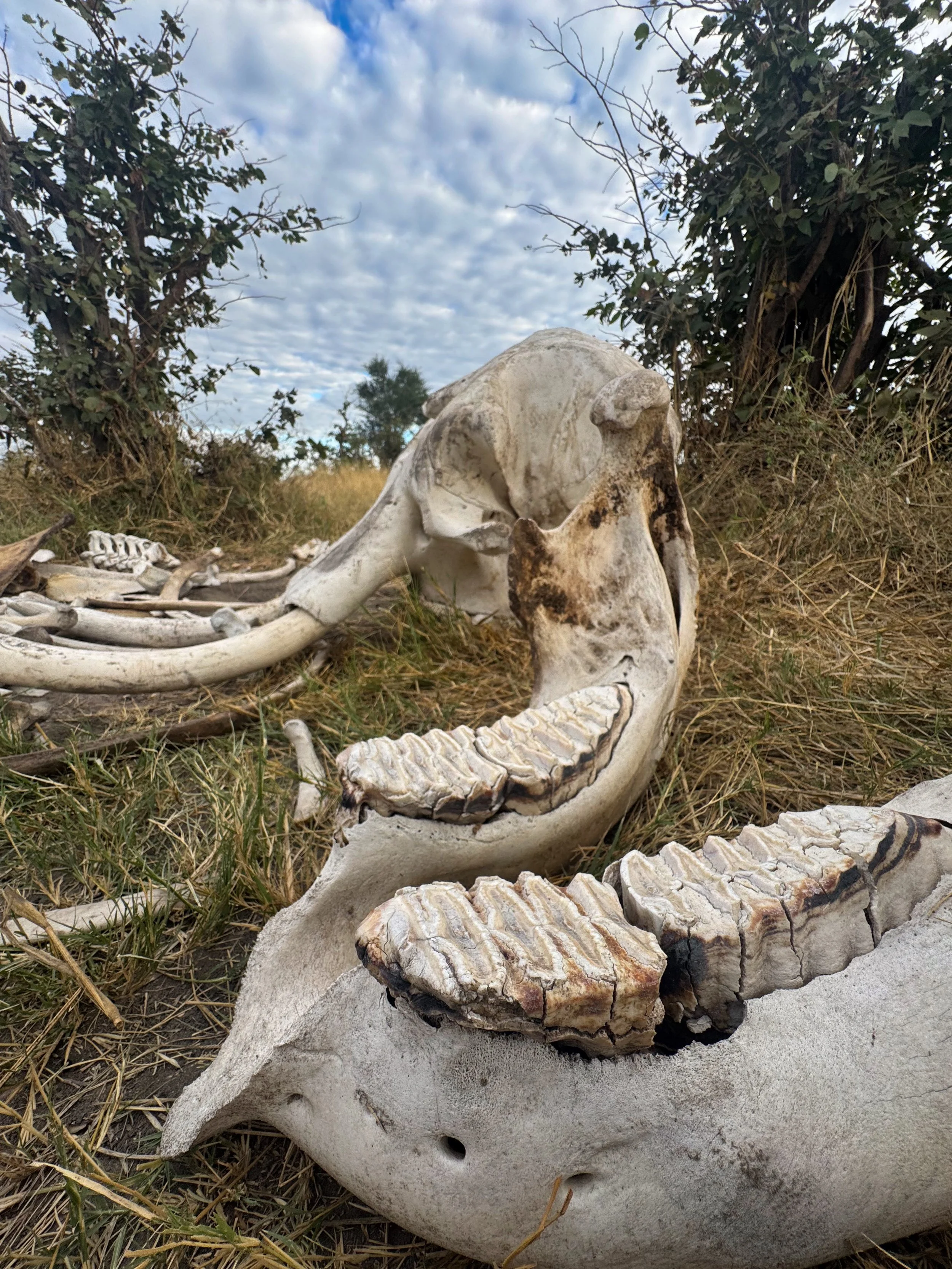 We stopped halfway for a snack by the river bank with most of us swept away by our surrounds. There was less wildlife visible today but as nature often does, it provided in other ways. A mass of elephant bones were also discovered, their owner long left this mortal coil, and as with the giraffe’s they made for a fascinating sight.