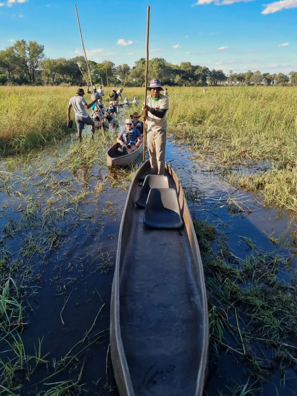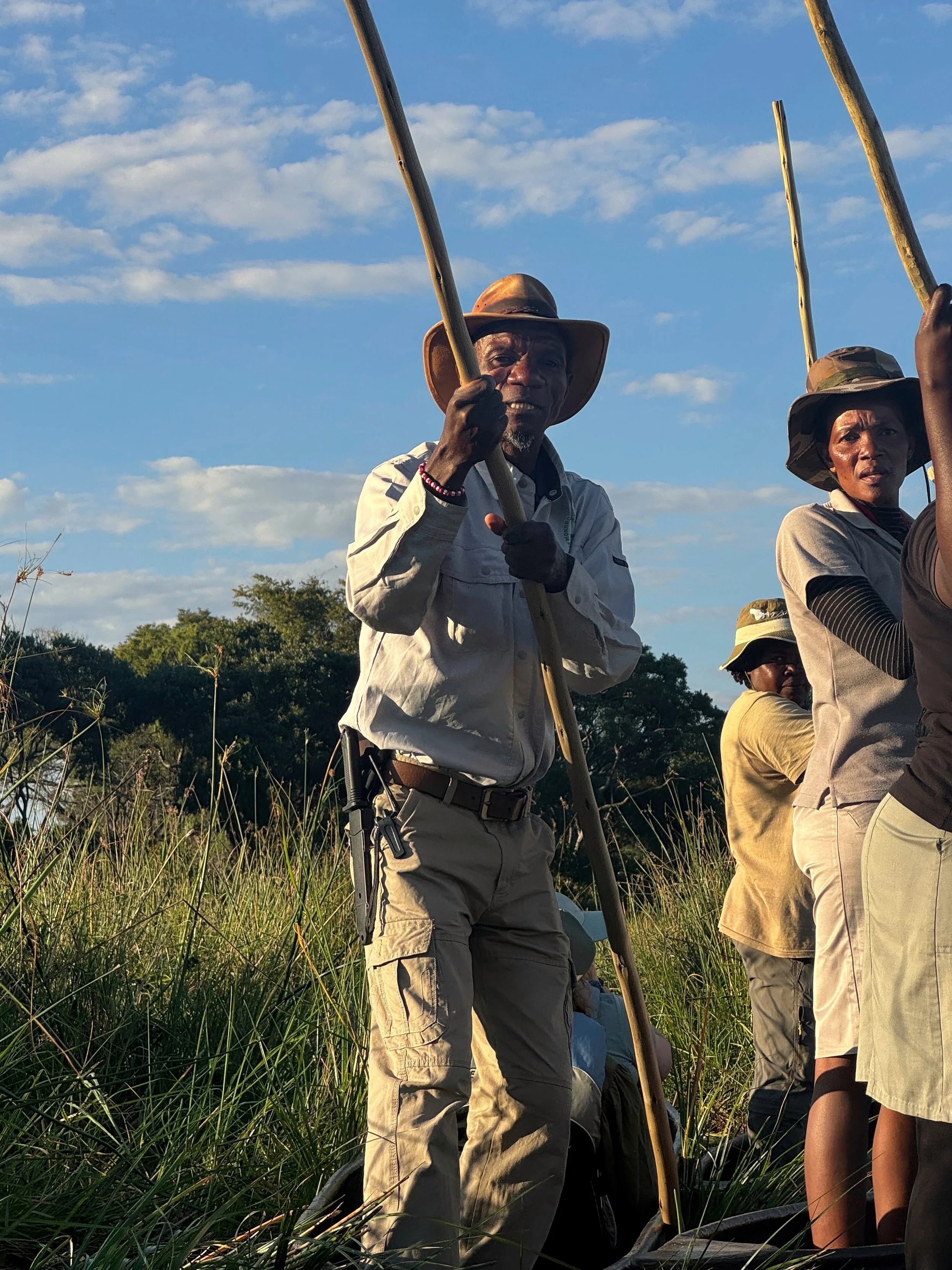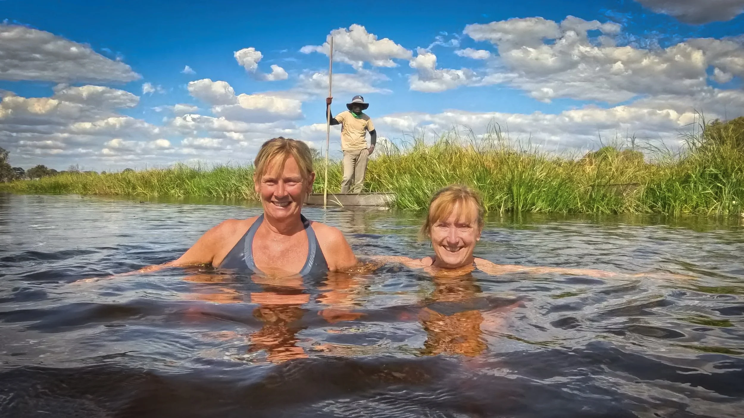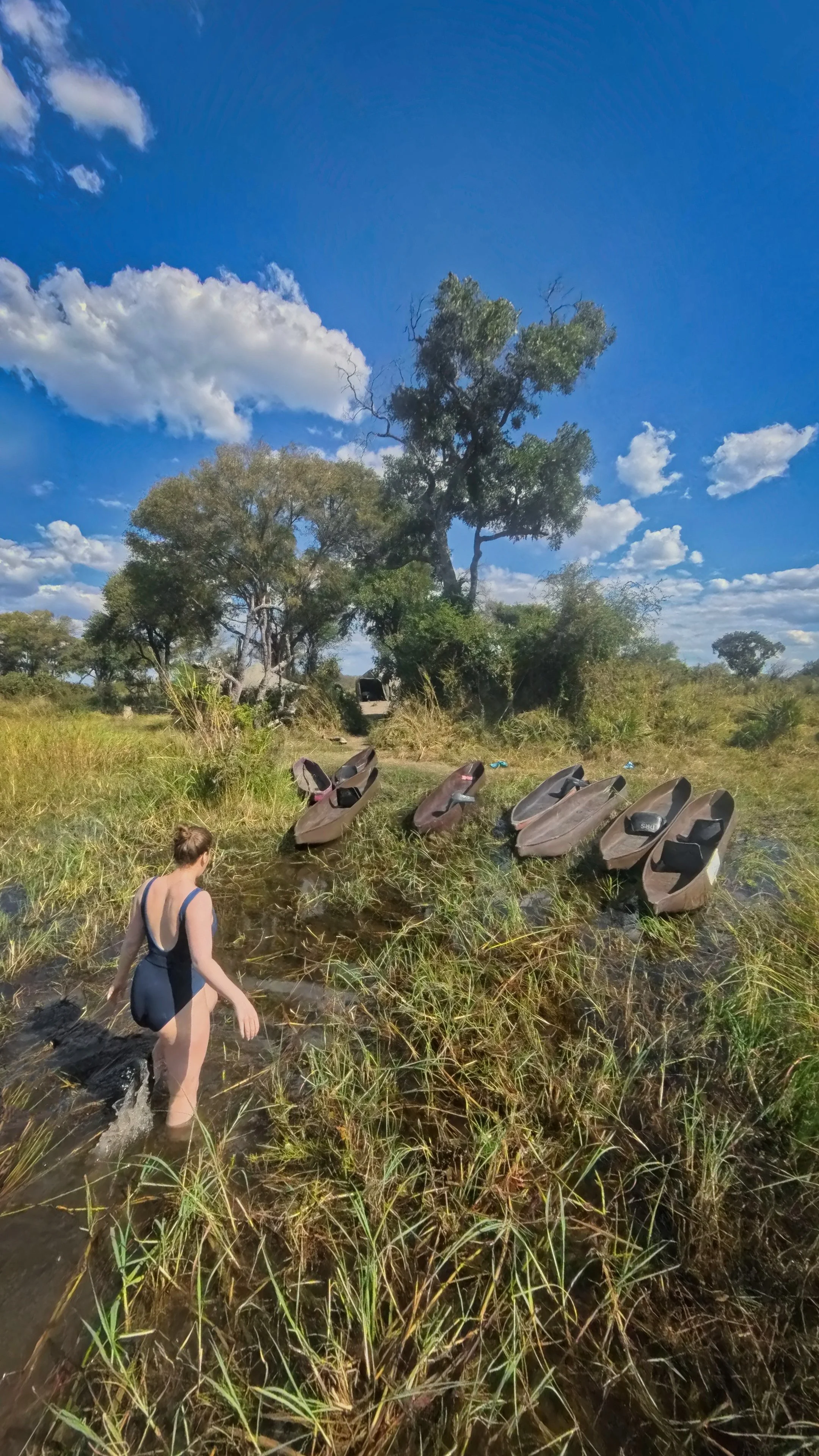 After lunch all but a few opted for an Okavango dip and braved the hippos and water temperature for a chance to see Duncan’s Canadian Camouflage in all its glory. The water while coolish was refreshingly clean and after 2 days without showering the ideal remedy for the dust and bugs. Away from the entanglement of reeds found at the banks, the river floor was soft sand and pleasing under foot while a noticeable current drifted beneath that if unanchored could easily sweep one down river. The most iconic part of this experience though was the need to have 2 polers and their mokoros stationed 10 metres up and down stream on hippo watch. Hippo watch! Africa just never stopped amazing.
