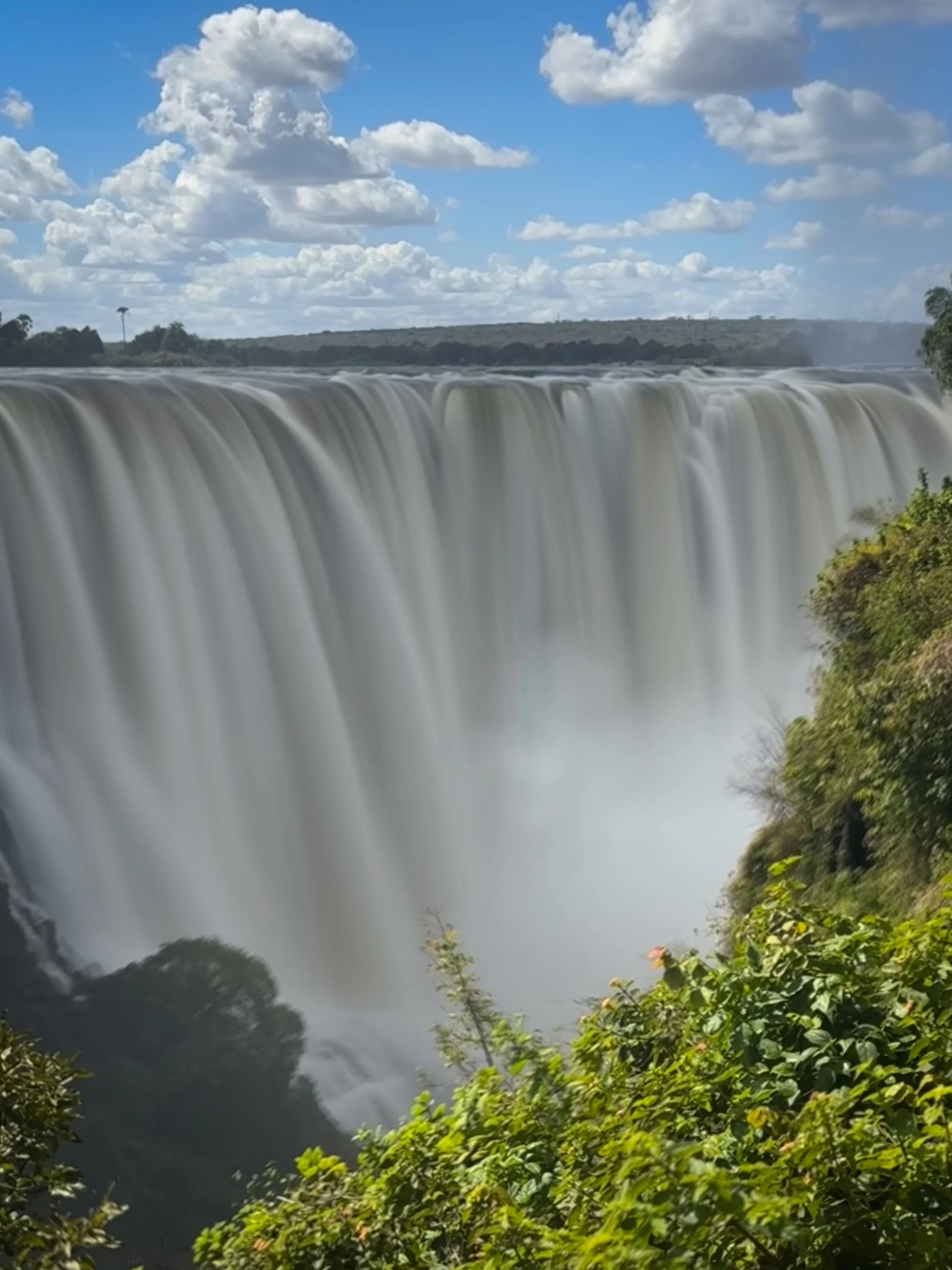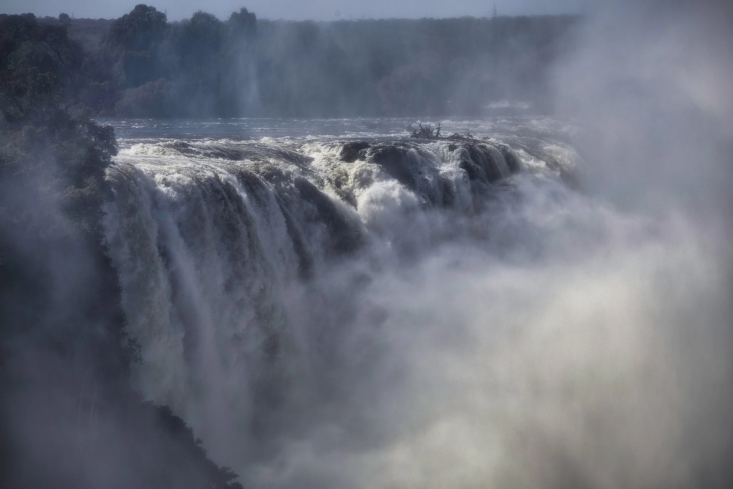 In the native Lozi language, Mosi-oa-Tunya means "the smoke that thunders", and Victoria Falls certainly does that. Located on the Zambezi River, right on the border between Zambia and Zimbabwe, Victoria Falls is the worlds largest by surface area. While not individually the highest or widest, its combined width of 1,708 meters and height of 108 create the world's largest sheet of falling water discharging over 500 million litres per minute.
