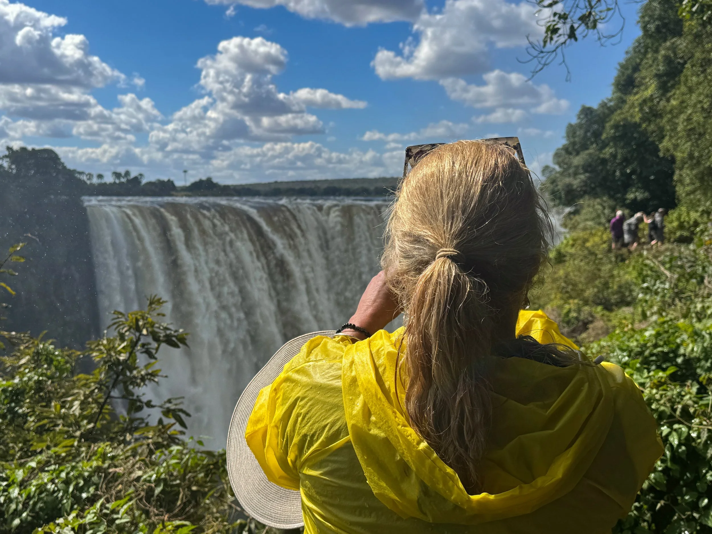 It’s been read many times, even personally told that visiting the falls is pointless unless you do the Flight of Angels. Having now done that very thing, we can say that counsel is not entirely true, but through a domed helicopter window at 2,000 feet, Victoria Falls is supremely impressive and undoubtedly a natural wonder of the world. The lack of any Lyndall selfies in this stanza wasn’t planned, it was more reflective of her state of being during the flight. From the coveted front seat position her tears began shortly after lift off and continued for the entirety of the 30 minute flight. Vic Falls was one of Lyndall’s “must do” destinations for this adventure and it’s safe to say she was somewhat overwhelmed with the outcome of actually seeing it.