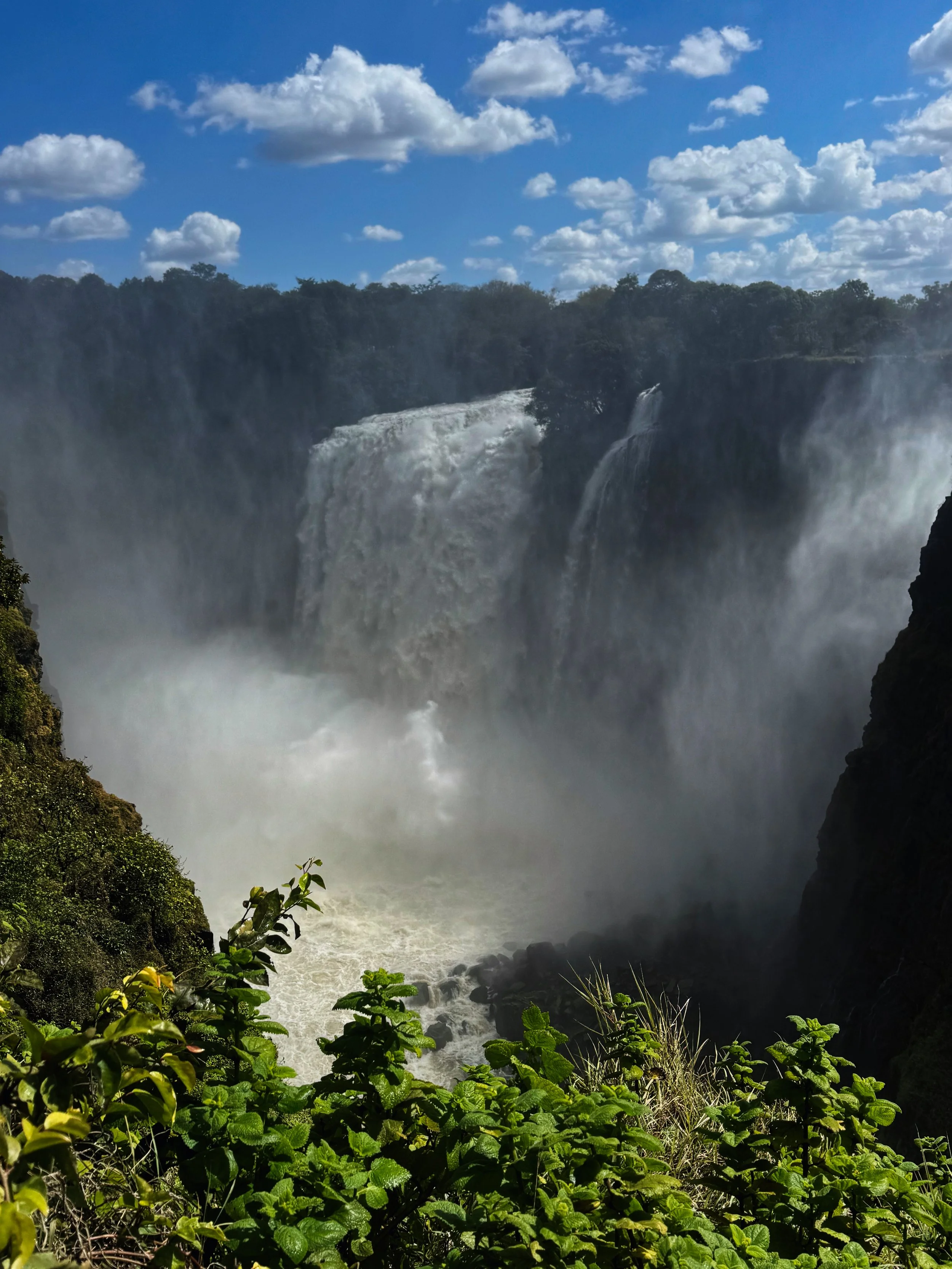 The Zambezi River is Africa’s fourth largest and flows eastward from its marshy origins near the Congo border for 3,500 kilometres to meet the Indian Ocean in Mozambique. Meaning “great river”, the Zambezi is exactly that and on our visit carried rainy season flood waters to swell its banks and bring the falls to their highest peak in years.