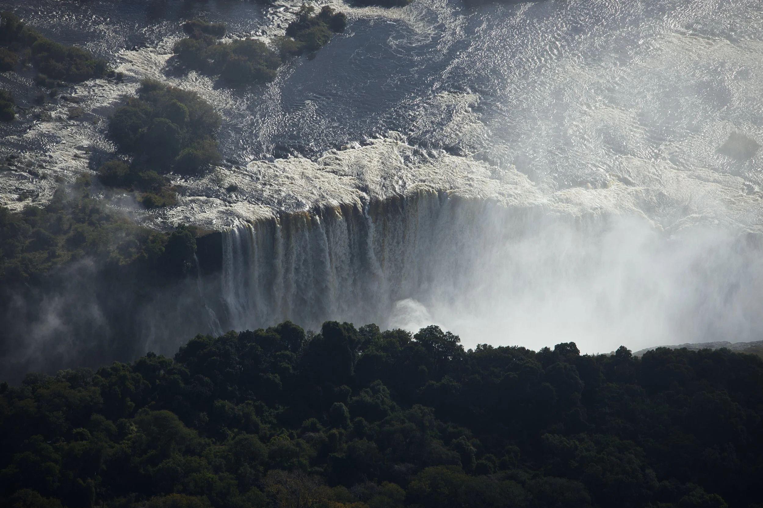 The falls were formed through a combination of volcanic activity, erosion, and the unique geological structure of the Zambezi River area. During the Jurassic Period 150-200 million years ago, volcanic eruptions deposited thick layers of basalt in the region that over time developed cracks as it cooled and solidified. The ancient Zambezi River began flowing over this basalt plateau from north to south gradually eroding the softer sandstone filling those cracks to carve out a series of curtain-like waterfalls and gorges.