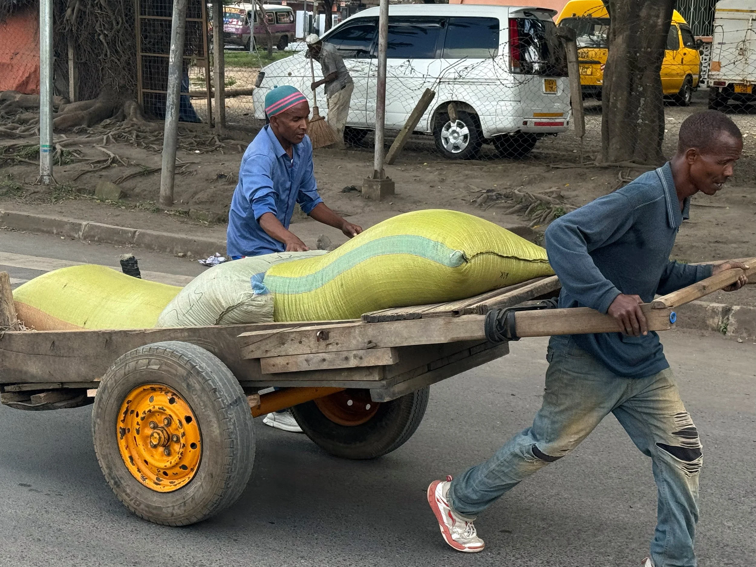 Now full of bravado, Fatpap more clearly explained what he wanted to see and true to form, the Serengeti Wizard metamorphosed into the Arusha Wizard and found a local market closer to the brief. On foot we traversed the labyrinth of vendors selling their wares through ramshackle stalls or crouched in the middle of the road. It was chaotic and colourful. Noisy and nostalgic. A sensory overload as good as any experienced in other foreign markets and right in Fatpap’s wheelhouse. Between pestering of peddlers touting almost identical handmade artefacts to being offered bags of rice and spices for the journey home, the place was alive and in full swing. A living, breathing organism no different to NYC stock exchange except these traders were reliant on success for survival.
