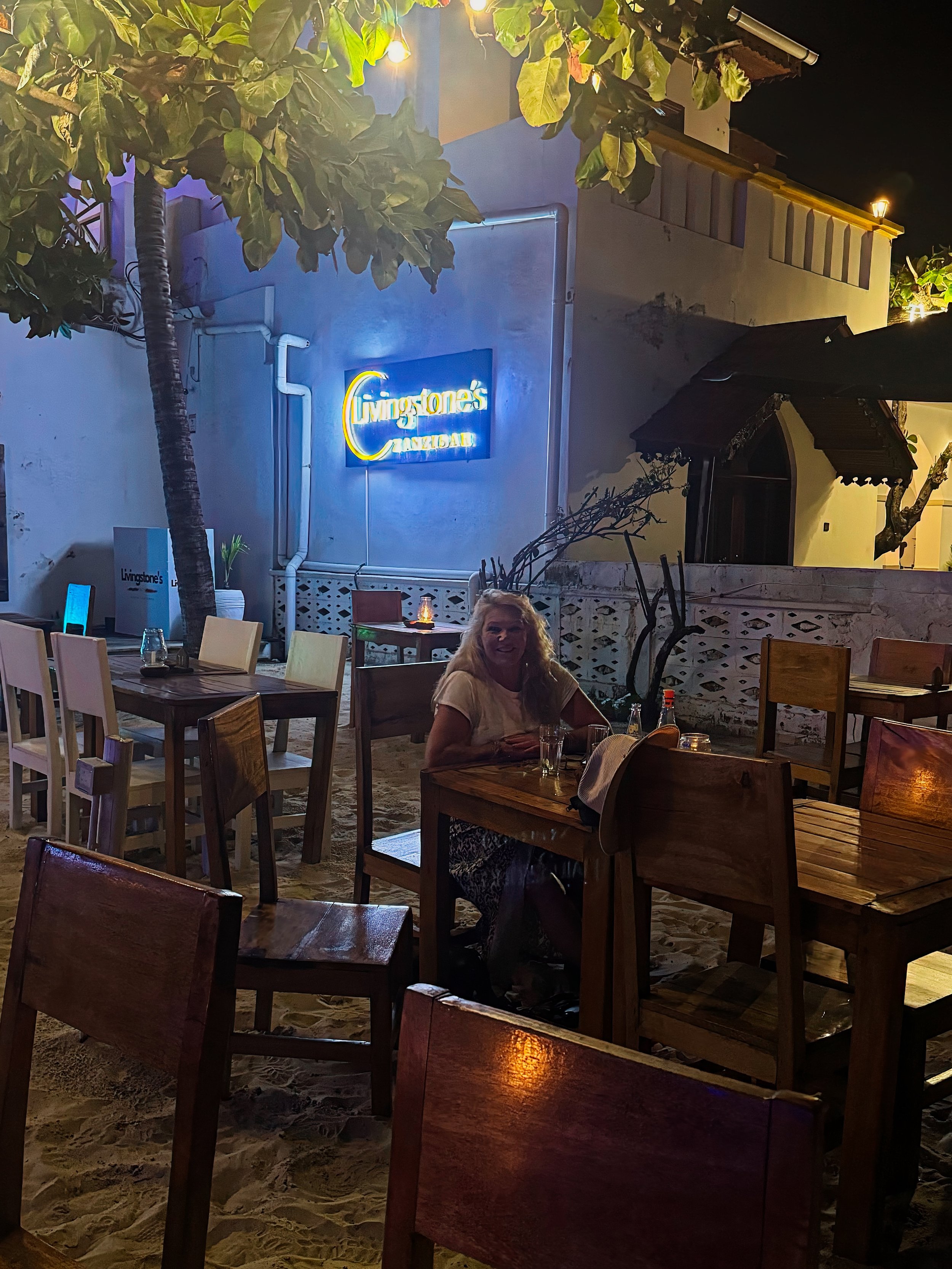 It was late afternoon by the time we unpacked and showered so we naturally headed beachside for some sunset action before the birthing of the famed Zanzibar nightlife. As a muslim state we knew alcohol was restricted to hotels only, however were unaware The Tembo was the only hotel not following that maxim. All good, directly next door was Livingstone Beach Restaurant which did. With the fine Zanzibar sand already stuck to our bare feet, we pulled up some prime position chairs thinking it might be a novel idea to perhaps order a drink. On menu, a bottle of local gin was cheaper than only 4 glasses so we caved in and ordered a bottle, a bucket of ice, sliced lemon and some tonic water. We’d been on deck for less than an hour and already in full island swing. The beach became a natural floor and exotic trees swayed in what little breeze was afforded. Tourists boats bobbed on the Indian Ocean and traditional dhows crossed the path of the sun only to turn around and do it again as if exclusively for us. Zanzibar beats known as taarab, a unique blend of African, Middle Eastern and Indian musical styles swelled their vibrant and soulful tones across the beach from every bar and rooftop.