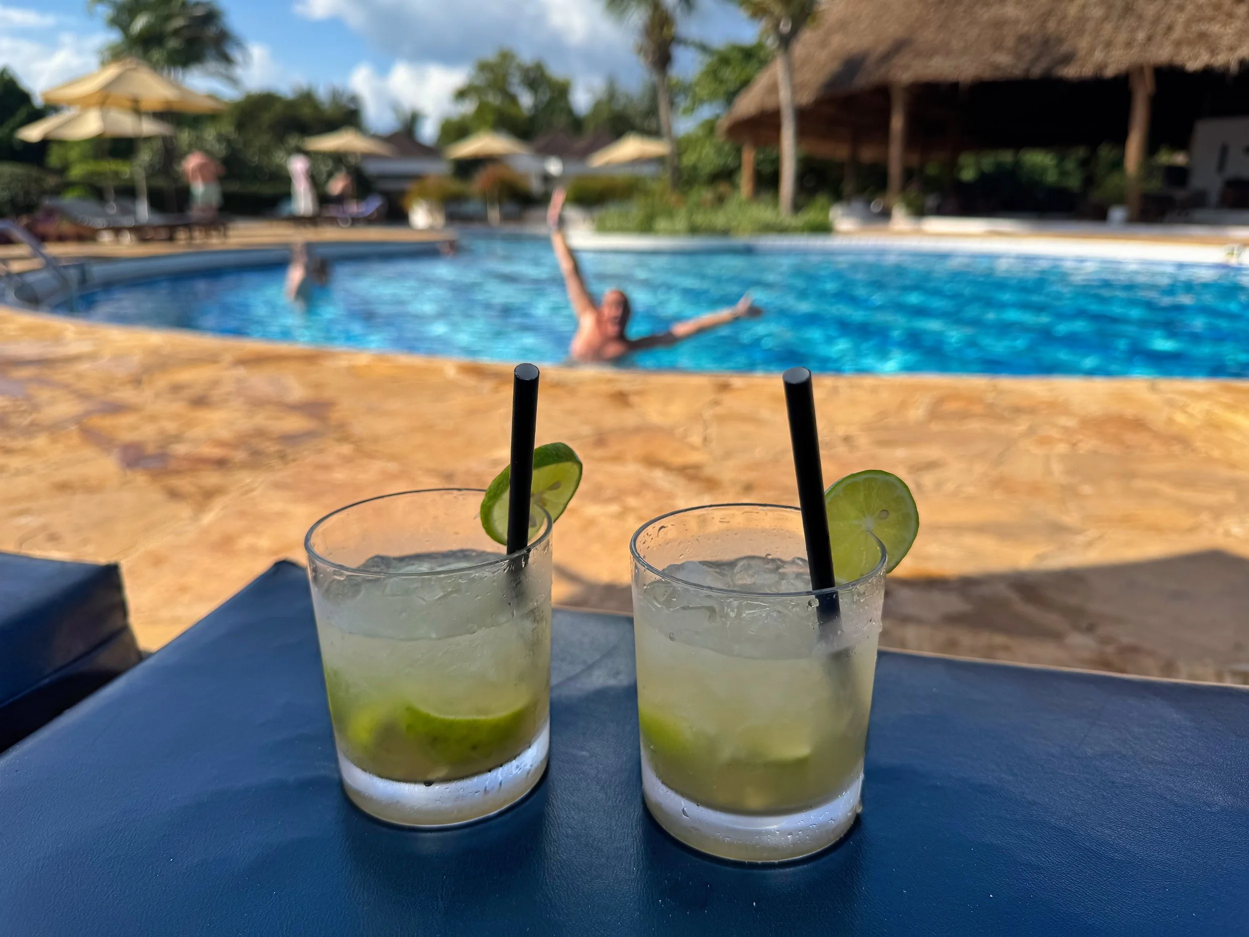 The rest of the day can best be described by the pictures below. Like the hapless hippopotami we’d spent hours observing in the Serengeti, we osculated between pool dipping, ocean swimming and lounge chair lizarding while a team of waiters ferried cocktails to us both with very precise regularity. Our old school readers will know our penchant for “drinking through” the bar list, and after some initial confusion, our waiters fully embraced the concept delivering a little giggle along with every drink. It could be said it was a tad over indulgent, but then again we would argue that point vehemently.