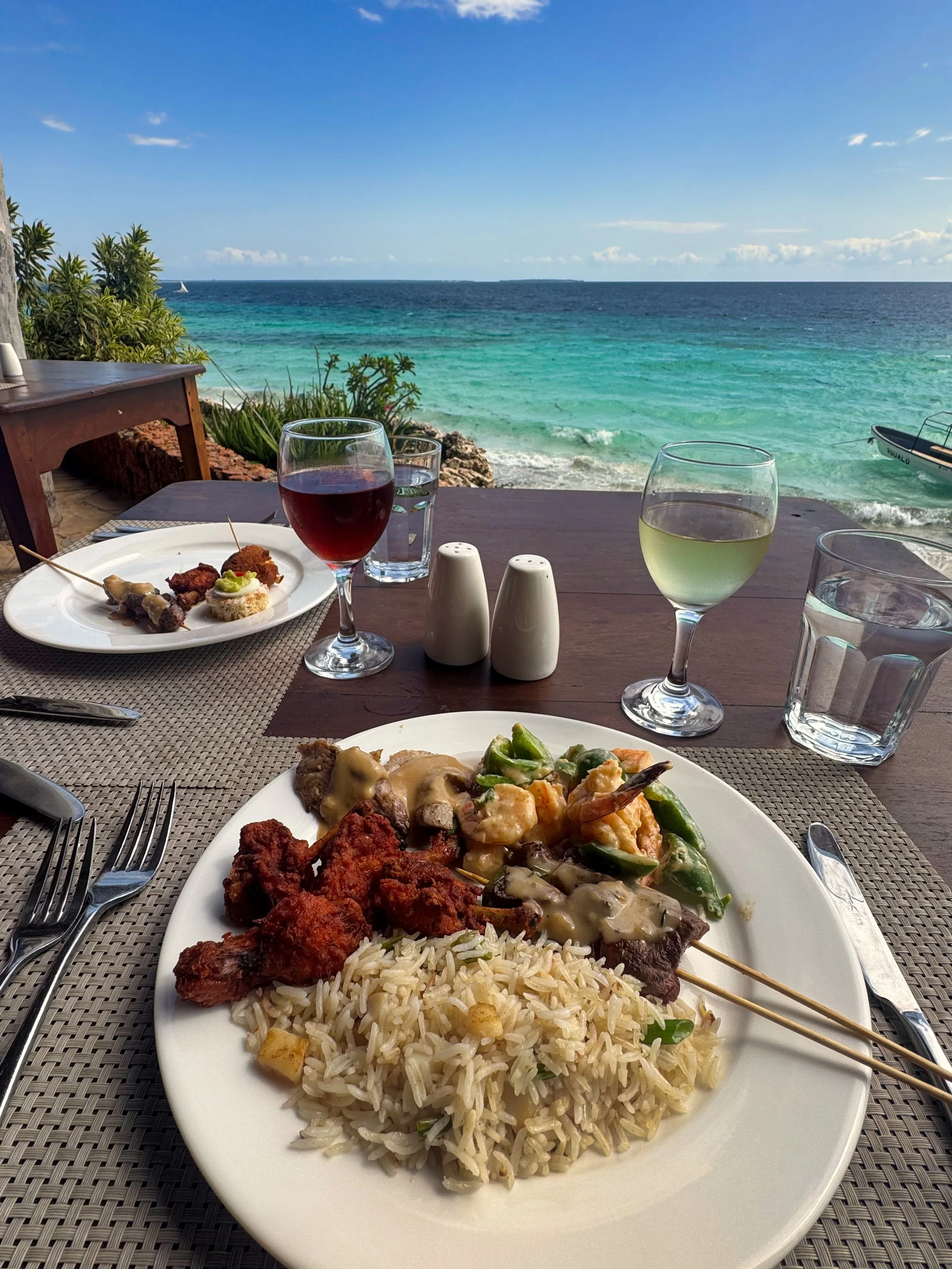 We honestly did nothing that afternoon other than relax and read our books punctuated by one of us occasionally rolling off the sun bed to then only roll into the Indian ocean. The waters this far north are exquisite with the expected turquoise colour and the seabed sandy with fewer seaweeds and corals than the eastern beaches, becoming especially charming at high tide when the hues are most vivid. We of course watched the rainbow of colours evolve through the setting sun forgetting we needed to change and head along to dinner at some point.