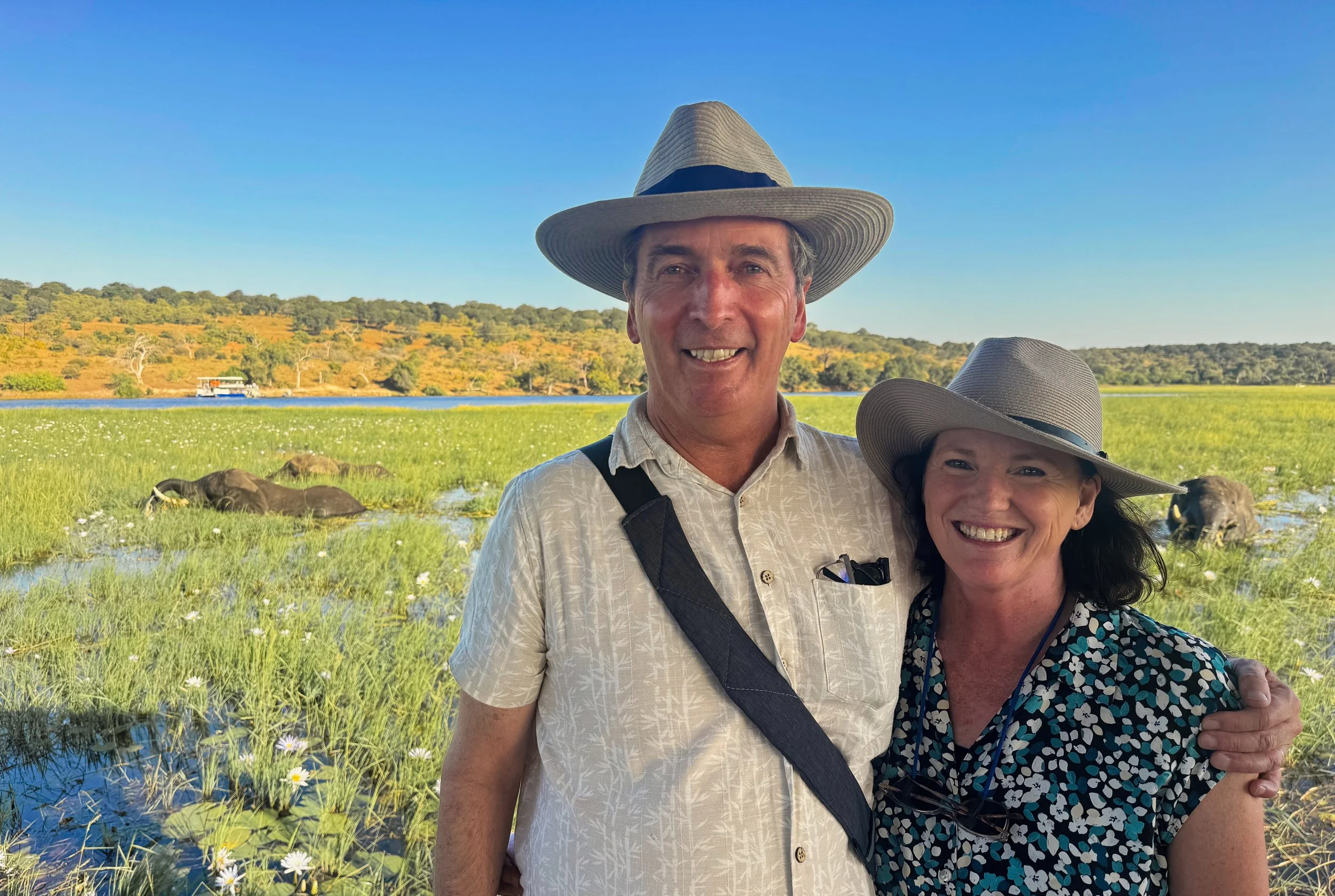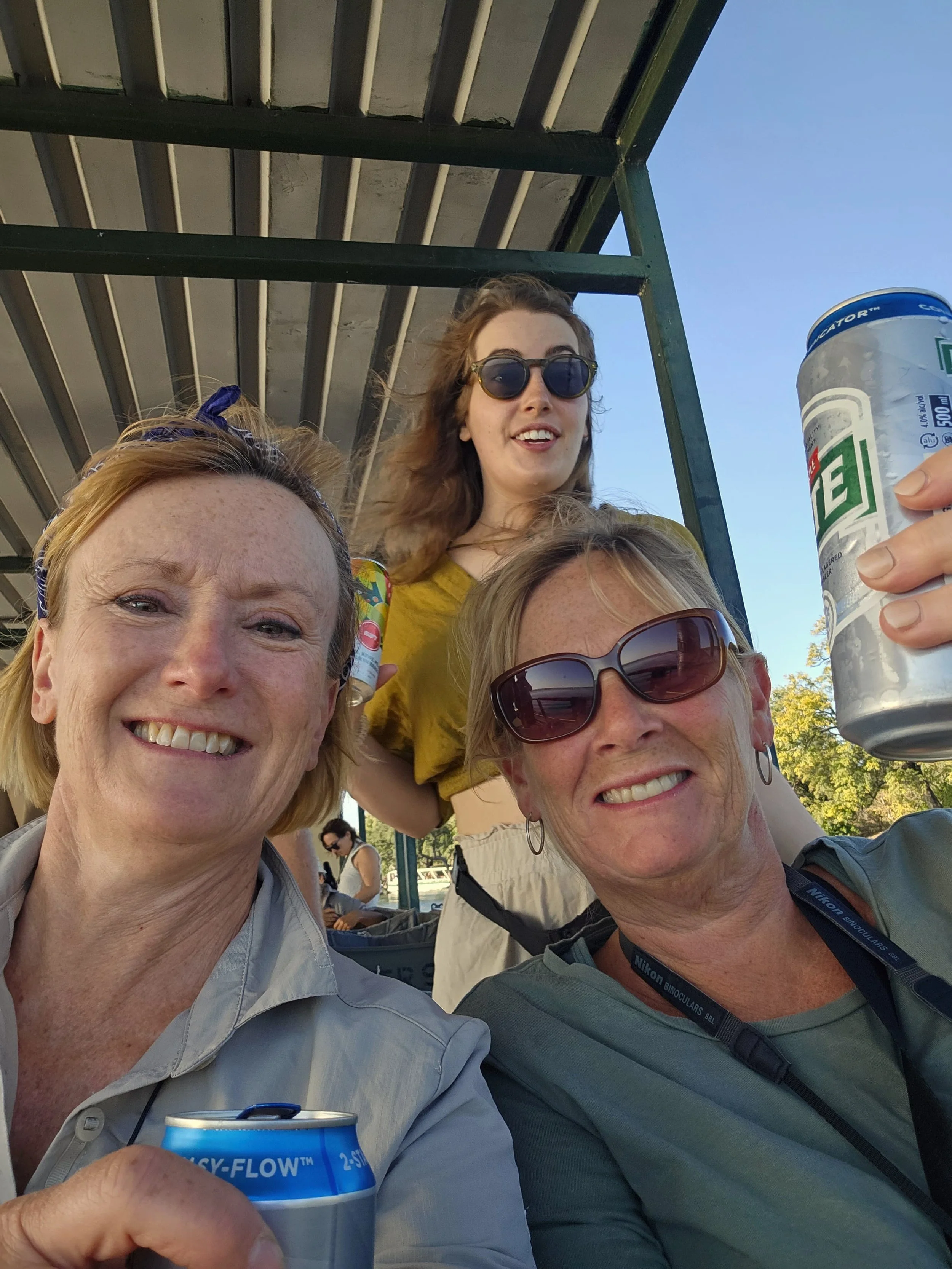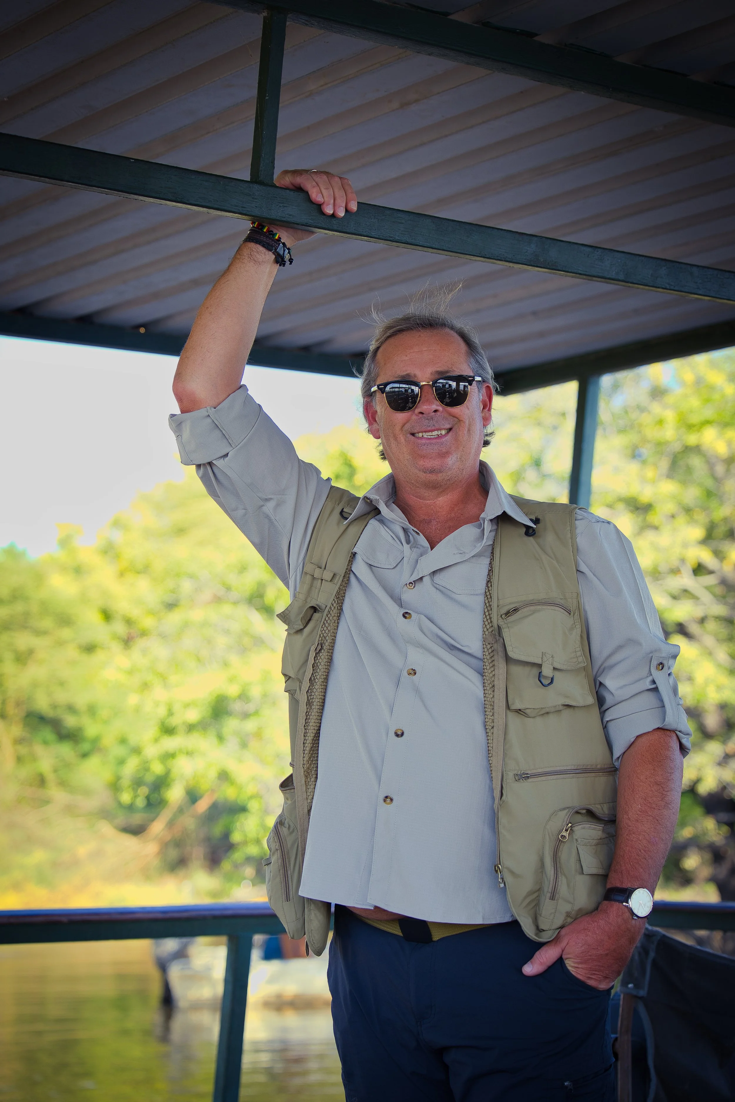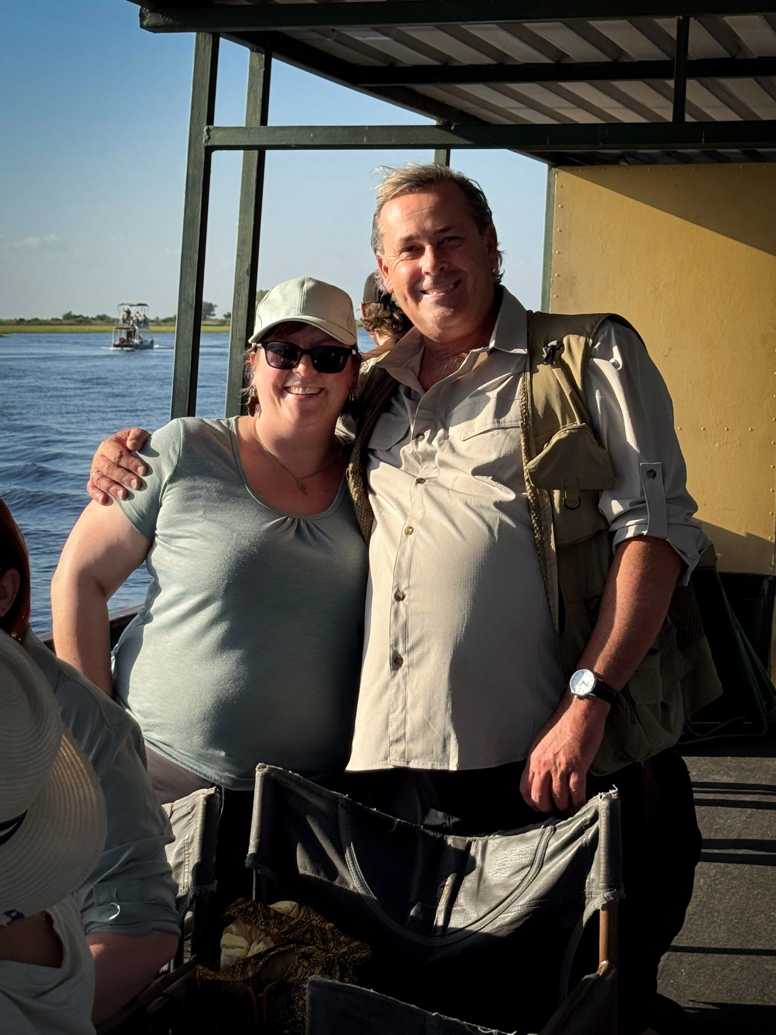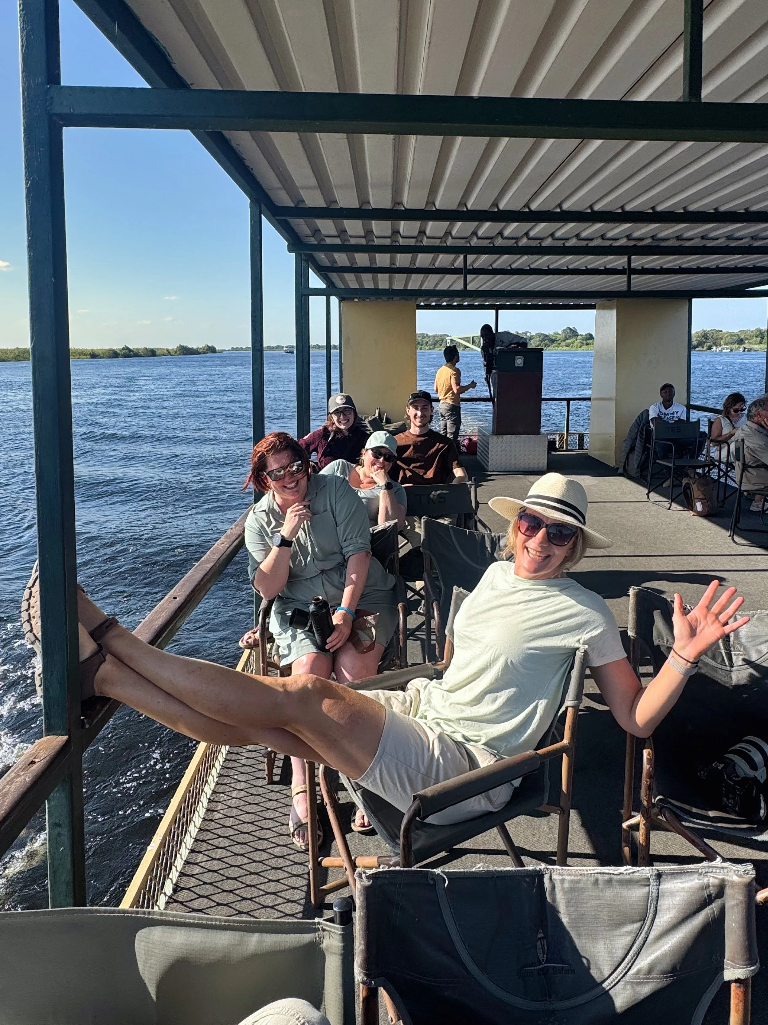 As was now our custom, transport arrived to take us down to the river where we boarded a registrable, if not motley looking punt for our planned river cruise. Having safely loaded the esky and appropriately arranged the deck chairs, we pushed back from the dock with the outboard donks churring up the murky water beneath. Quickly ripping the lids from our chosen drinks we began the westward journey upstream splitting the Chobe River with Botswana to our left and Namibia to our right. Only 4 kilometres downstream at the confluence of the Zambezi and Chobe Rivers was the "African Four Corners" where the borders of Zambia, Zimbabwe, Botswana, and Namibia all meet creating the only international quadripoint in the world.