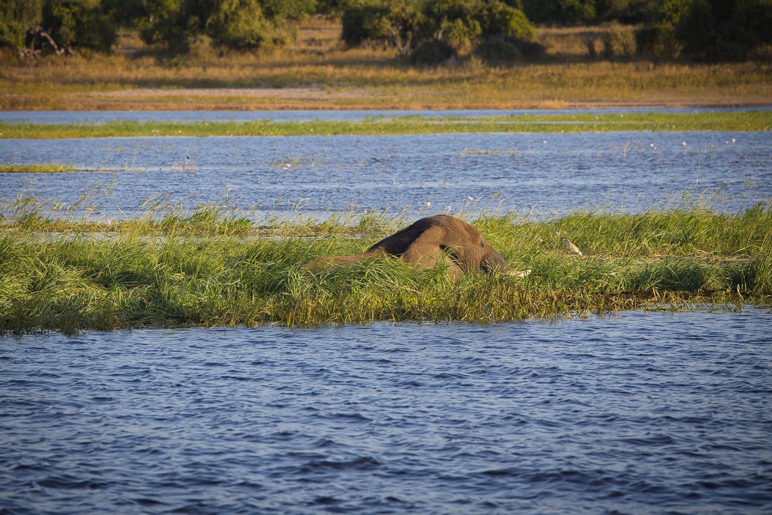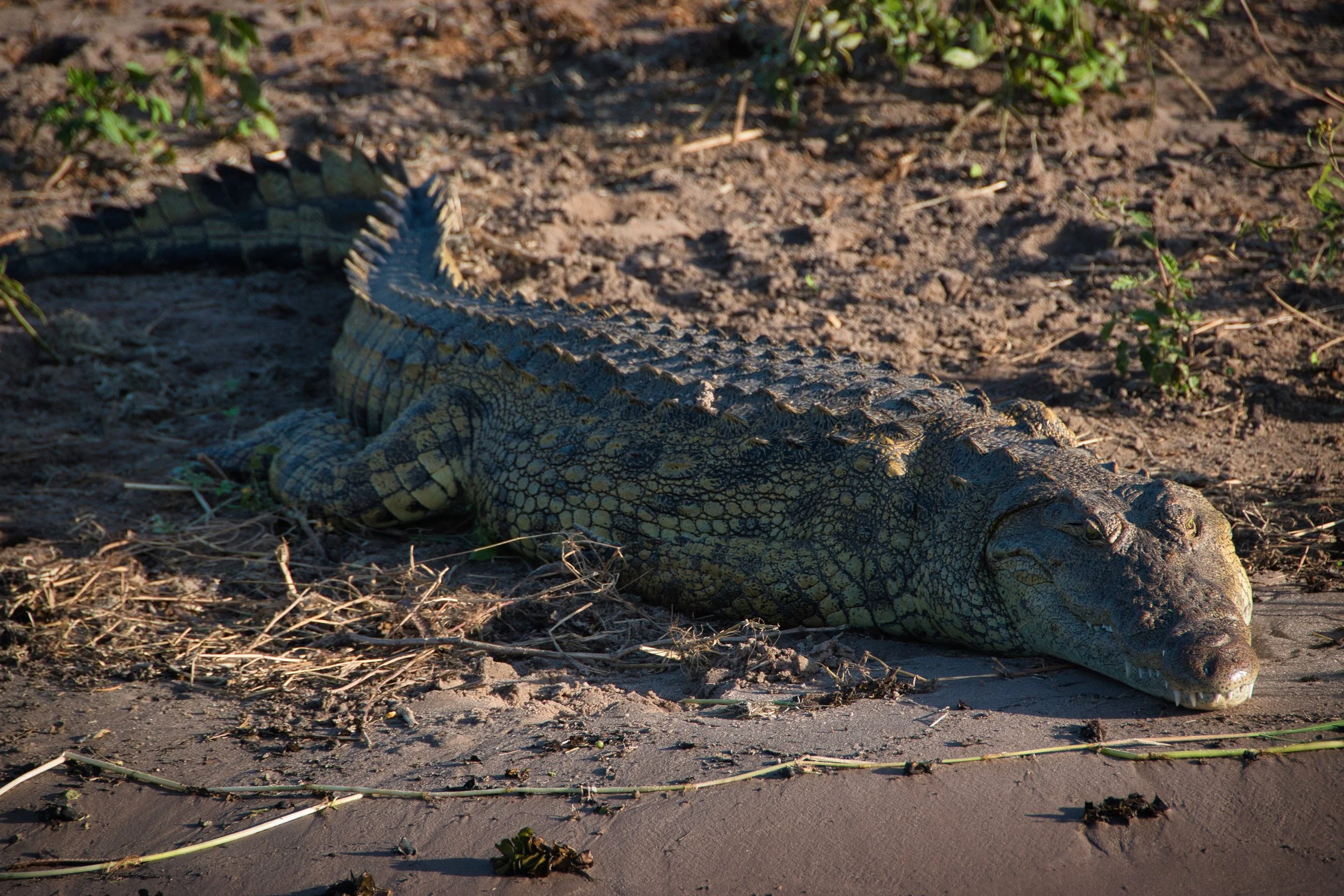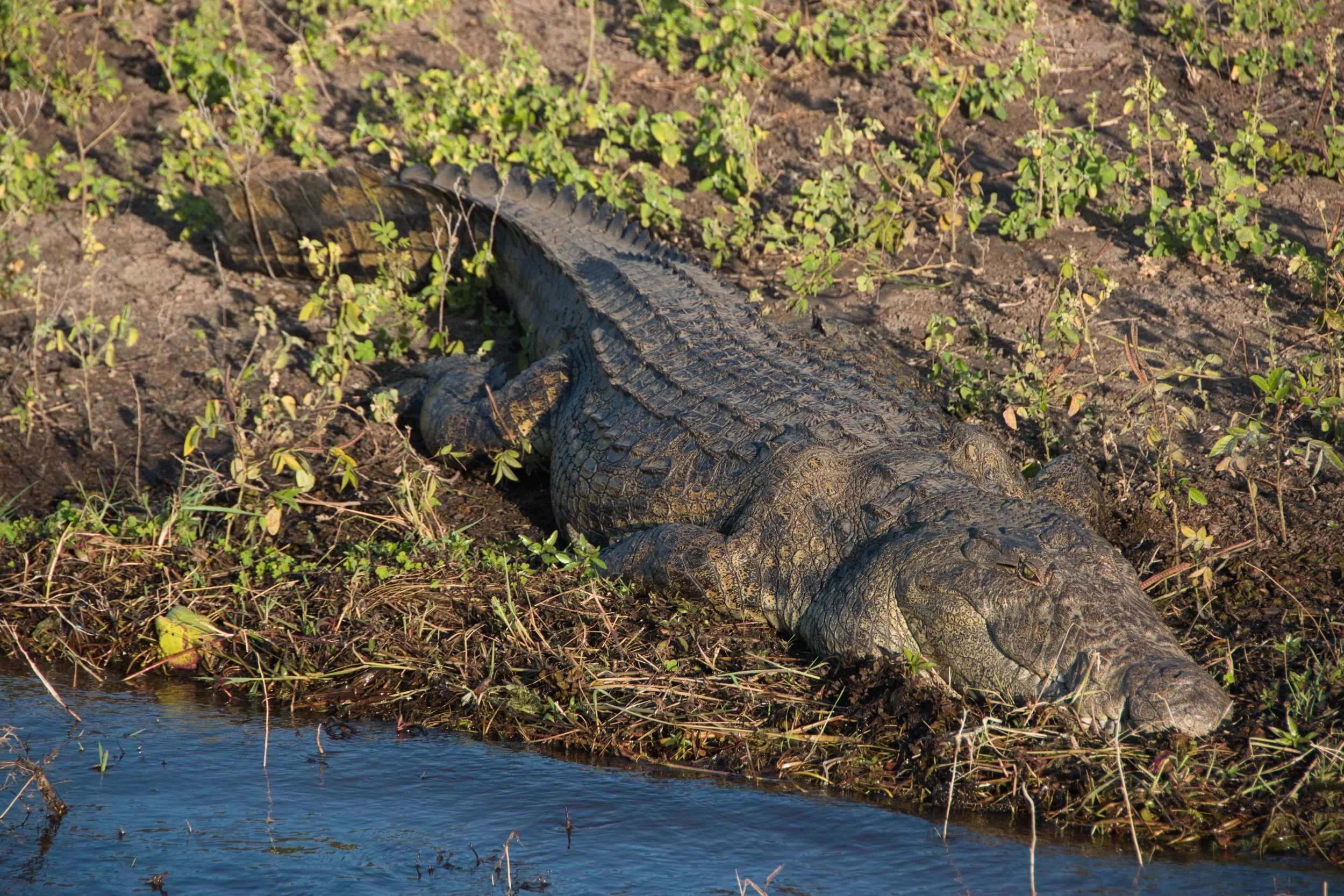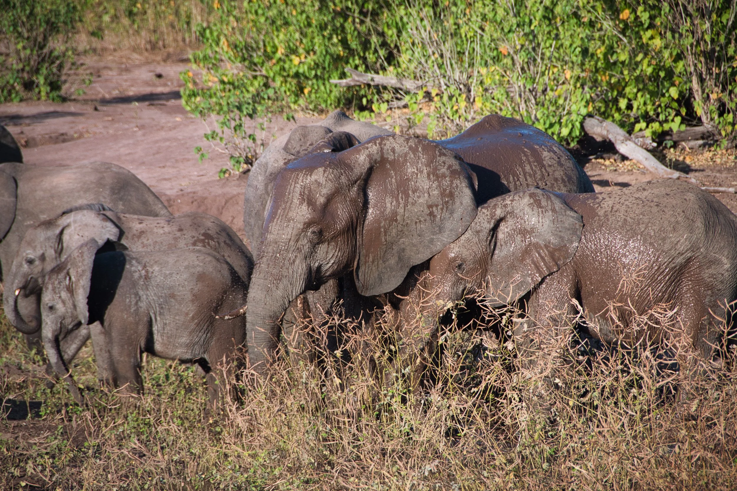 The elephants living here are Kalahari elephants, the largest in herd size of all known populations and characterised by rather brittle ivory and short tusks due to a calcium deficiency in the soil. And they were plentiful. Along the banks families sauntered to the waters edge to drink and spray mud on their hides to protect from the sun and help counter any ticks while carefully navigating the lazy crocodiles slothing around with one eye open for a potential meal straying too close to their monstrous jaws. It was a real life National Geographic episode.