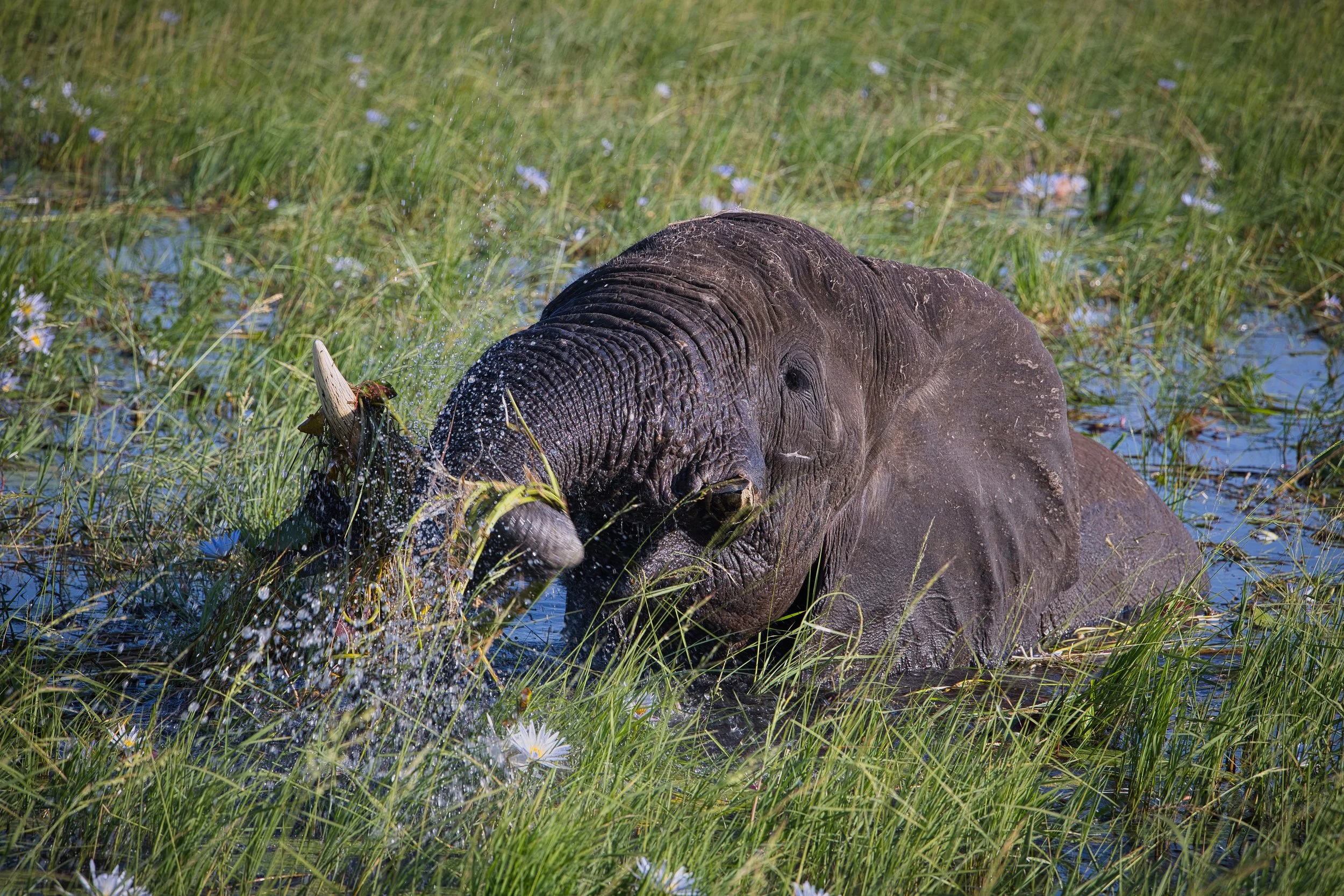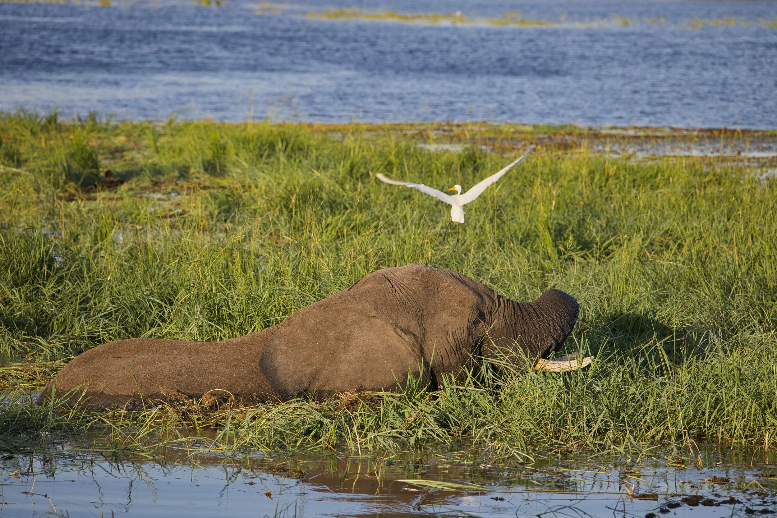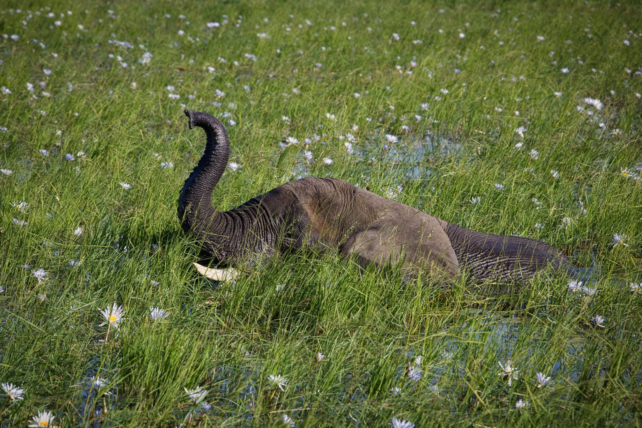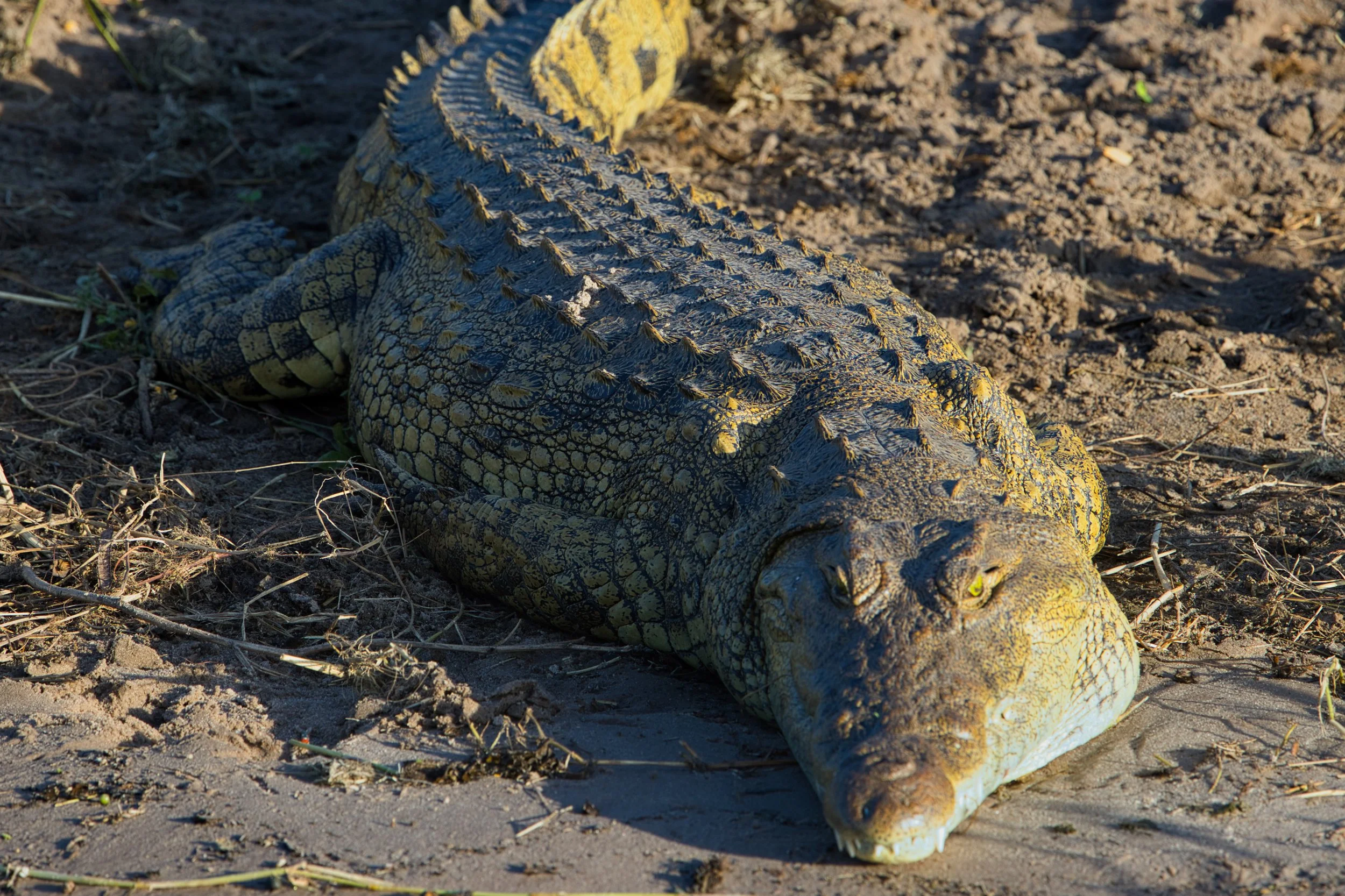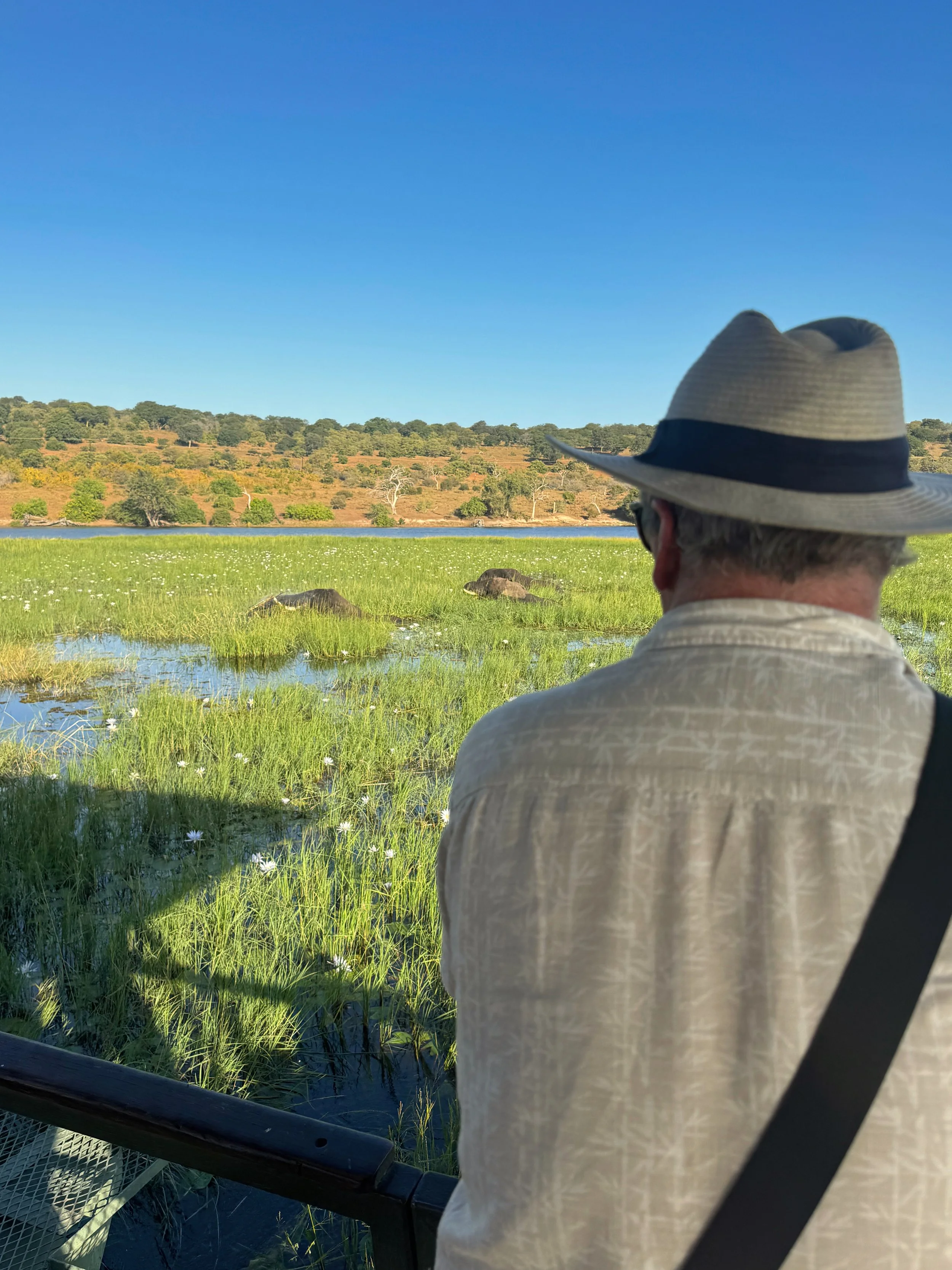 The elephants living here are Kalahari elephants, the largest in herd size of all known populations and characterised by rather brittle ivory and short tusks due to a calcium deficiency in the soil. And they were plentiful. Along the banks families sauntered to the waters edge to drink and spray mud on their hides to protect from the sun and help counter any ticks while carefully navigating the lazy crocodiles slothing around with one eye open for a potential meal straying too close to their monstrous jaws. It was a real life National Geographic episode.