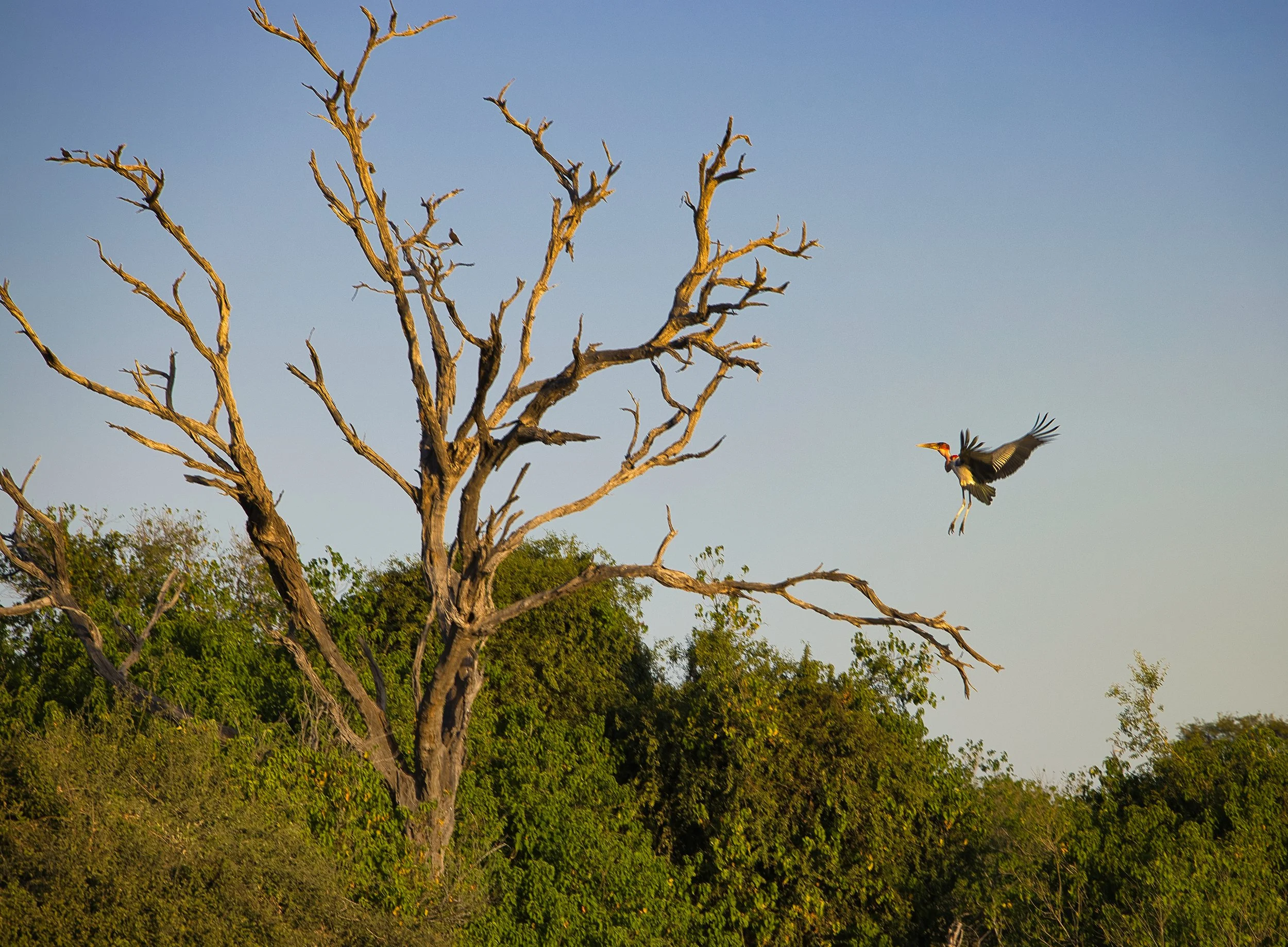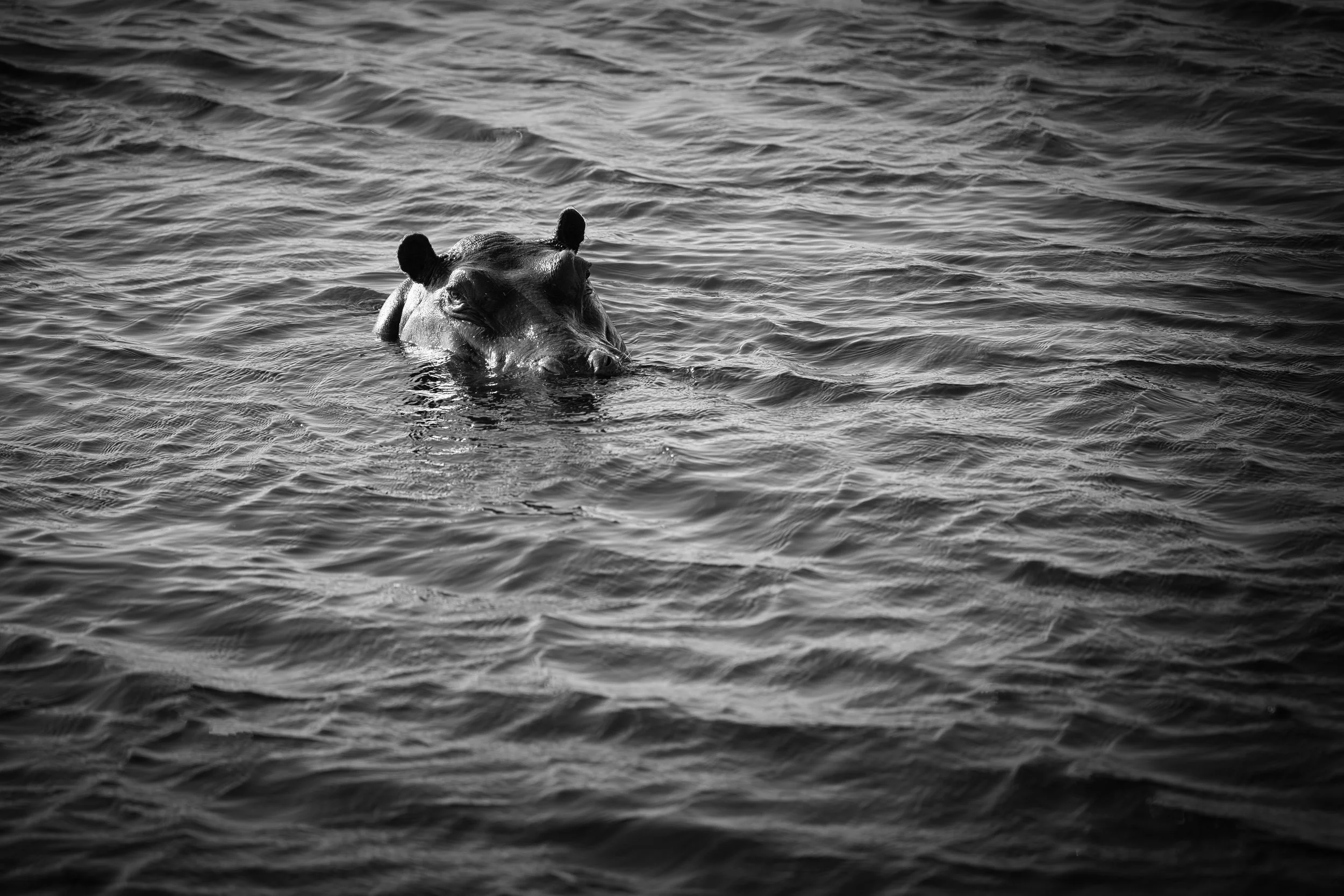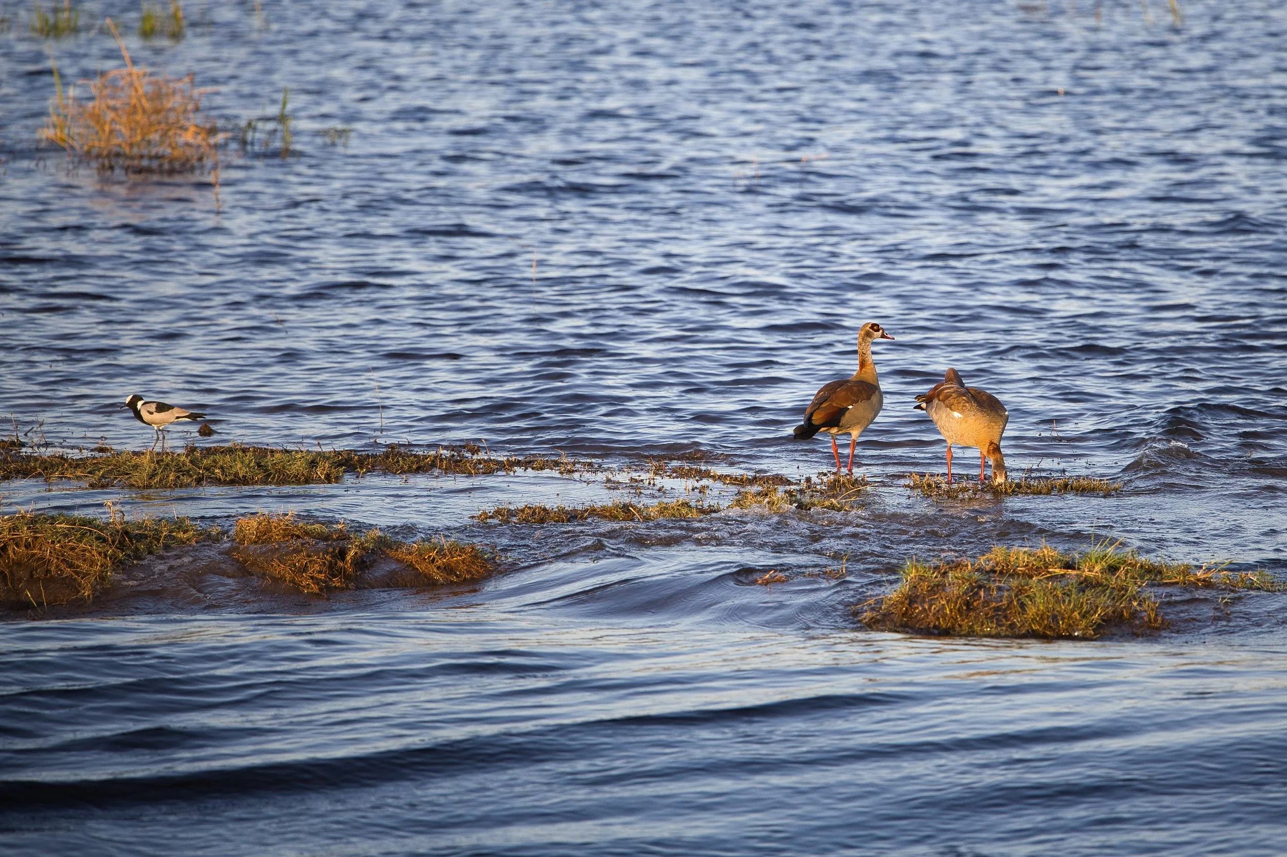 On the river proper dozens more elephants stood waist deep in the grasses feeding on the seemingly endless source. Wrapping their trunks around clumps of grass and ripping them from the submerged ground, they thrashed it against the water to remove all dirt and other impurities. They were oblivious to us and the slew of other boats pushing in for a closer look and just went about their daily foraging. Hippos too swam indiscriminately just below the surface, popping their snouts and ears above the surface every so often to receive paparazzi style clicks from the scores of cameras waiting for such movement. With their daylight hours spent entirely in the water, that would pretty much be it for hippopotamus views until sundown. The birdlife though was plentiful with even a pair of those ceramic ducks found on most living-room walls in the late 1970’s coming to life and flying across a void of blue sky.