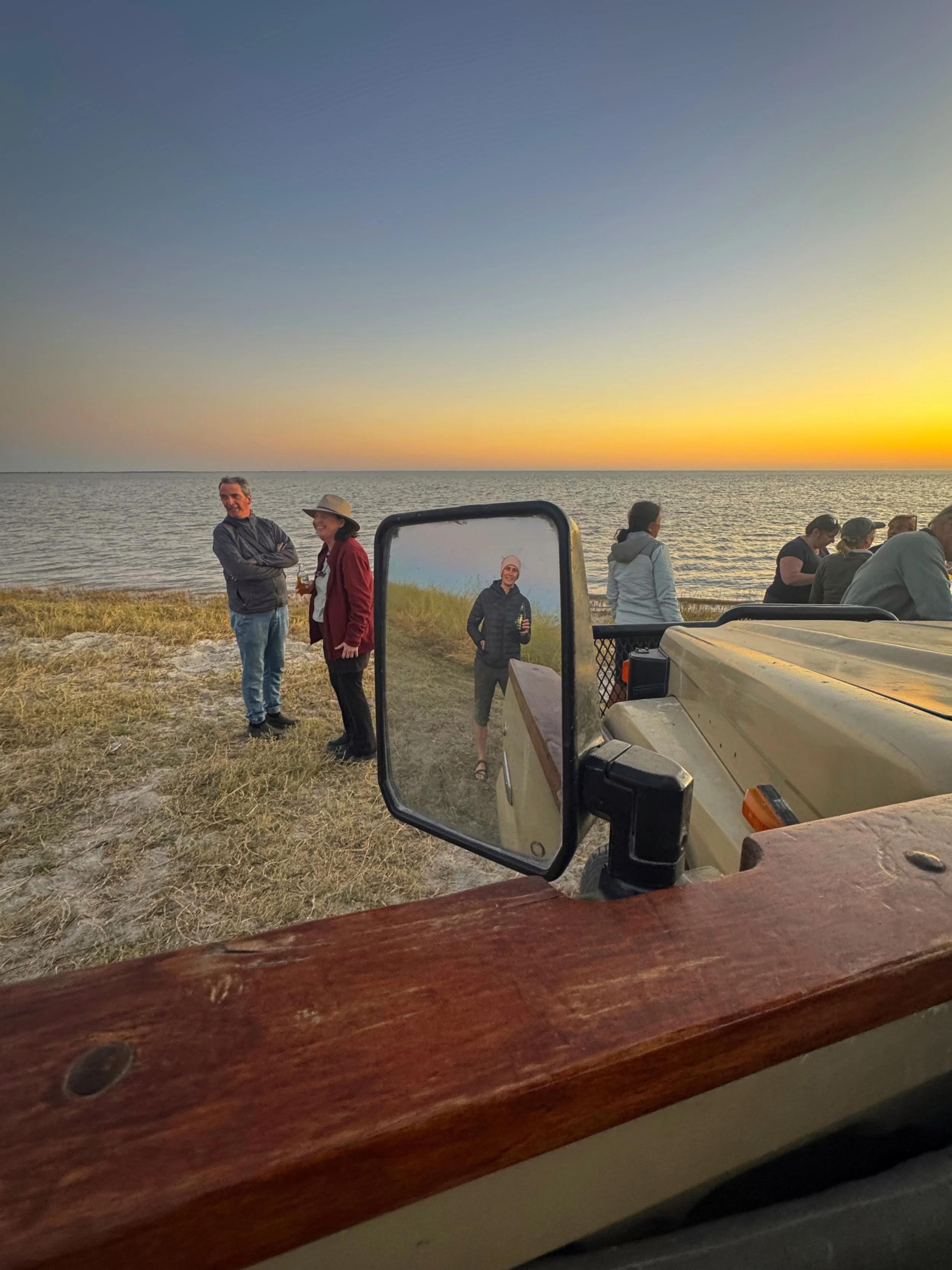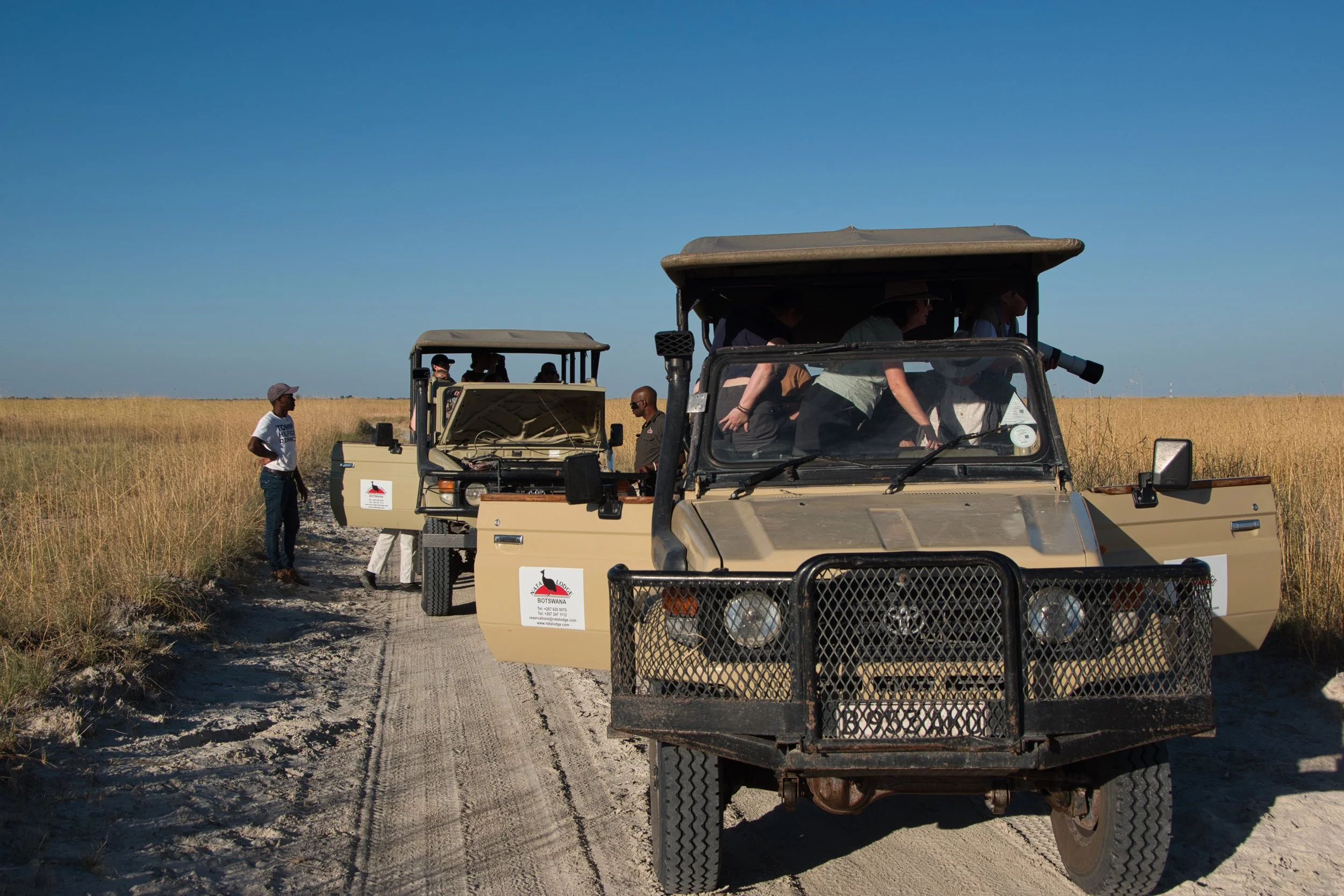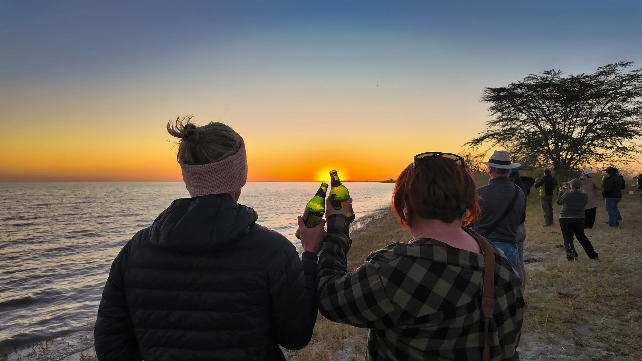 With a few G&T’s in the slot, it was late afternoon when two jeeps miraculously surfaced to take us out to the bird sanctuary for an afternoon safari and what was promised would be beers by the lake. The Nata Bird Sanctuary is the only protected reserve in north-eastern Botswana and a community managed project assisted by the Nata Conservation Committee, and national and international organisations. Opening in 1993 it encompasses an area of 230 square kilometres with the conservation of wildlife its major objective. Home to over 165 bird species, the sanctuary is of international importance due to its population of 250,000 lesser, and greater flamingos which visit the sanctuary annually in winter to breed, always after the rainy season, or whenever the water sources are full with most of the birds migrating from Etosha on the west coast in neighbouring Namibia.