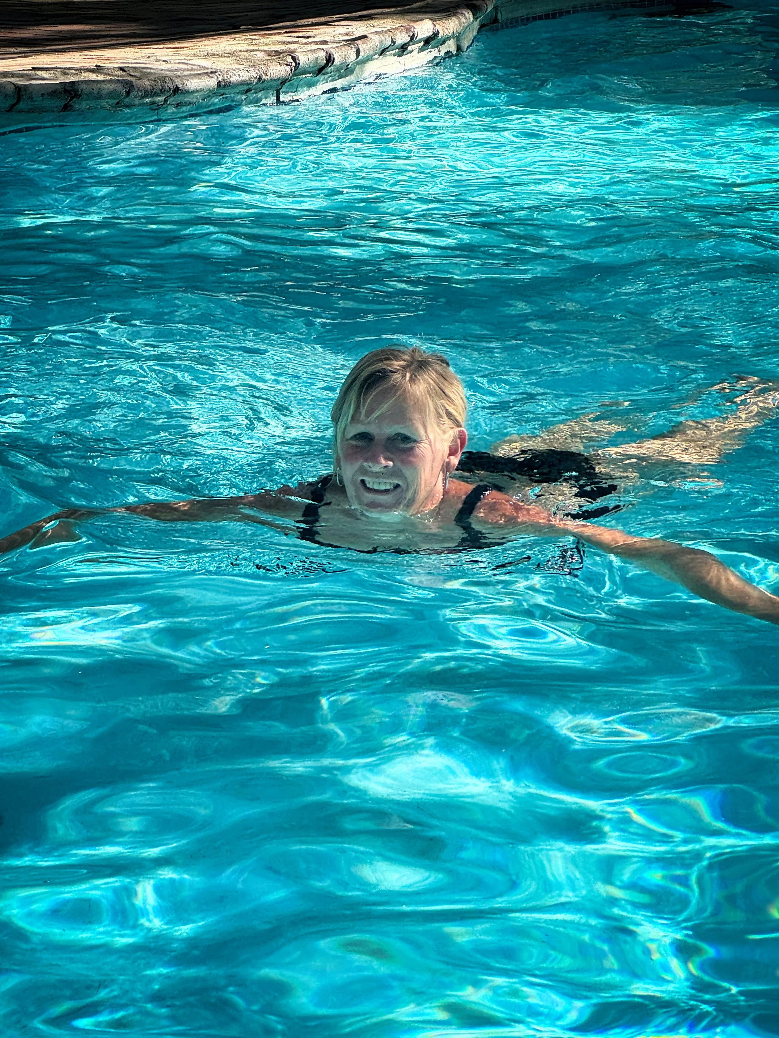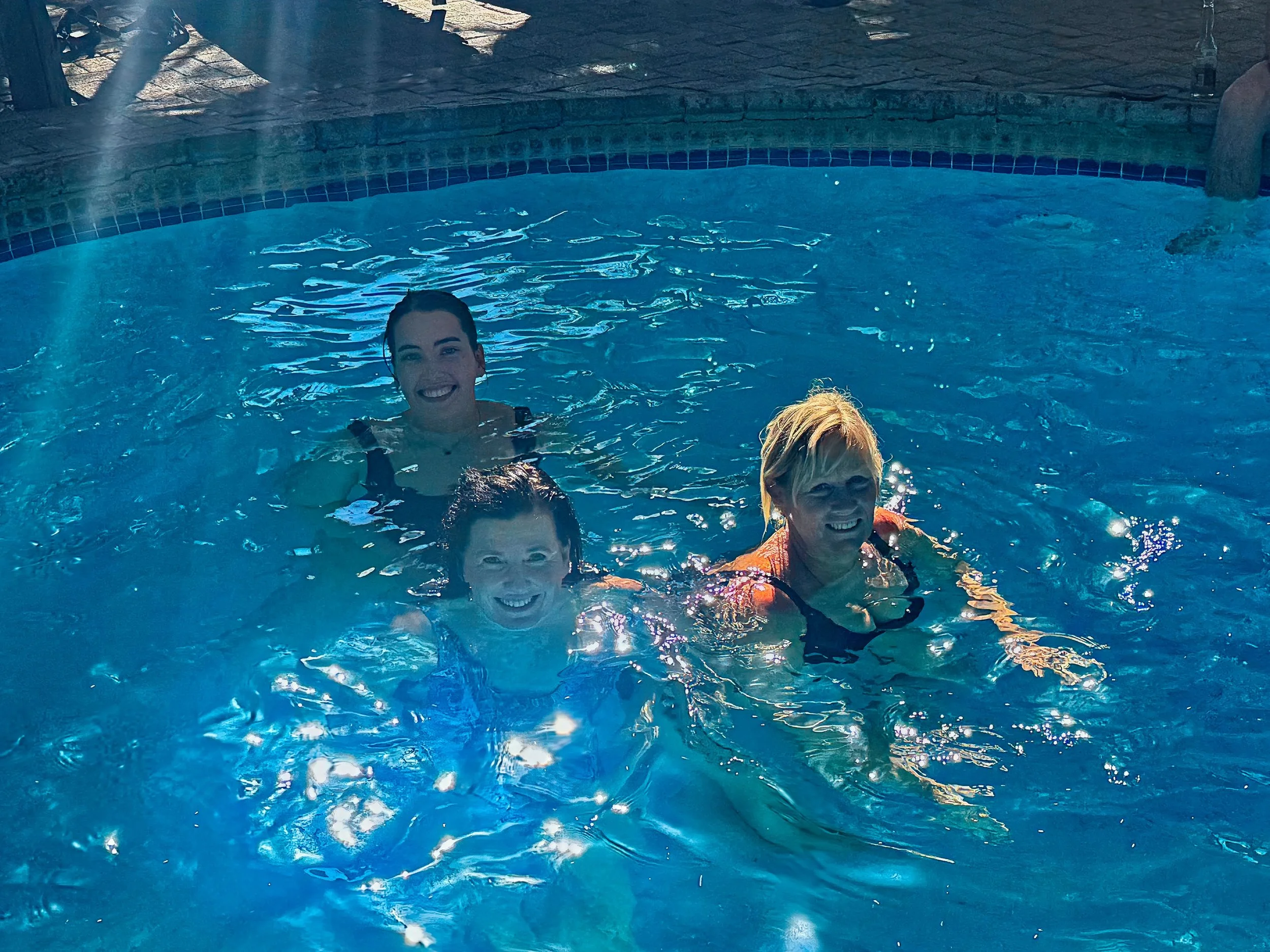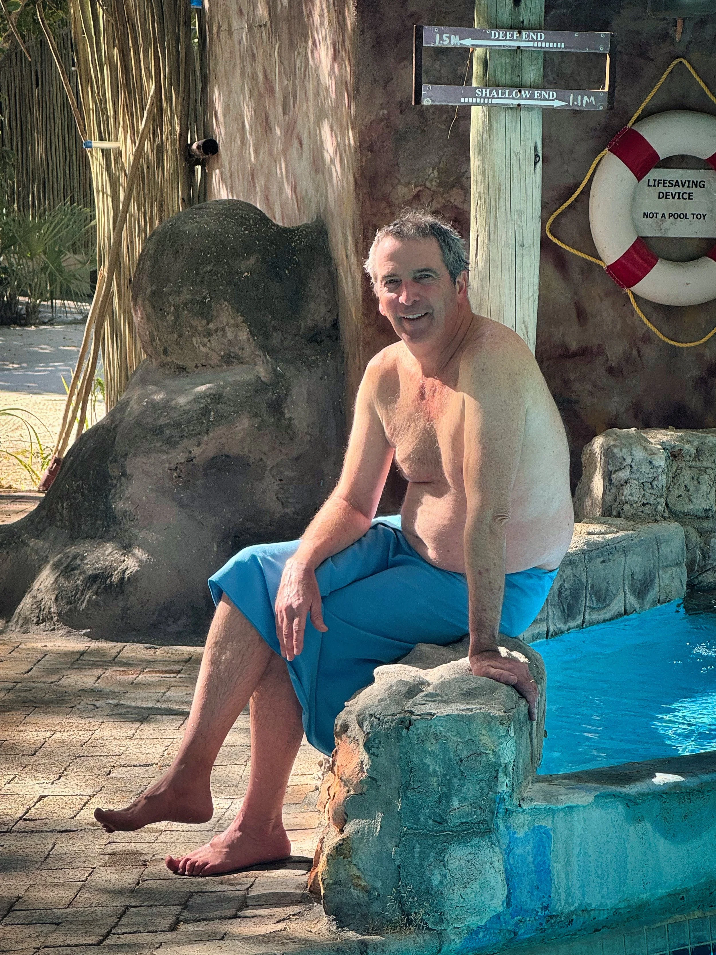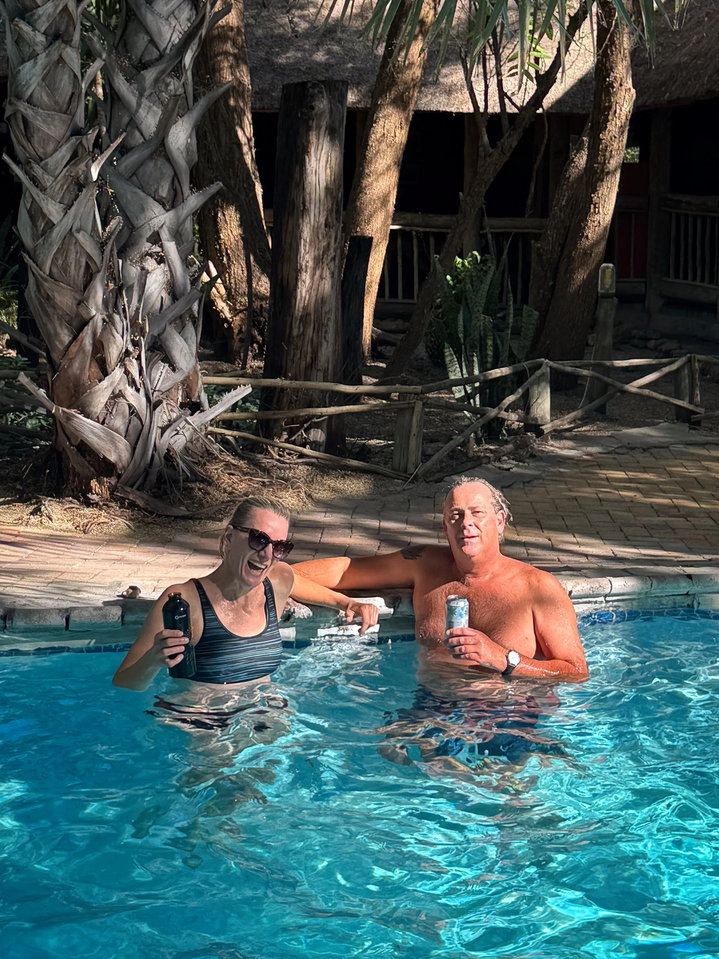 We established camp with the usual ring of tents then helped Nola set up the kitchen station before she prepared lunch, and with the cooler once again stocked we dined in the sun on delicious African style hotdogs and ice cold beverages. It was very laissez-faire befitting our ever slowing pace and a wonderful afternoon after a frantic first week. With a crystal blue pool on site it didn’t take much for many of us to head on down and test the waters, which as with all swimming this time of year, was frightfully cool but ultra refreshing.