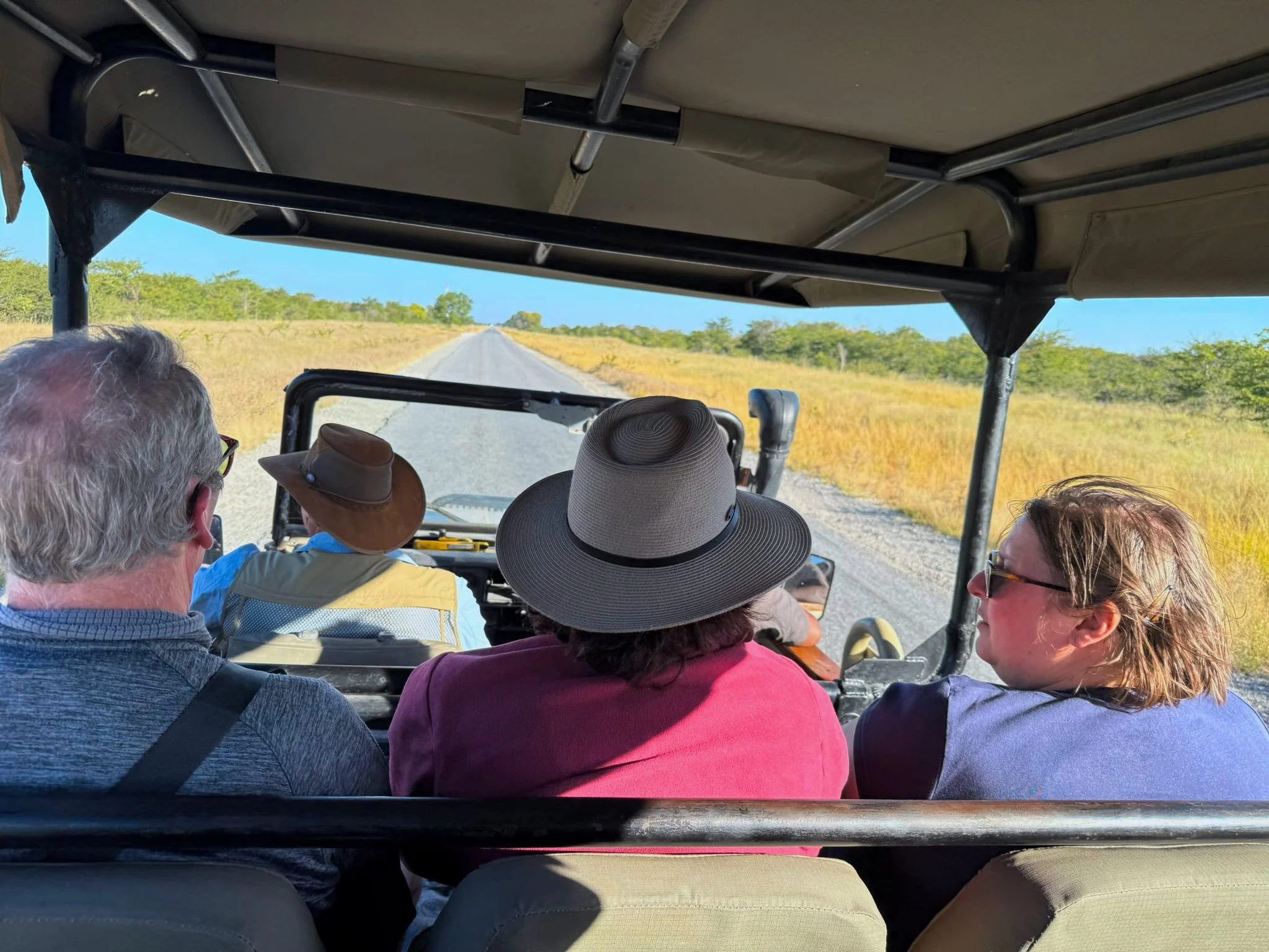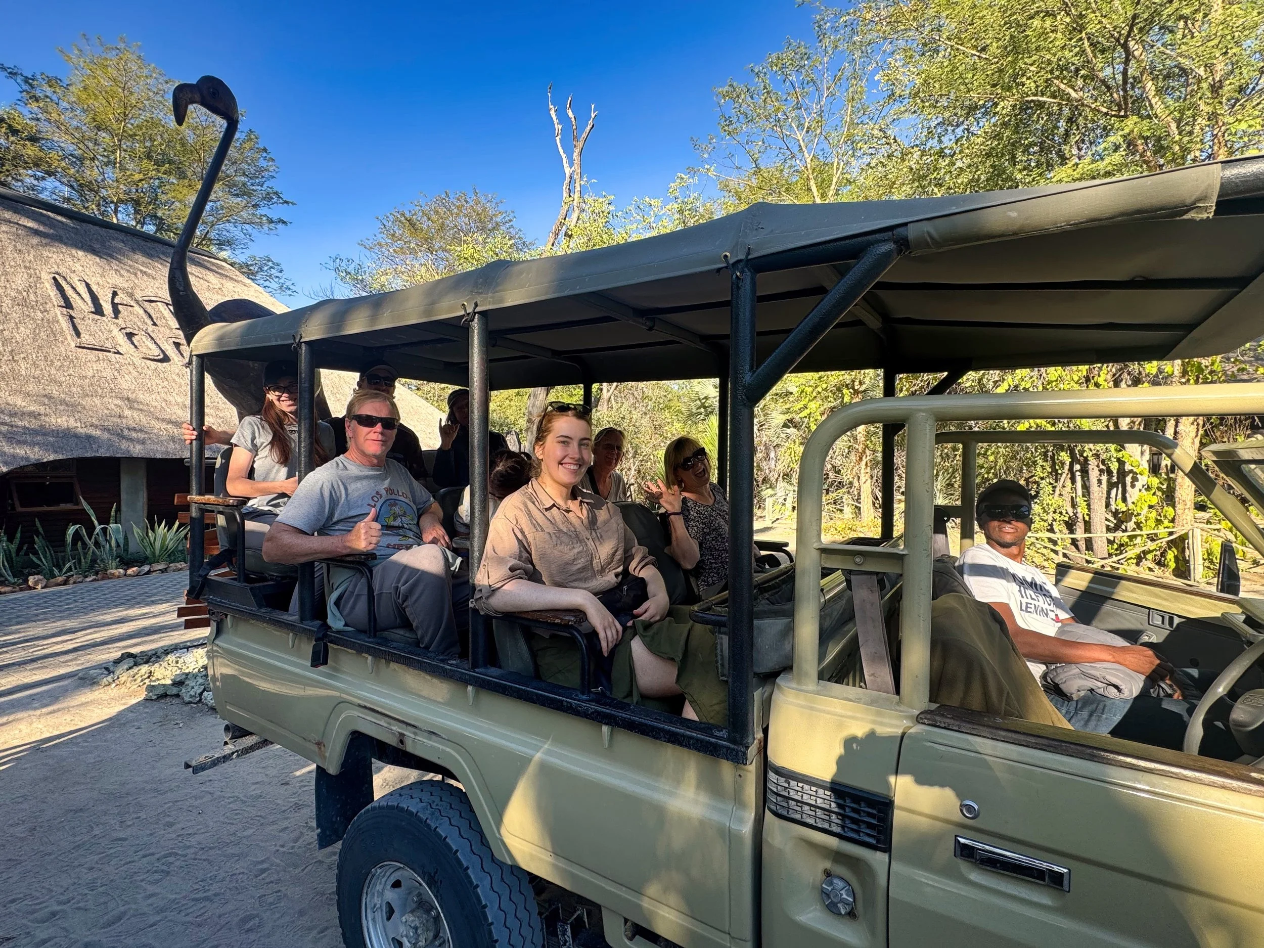 Taking the opportunity for a quick bushey-bushey while the shoes dried by the bus, we spotted a funky beetle just chillin’ around known as the Acanthus Discoidalis, and with two environmental scientists on tour we may well have been in 1835’s Galapagos Islands such was the excitement. The rest of the trip remained uneventful until we got closer to town and the familiar outlets of Chappies and Liquorama. With snacks and grog all loaded up we found our digs for the night at Nata Lodge just a few kilometres out of town. Like all the campsites we stayed in, Nata Lodge was an oasis on the African plains with powered tent sites, open aired and spotlessly clean ablution blocks, a swimming pool, bar, restaurant and even a gift shop. Catering to all level of traveller with private lodges and glamping style tents, the great thing about these sites is that all amenities are available to everyone regardless of residential status.