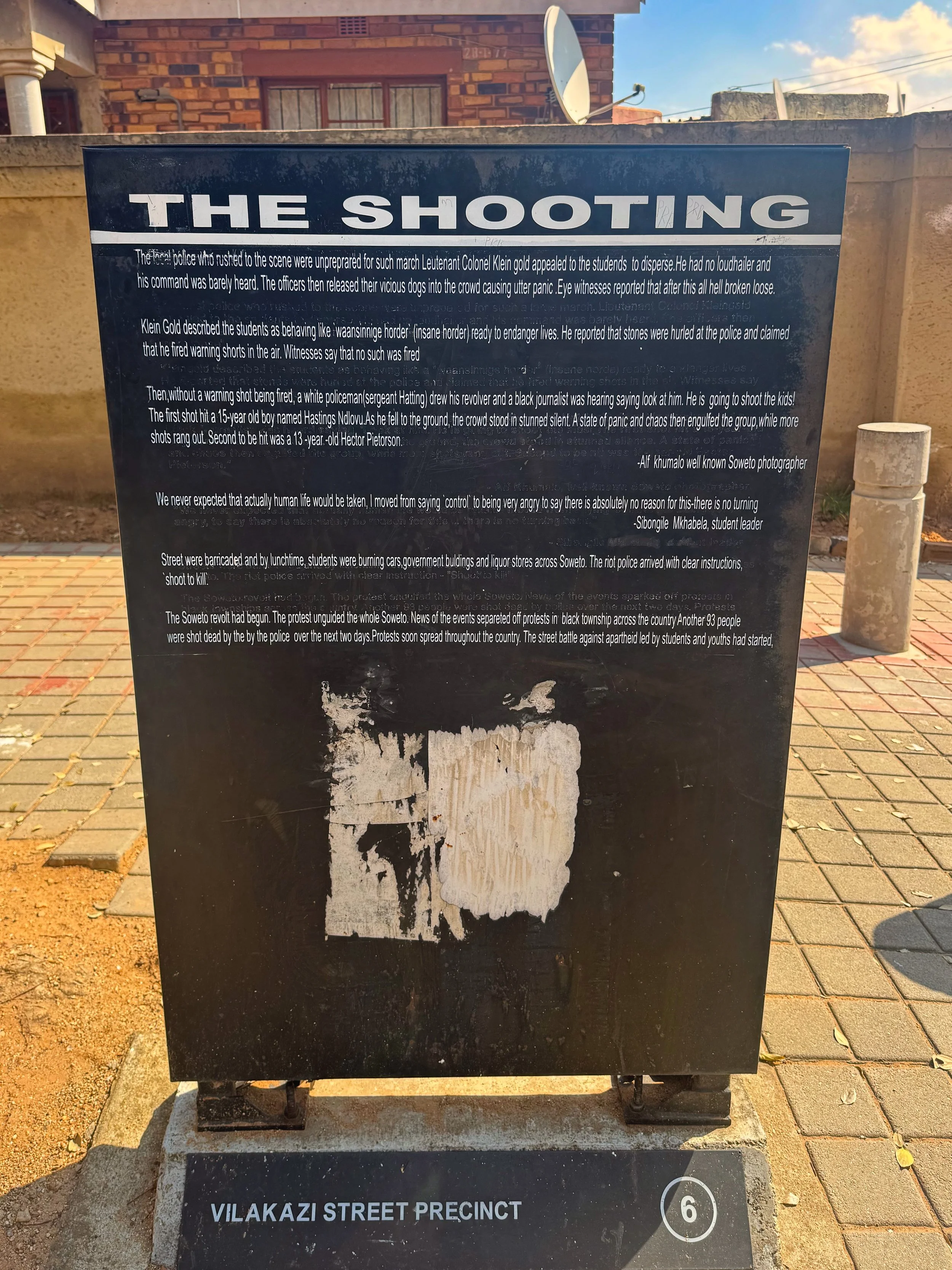 Soweto came to the world's attention on 16 June 1976 when a peaceful protest erupted over the government's policy to enforce all education in the Afrikaans language rather than various native ones. After a standoff and intimidation by guard dogs invoking some retaliatory rock throwing, police opened fire on 10,000 students marching from Naledi High School in Vilakazi Street. Mayhem ensued and it is estimated over 600 students were shot and killed as a result. The youngest, and most famous was Hector Pietersen who became the symbol of youth in the country for decades to come. He was only 13 at the time and iconically captured by Sam Nzima, a photojournalist for The World newspaper whose image shocked the world and shone a spotlight on the South African’s apartheid regime.