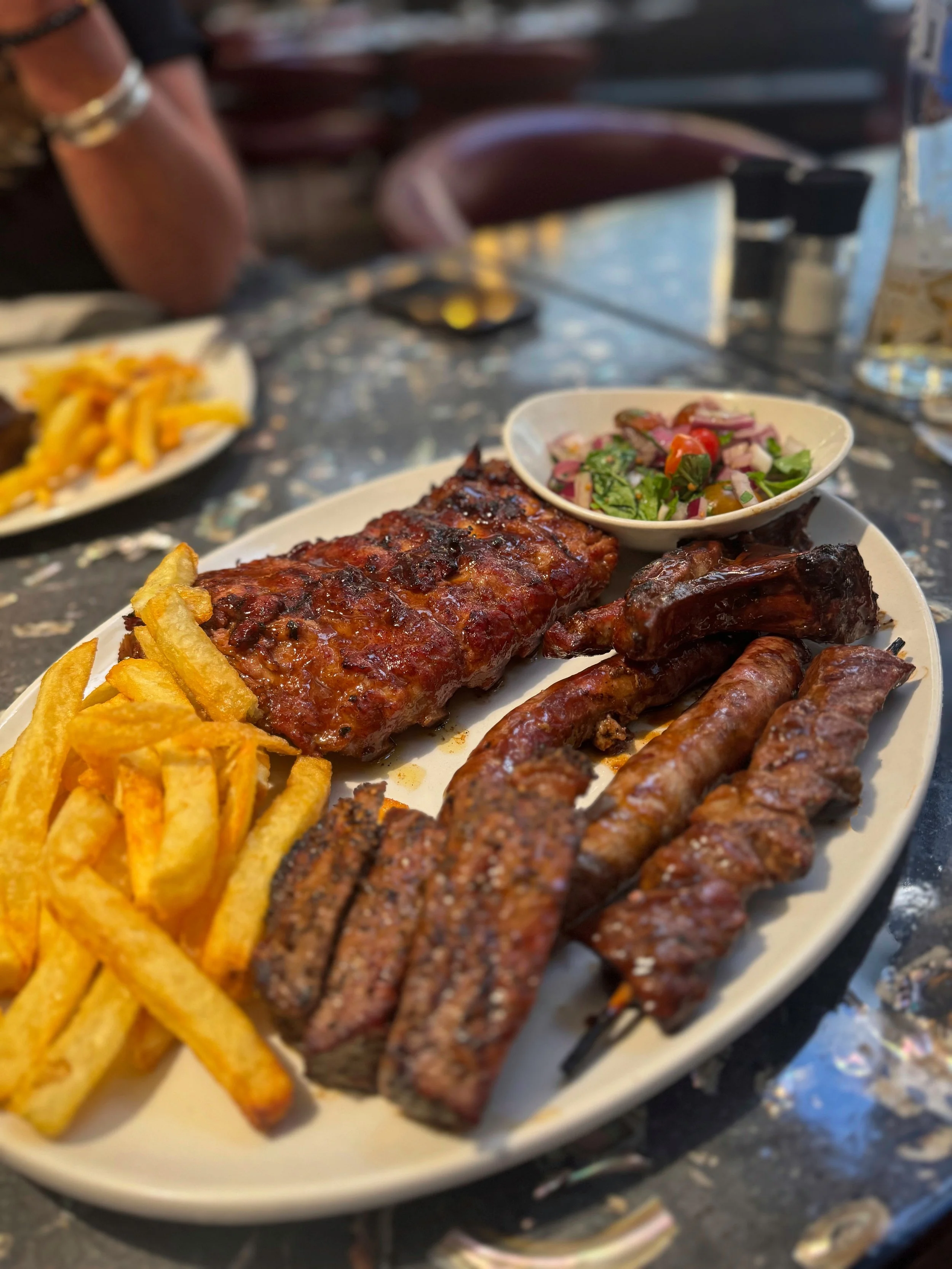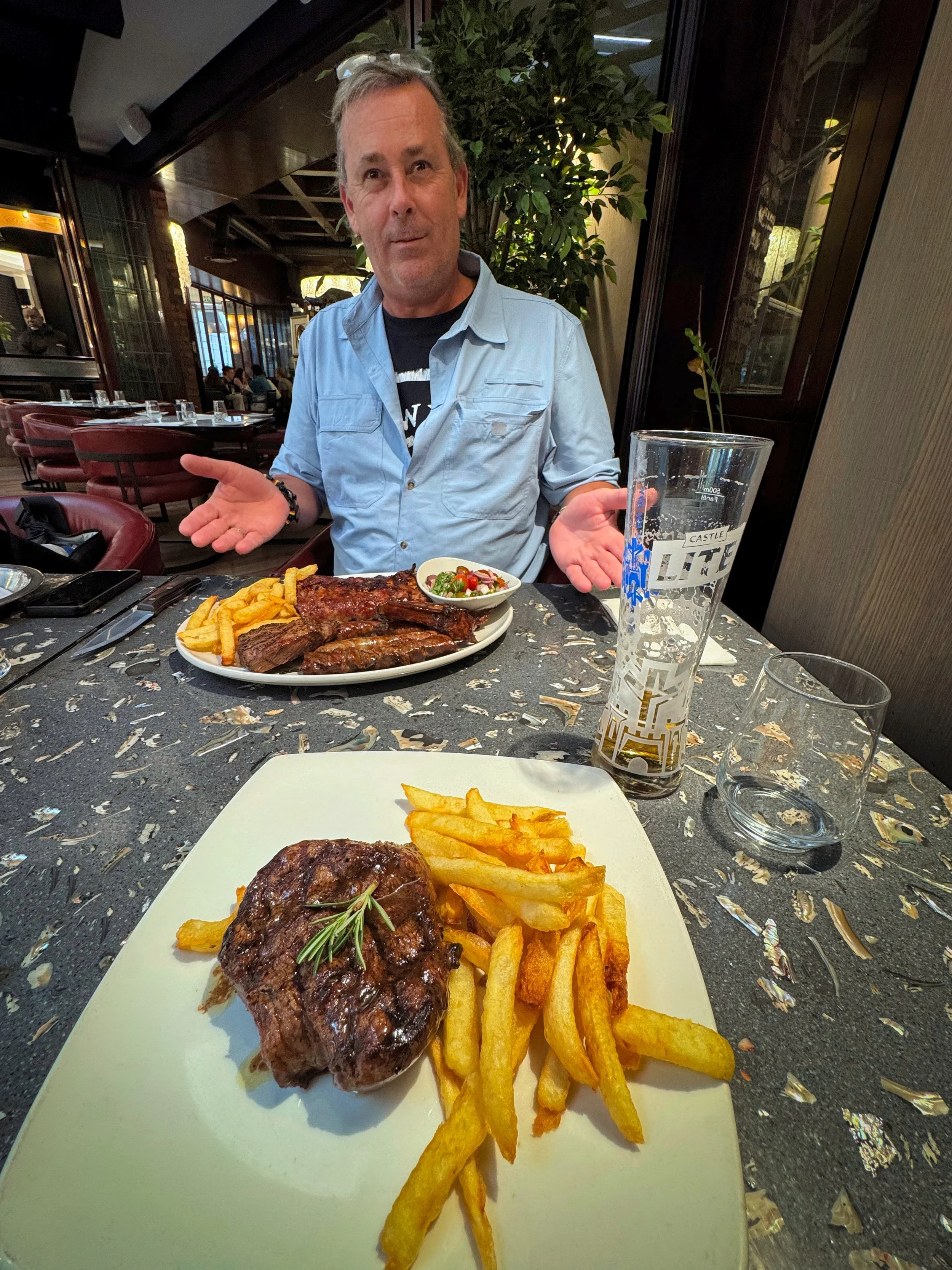 Soweto exceeded all expectations producing both joy and sadness in a matter of only hours. Thomas delivered us home early afternoon and we immediately headed to a steakhouse recommended by a future travel companion. Located just around the corner from the hotel in the newly refurbished Rosebank Mall among rows of outdoor eateries was apparently the best South African Braai in, well, South Africa. Lyndall opted astutely for a 300gm steak while Fatpap gluttonously ordered the works. Ribs, steak, sausages, kebabs and lamb chops served with a side of fries and salad. You all know the immediate result and of course that to come in a matter of hours, but Michelle was right, it was the best South African Braai. Oh, he also finished Lyndall’s too. We had a few more beers back at the hotel then a little afternoon rest, for tonight we would be meeting our companions for the next 10 days and preparing to head north to Botswana in the morning.