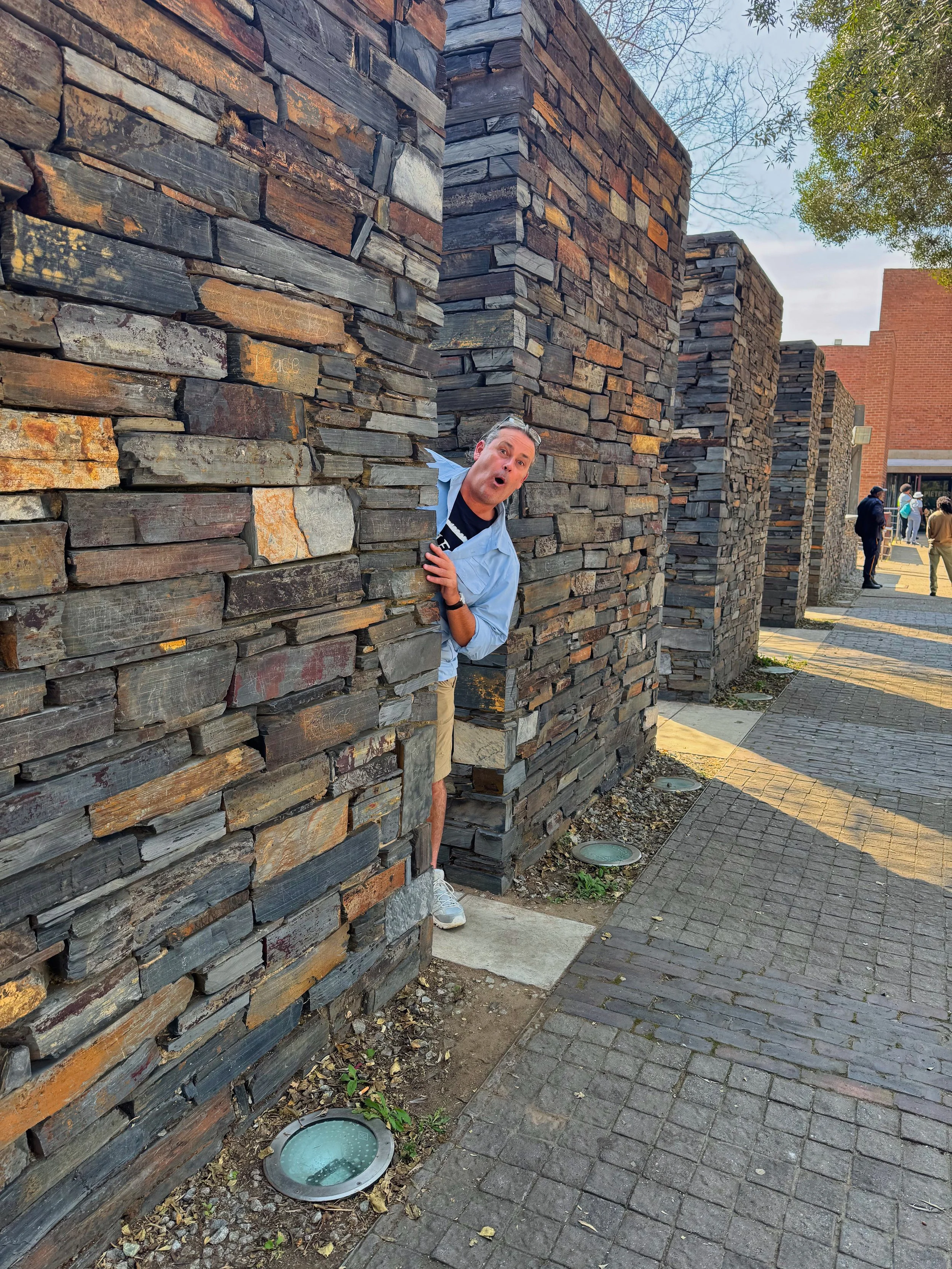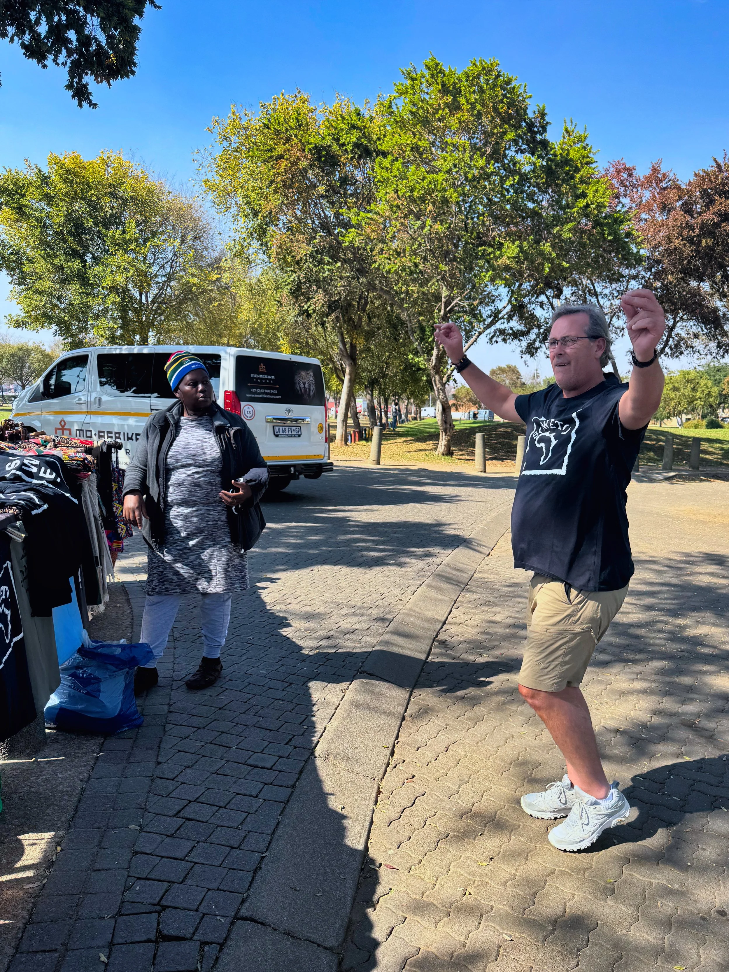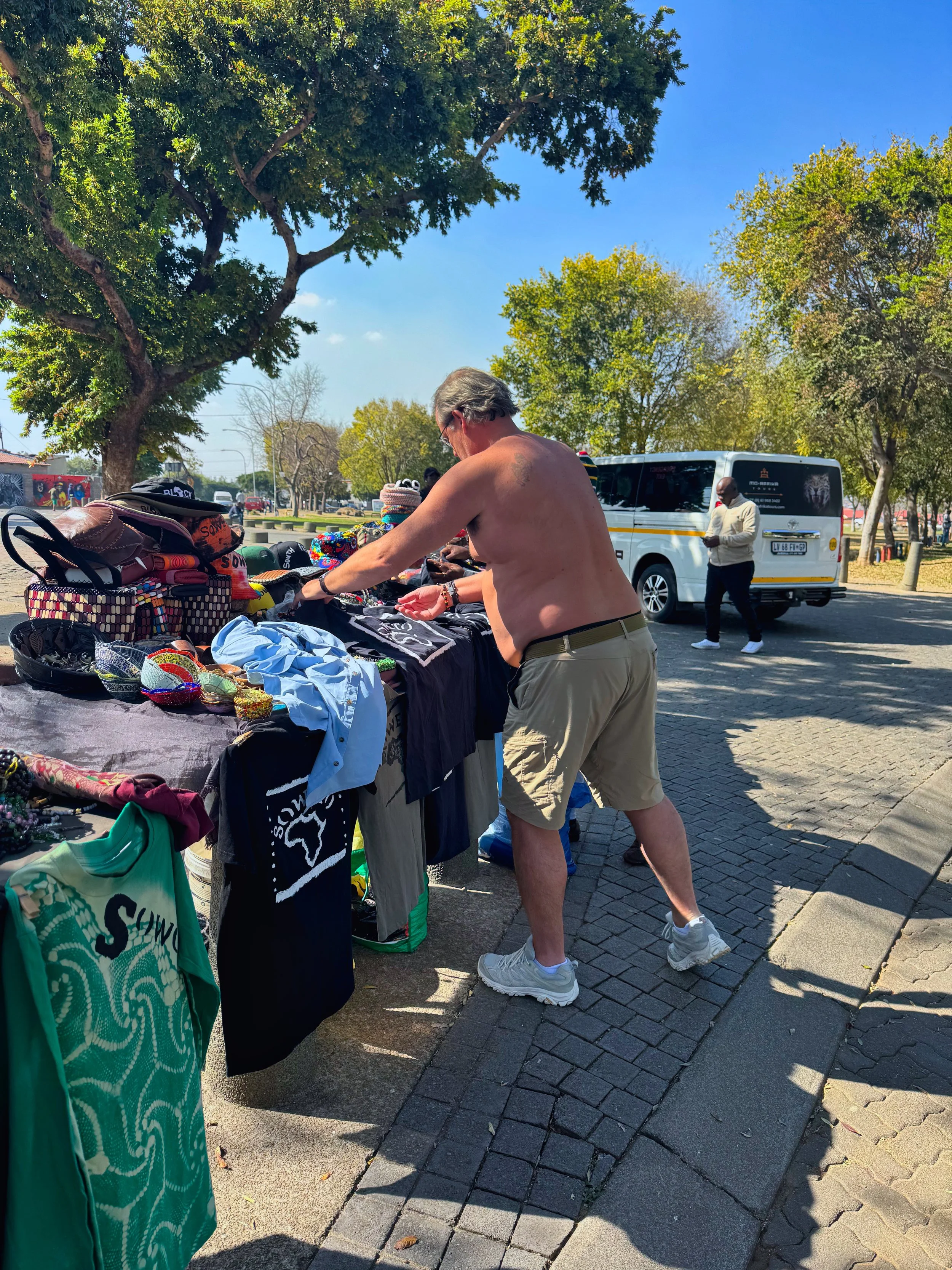 For Fatpap, Soweto was a major highlight he’d been looking forward to as part of this African odyssey and everything thus far had been as expected. The true impact though came on the crest of hill where he frantically asked Thomas to stop the car. Below was a vista of tin shacks and makeshift homes which was macabrely the exact image he was looking to photograph. Not to make fun of the inhabitants nor take advantage of their plight, more to replicate an image he’d had in his mind since the late 1970’s, an image that was heart wrenching to witness but heartening to learn is now disappearing. En route to our next point of interest we stopped at a roadside souvenir stand where local ladies plied the most vibrant handmade artefacts. Fatpap was needless to say pretty happy to find a hand painted T-Shirt he liked fitting his colossal measurements.