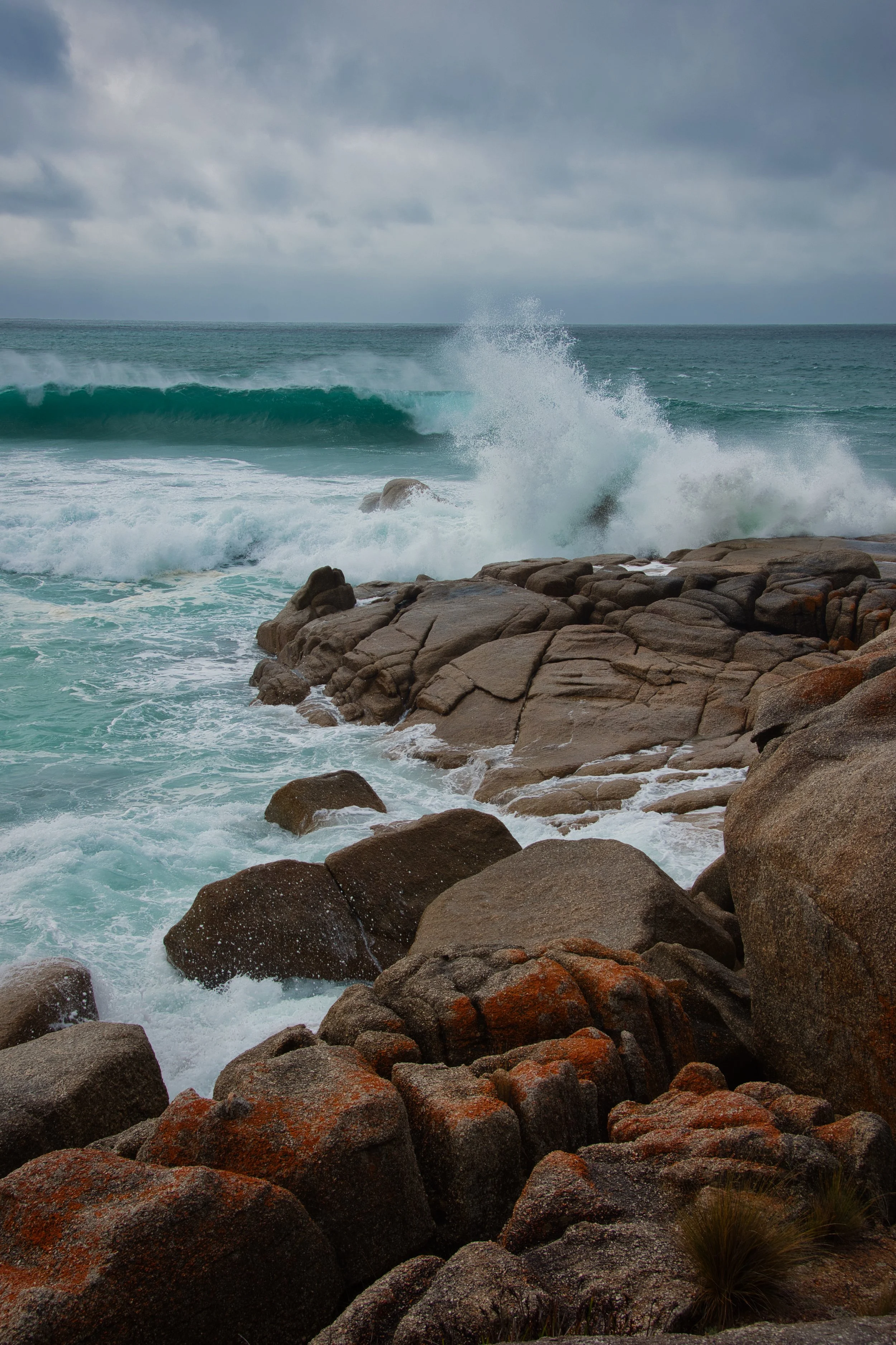 In and out of phone reception, we received an email a few days ago from Bay of Fires Eco Tours. We’d booked a boat tour for this morning but due to predicted 4 metre swells, they though best to cancel. It was to include exploration of the coastline and a visit to a local seal colony, and after arriving on the coast last night and witnessing first hand the fury of an eastern low, we were glad they knew what they’re doing.