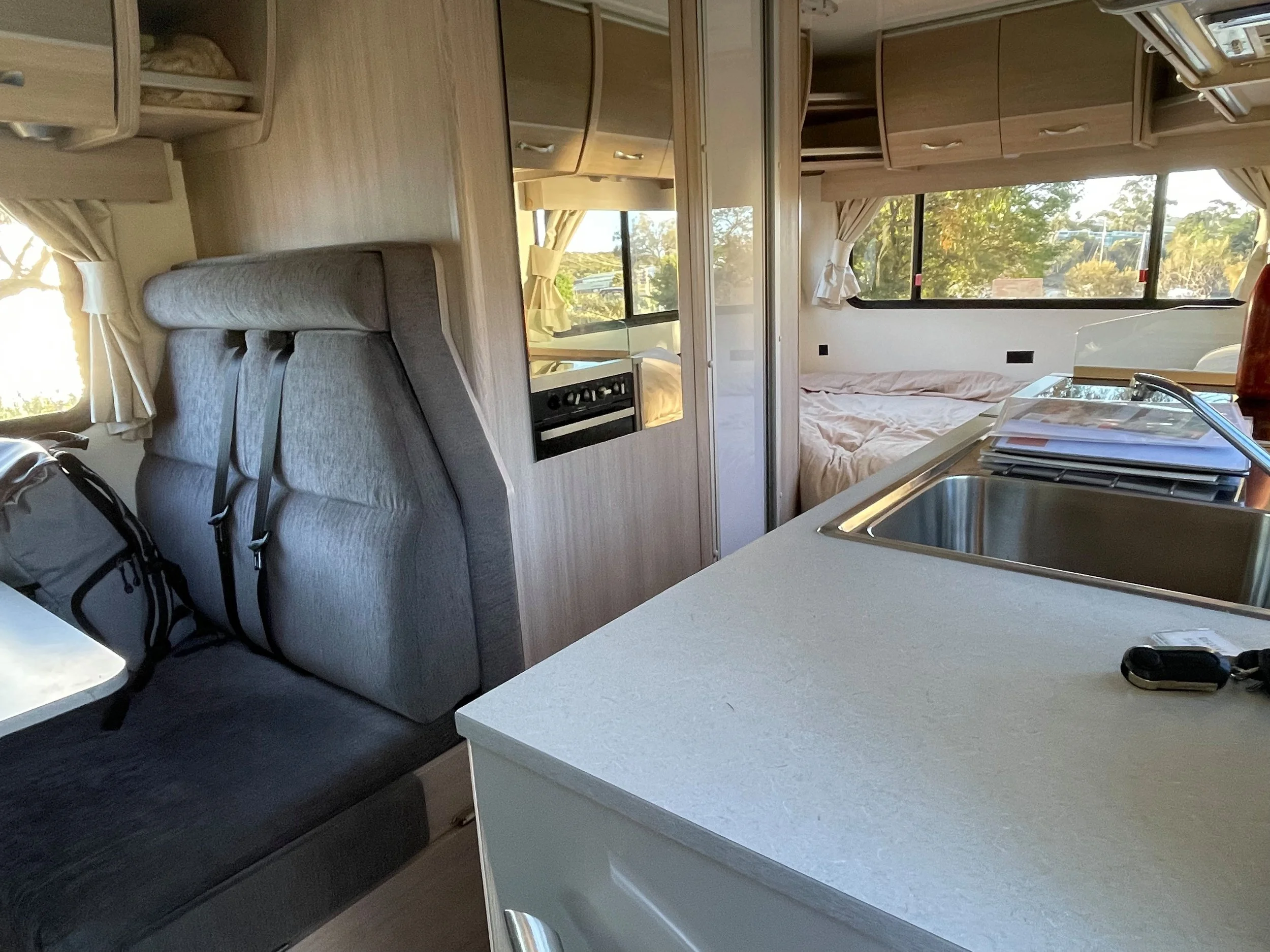 An inbuilt awning, outside table and chairs, and every light needed completed what we think is the perfect sized touring vehicle. Strangely, the only thing missing on this wagon was a BBQ? As a garbo Fatpap is comfortable driving most vehicles, and for the uninitiated this chariot is nothing to worry about. Drive easy, take turns slow and enjoy the countryside you are traversing.