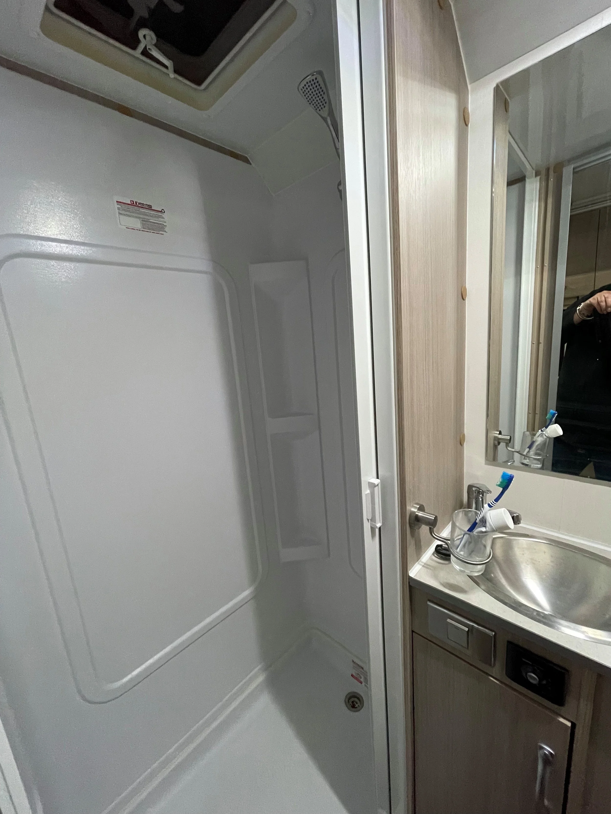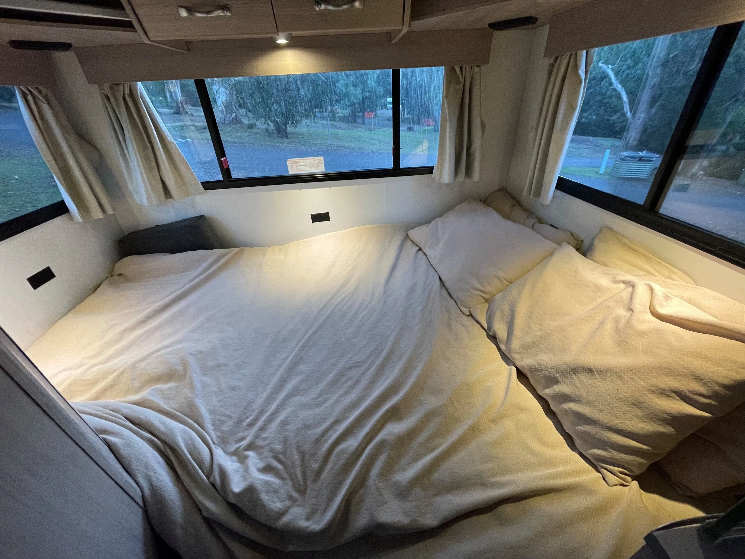 At the rear another double bed converted from a wrap around dinning area. We had the bed permanently set up, again adding to the importance of the aforementioned dinette. Anthony also has an onboard toilet, shower and hot water system. Generally speaking we try and shower, and well, shit, at any available land based facility, but its such a convenience knowing we have all of those facilities on hand if needed. We showered in the van many times on this trip which was refreshing when out free camping in the middle of nowhere.
