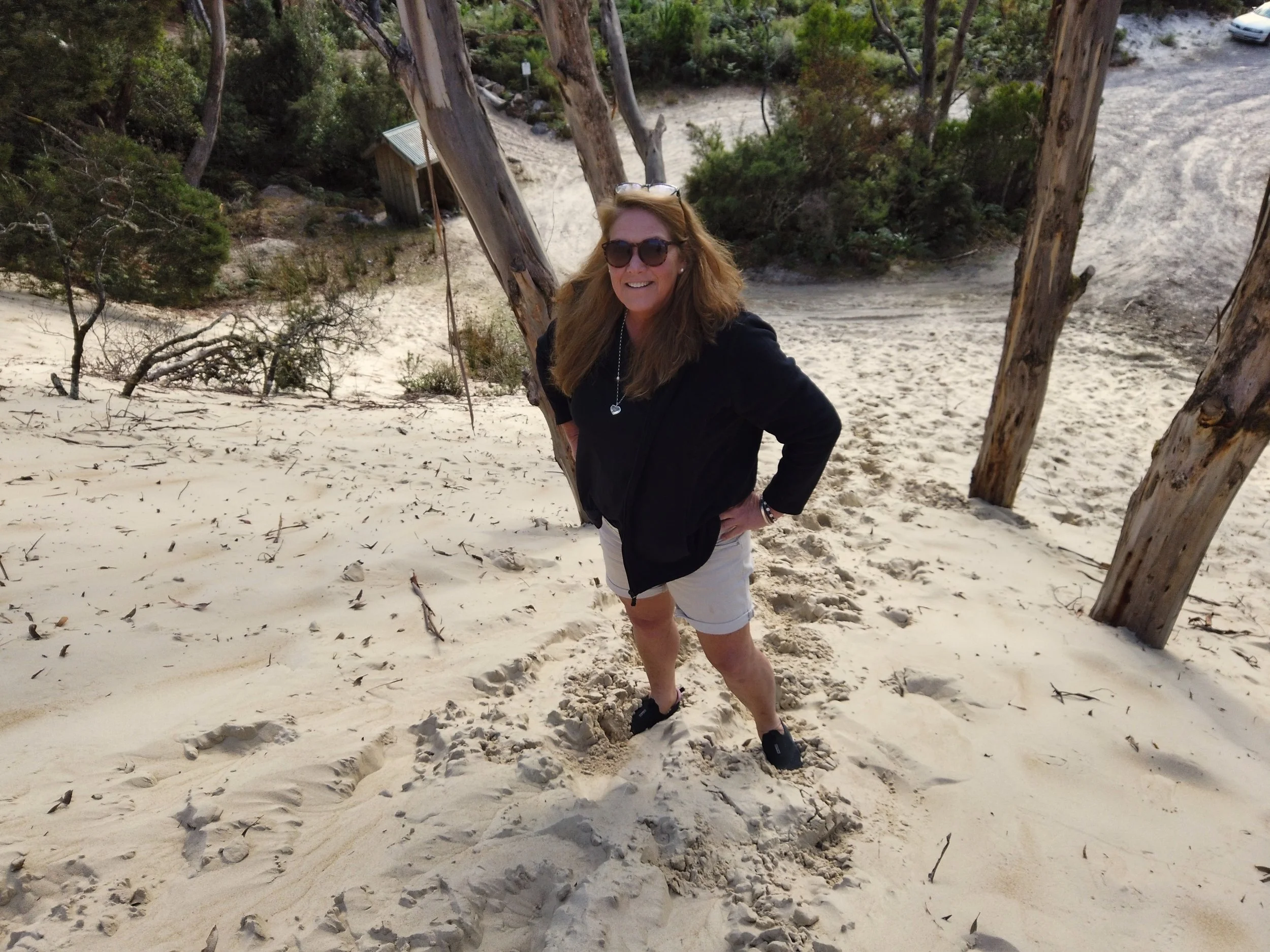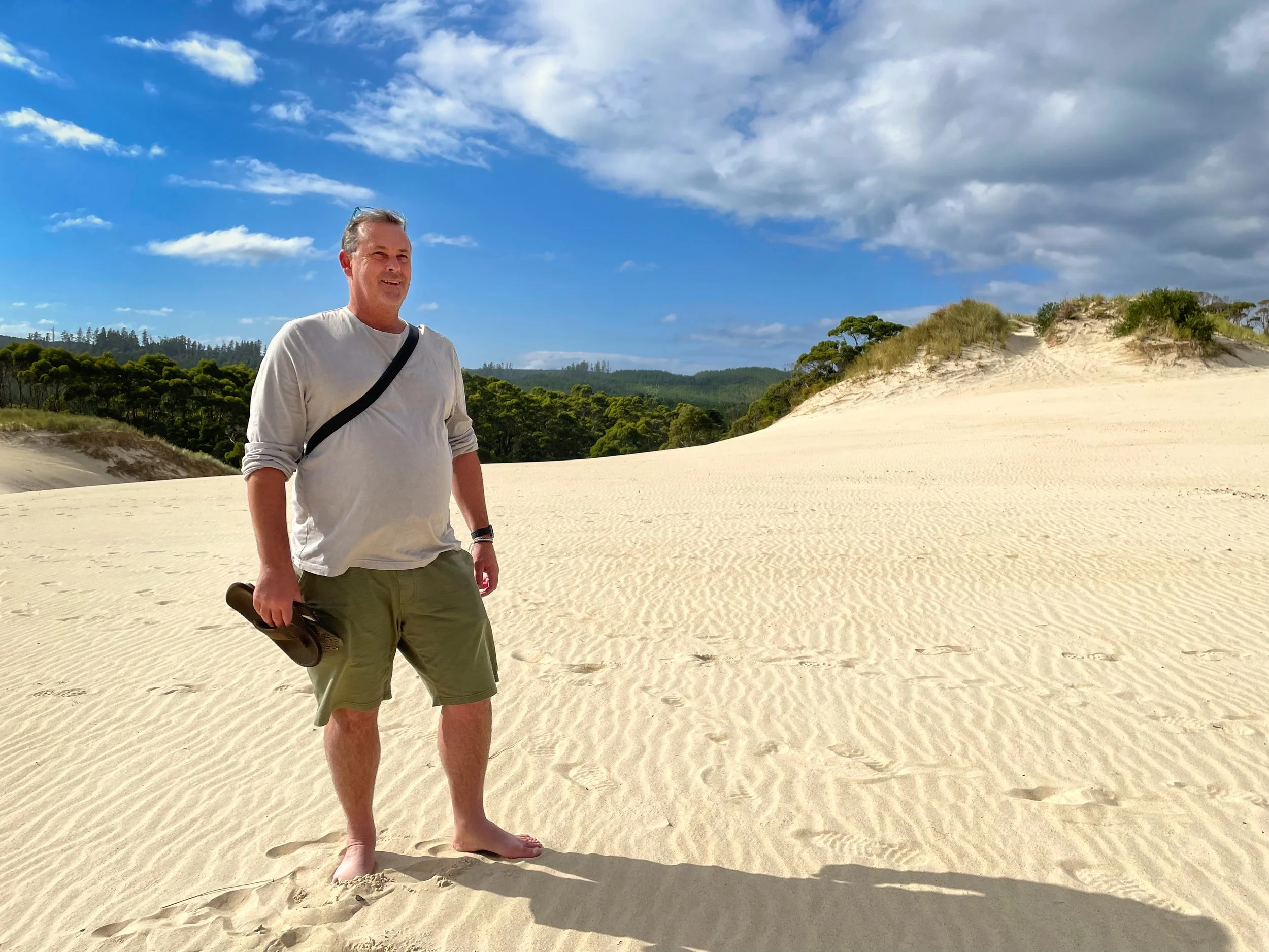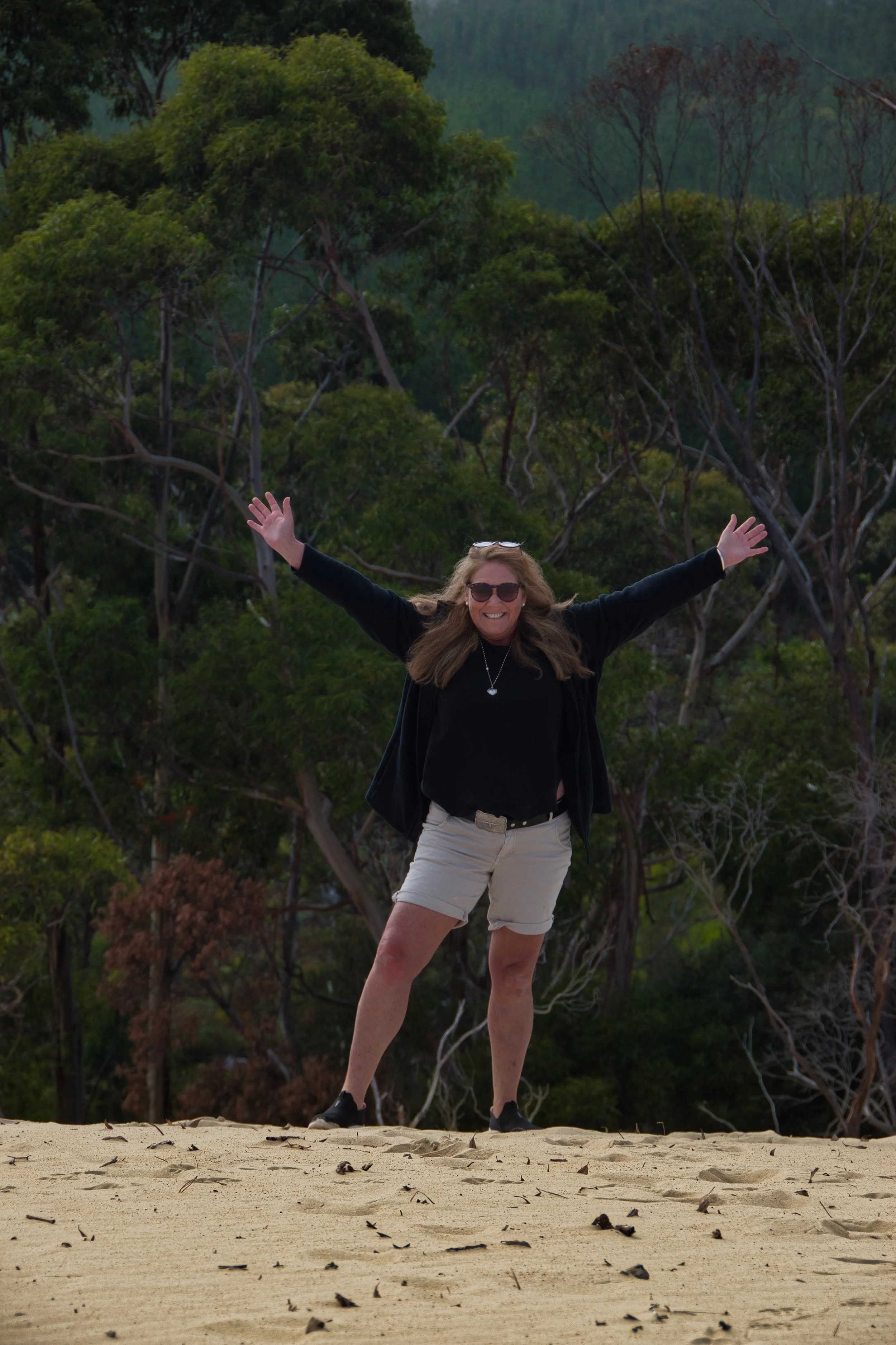 Taking full advantage of the facilities at the campgrounds entrance, we topped up our water, disposed of our, well, disposings, and made a bee-line for Cradle Mountain. Not 20 km north we hit our first planned stop of Henty Dunes. Blown in from the roaring forties and reaching 40 metre heights along a 15 km stretch of coastline, these sand dunes are a virtual desert among the rainforest of western Tasmania.