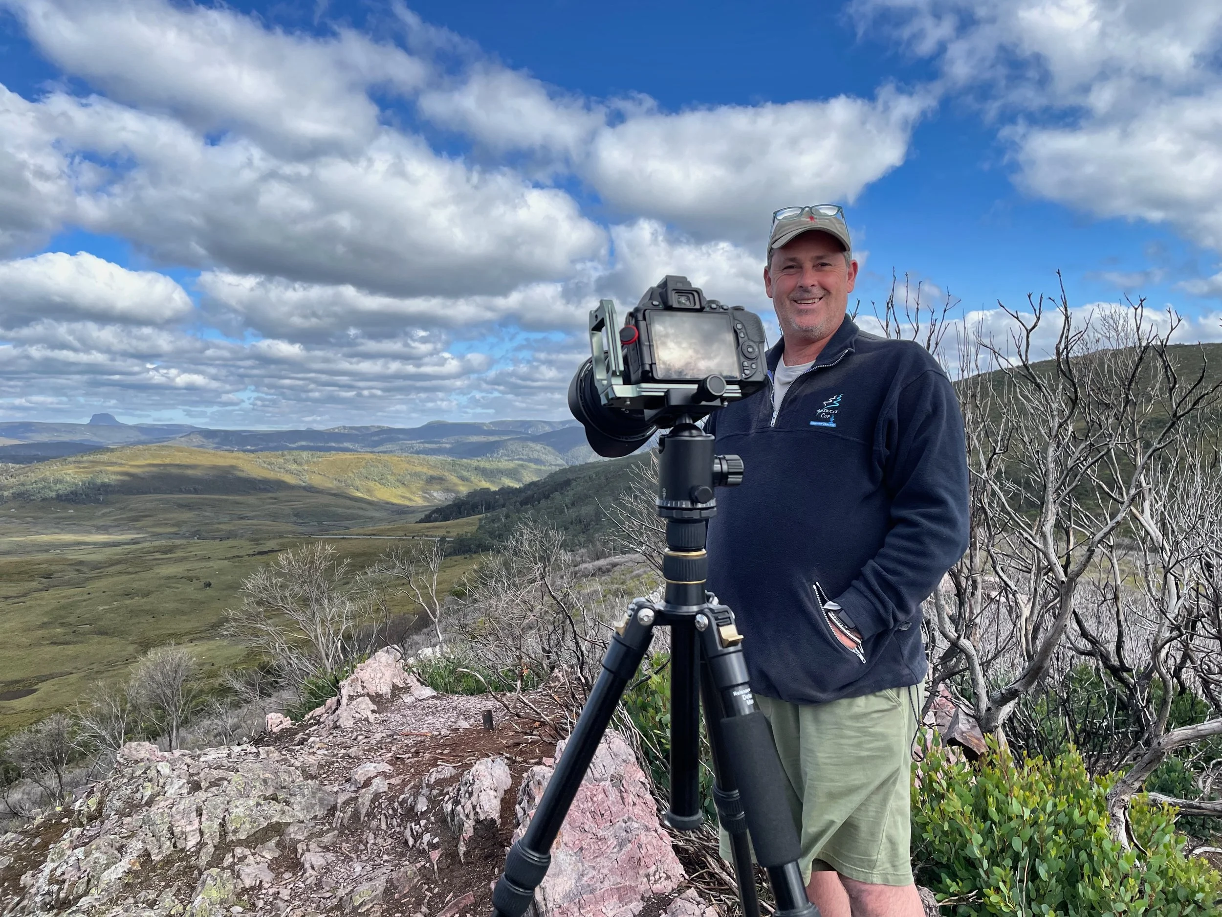 Back on the road we headed for a planned photographic stop at the Vale of Belvoir renowned for its panoramic beauty. The recommendations were right on the money and despite the unwelcome 400 metre climb to Black Bluff lookout, the vale and surrounding vista was breathtaking. Looking up the Middlesex valley we turned 180 degrees to spy Cradle Mountain, our home for the next 2 nights, and ripped off both structured and goofy images alike.