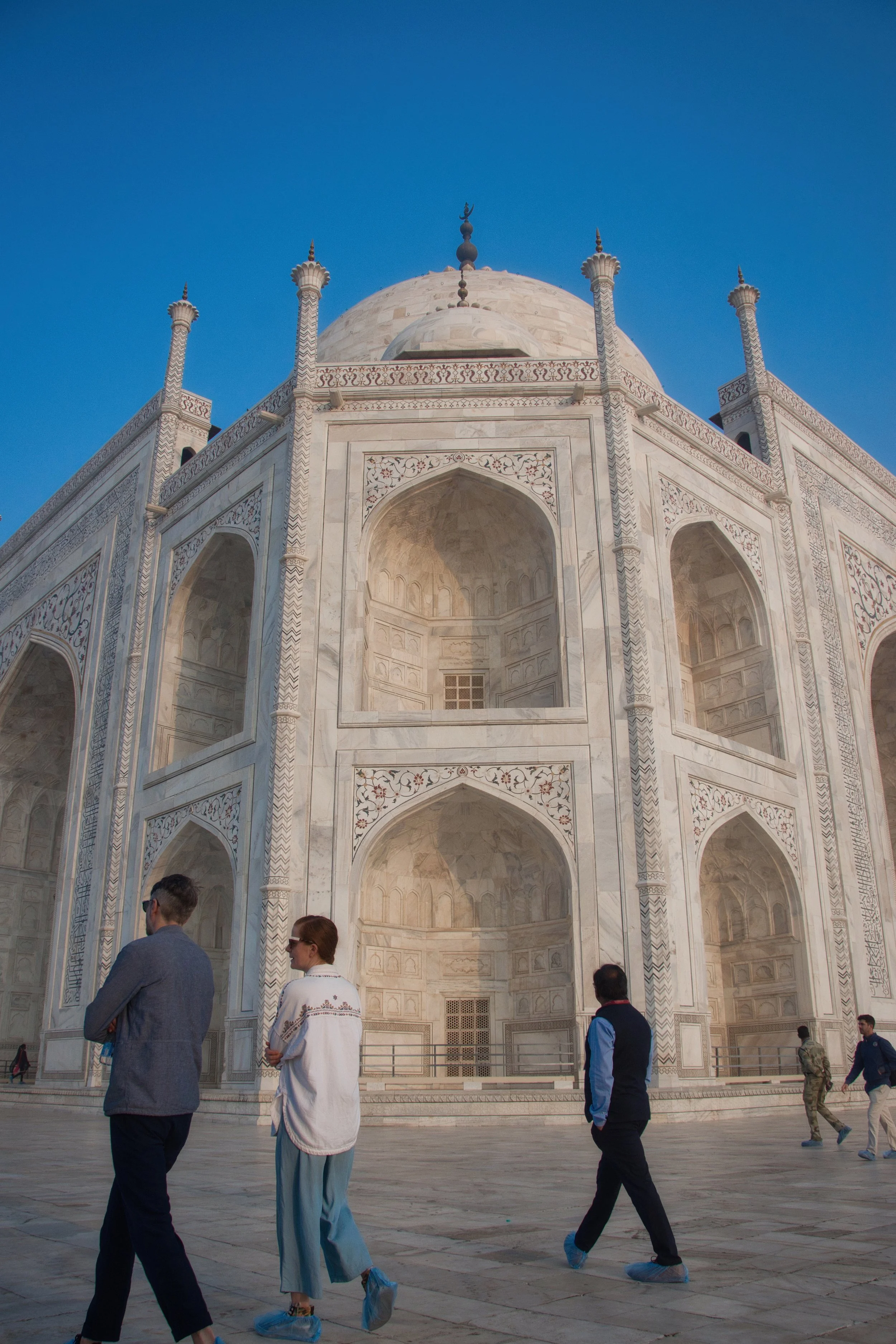 The Taj is an ivory-white marble mausoleum commissioned in 1631 by the fifth Mugal Emperor, Shah Jahan to house the tomb of his favourite wife, and later himself. The tomb is the centrepiece of a 42-acre complex which includes a mosque and guest house set in formal gardens bounded on three sides by a crenellated wall. Completed essentially in 1643 the building cost in today’s money USD 1 Billion. Employing some 20,000 artisans under the guidance of Ustad Ahmad Lahori, the emperor’s court architect, it displays various types of symbolism to reflect natural beauty and divinity. The Taj Mahal was designated as a UNESCO World Heritage Site in 1983 for being “one of the universally admired masterpieces of the world's heritage".