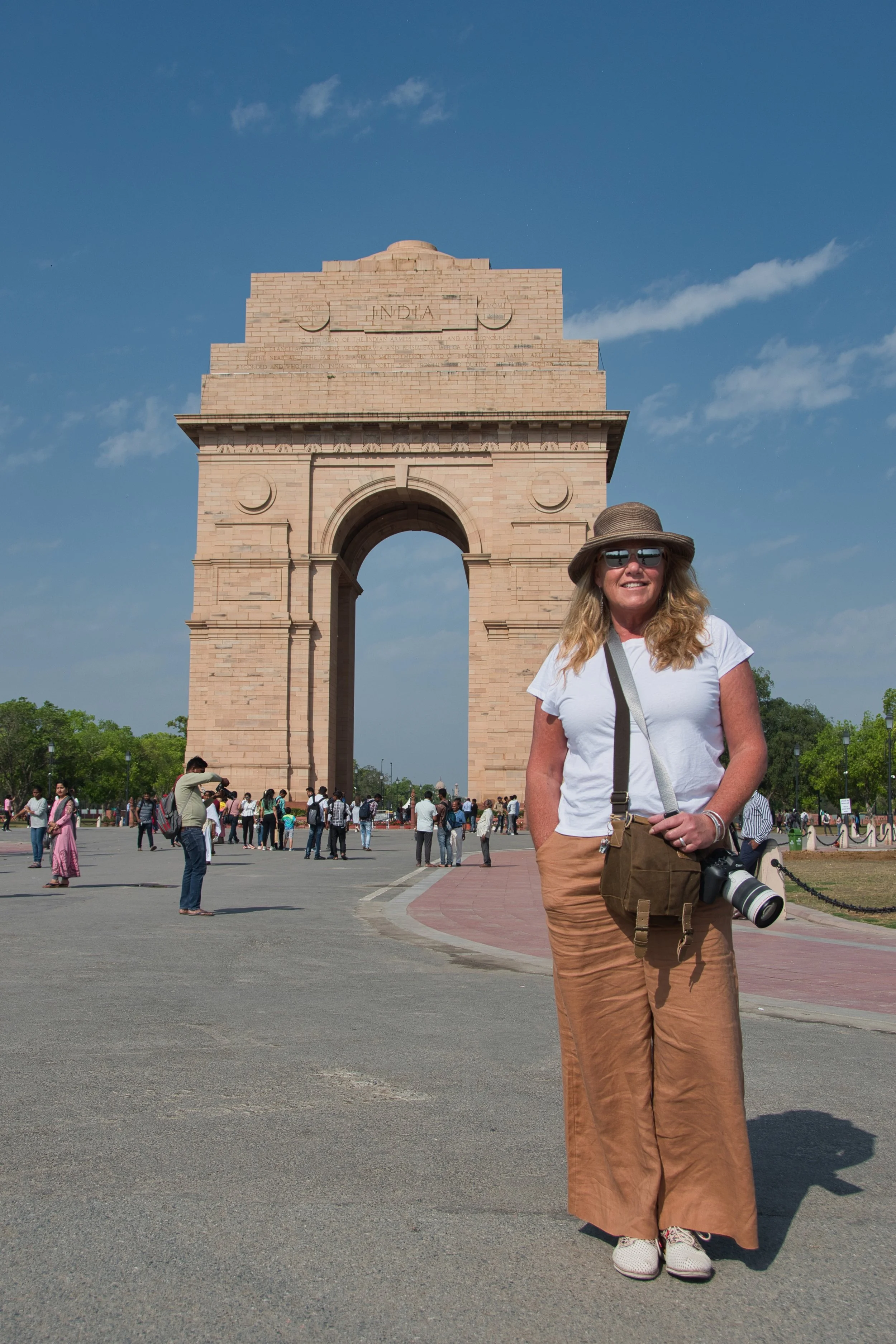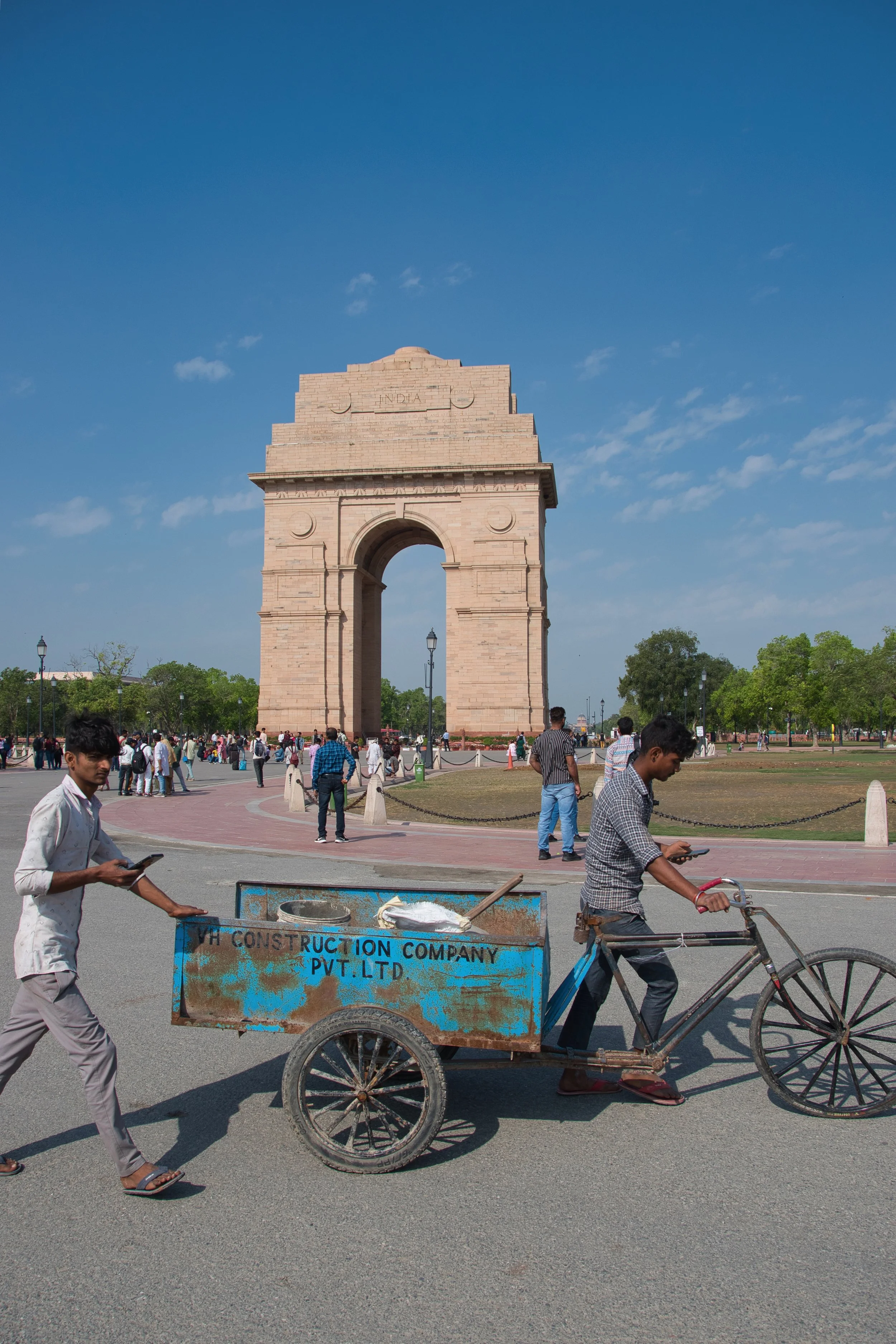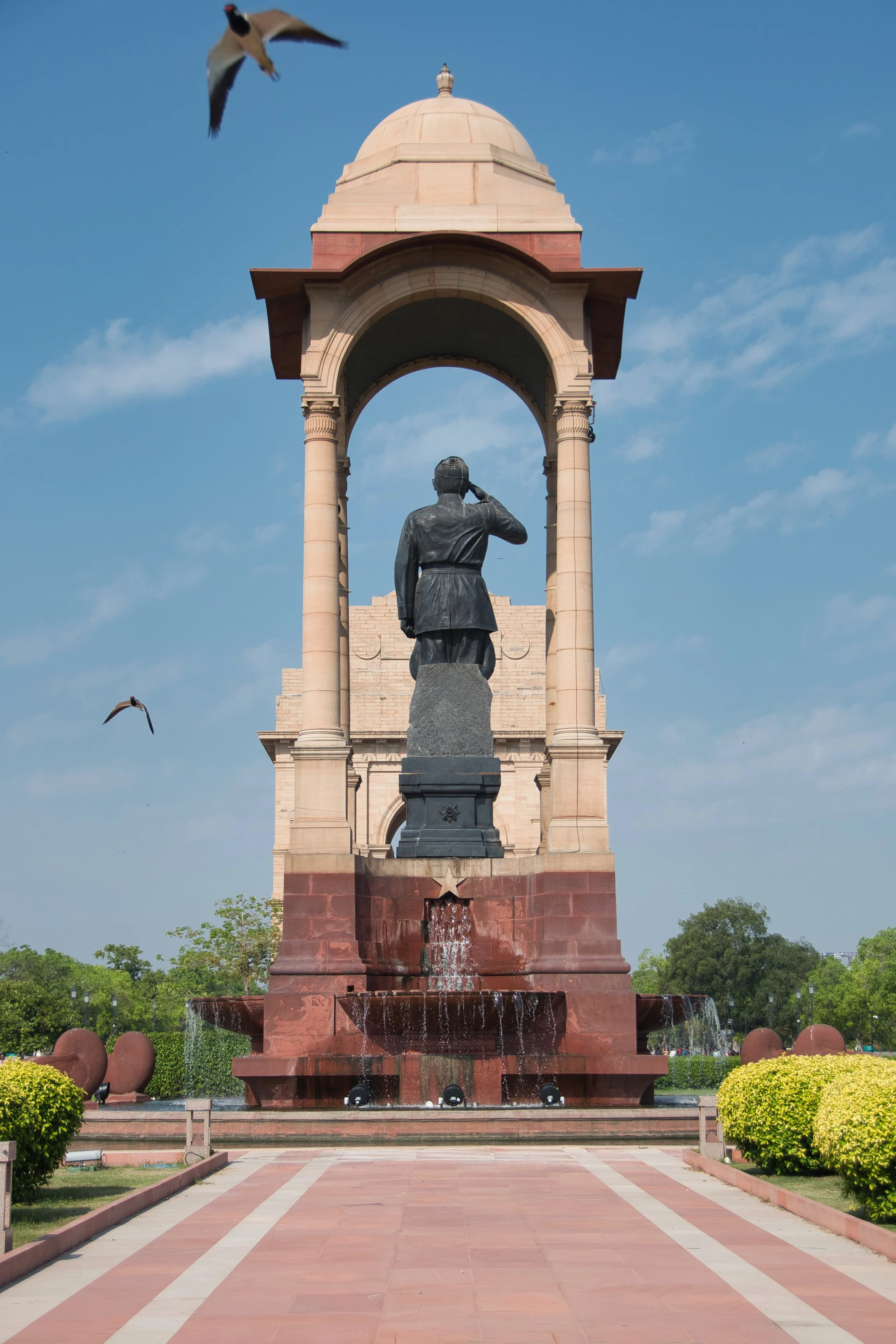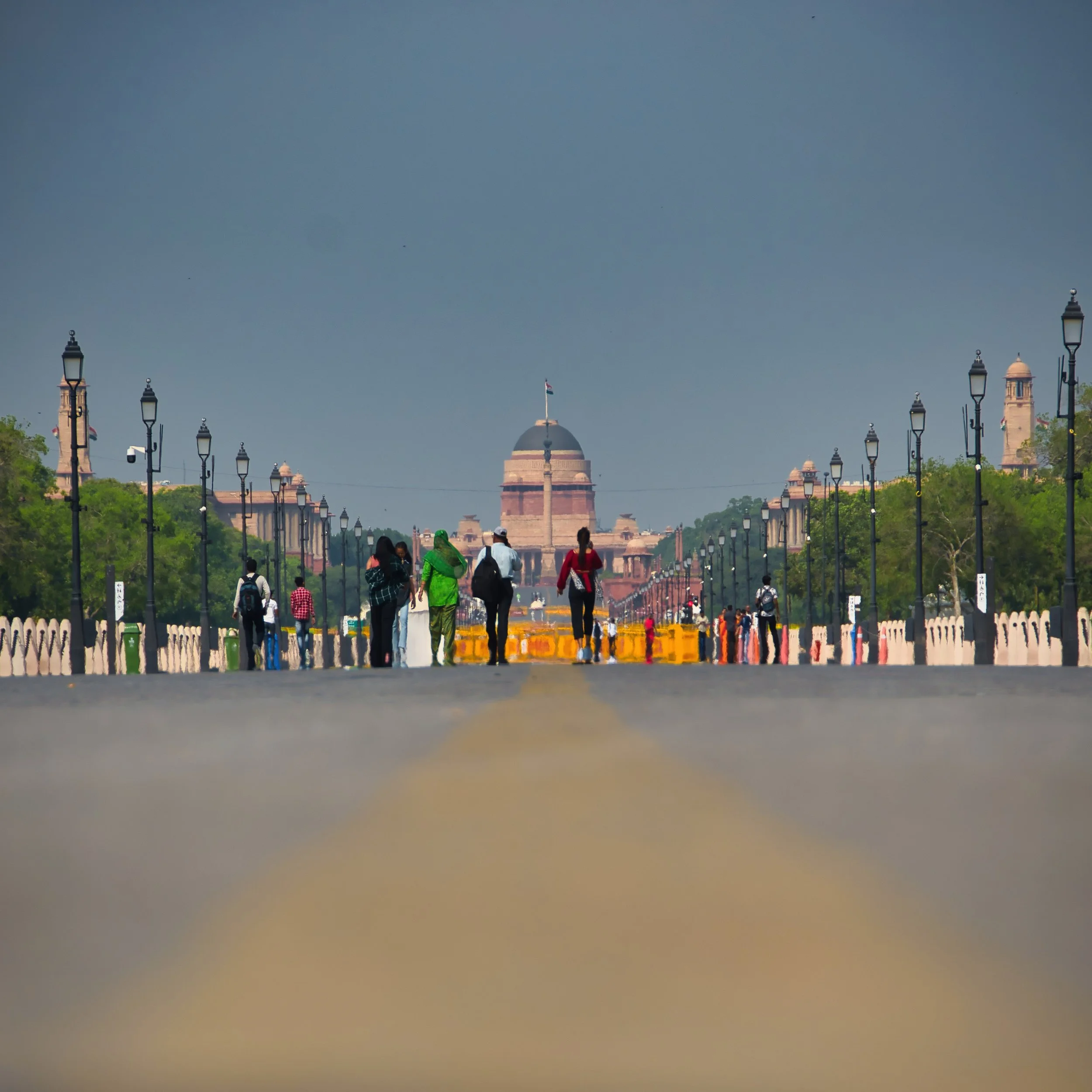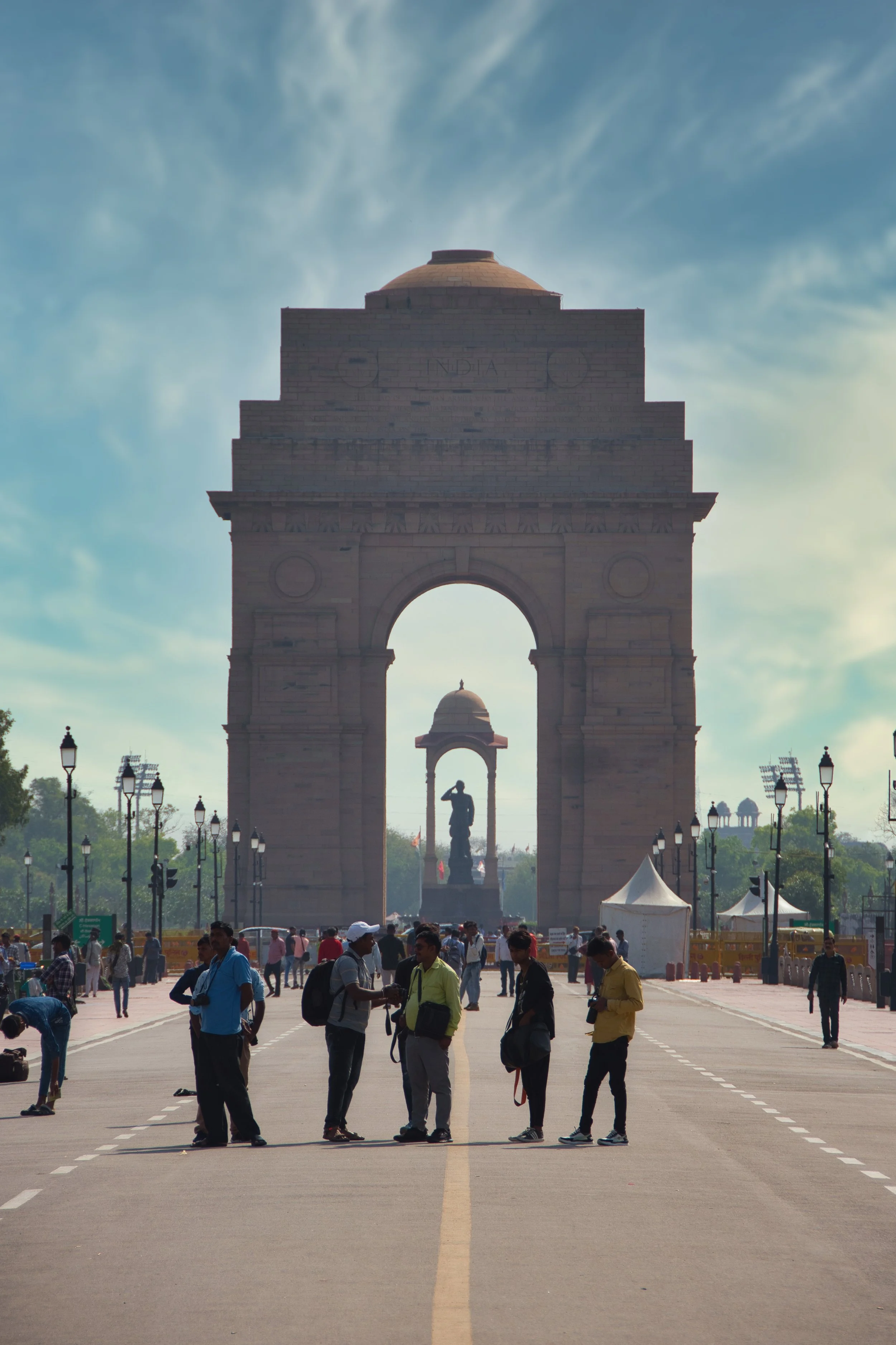 Our flight home the next day wasn’t until 9:00pm giving us a full day left in Delhi - hence the hotel upgrade. We had one final thing to do and negotiated a tight deal with Ganache to take us back to the previously missed India Gate precinct in the morning. The India Gate is a war memorial located on the Kartavya Path forming part of the "ceremonial axis" of New Delhi. Amidst the hustle and squalor of chaotic Old Dehli this vast area is the complete opposite offering travellers much needed respite. Ganache took us through the nearby international embassy row with its broad avenues and sweeping manicured gardens adding even more tranquility to our relaxing day. Here the cars actually stayed within the lane marking and stopped at intersections. The morning too was clearer with the sun burning off any remaining haze and we parked up allowing 2 hours for our final wander. The main arch stands as a memorial to the 84,000 soldiers of the British Indian Army who died during the First World War. It is flanked by long canals running parallel to the Kartavya Path leading all the way to the Presidential Palace to the west.
