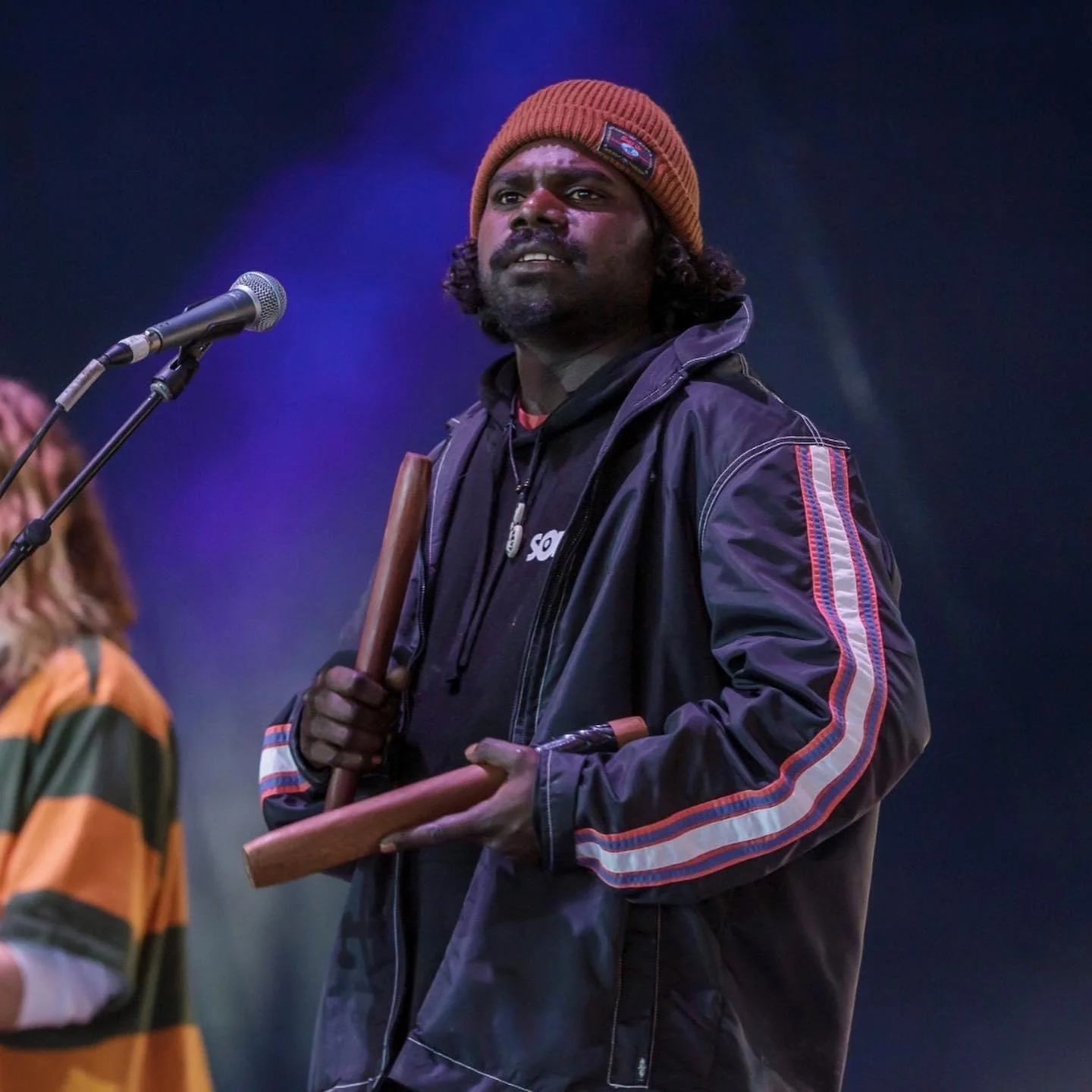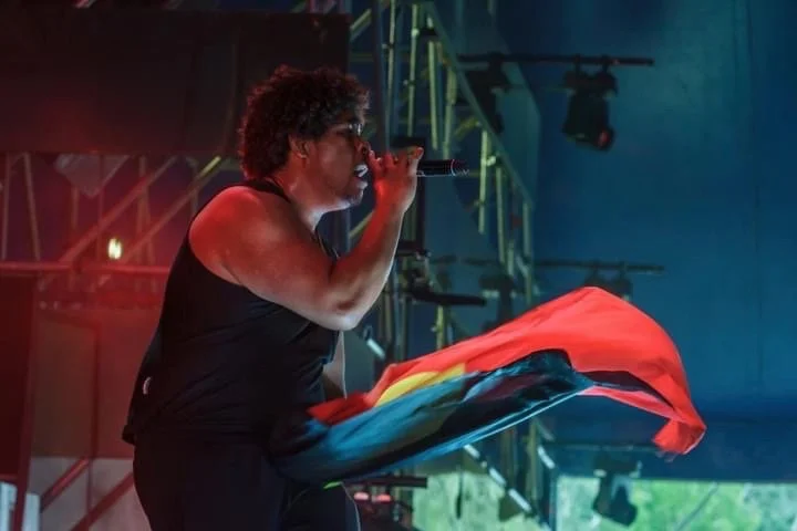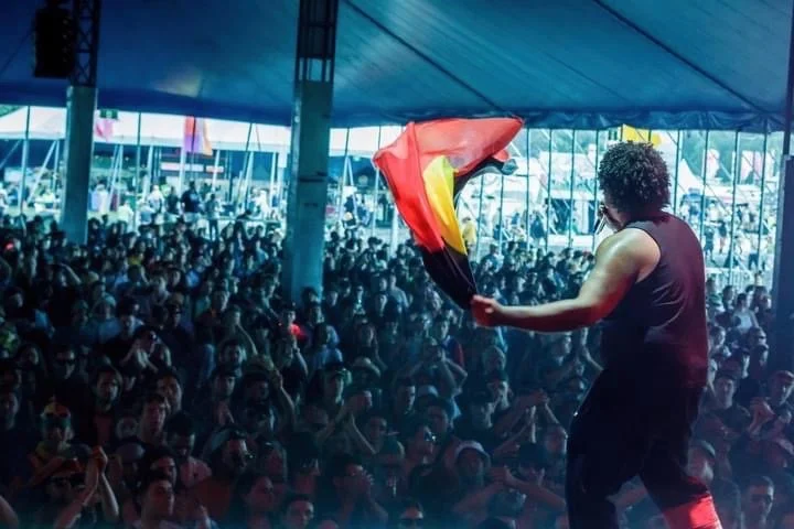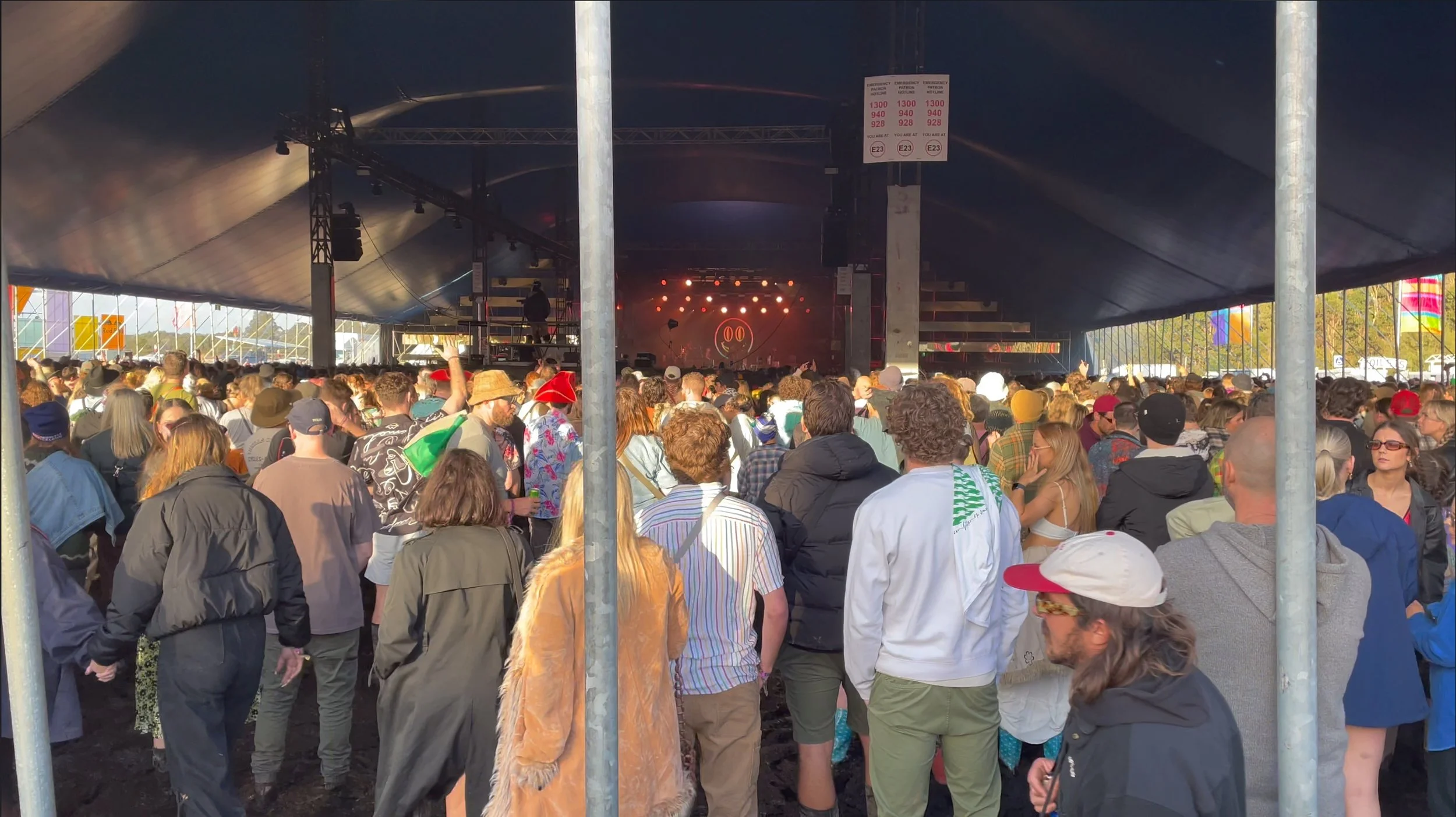 Rounding out our Mix Up trifecta was the enigmatic Genesis Owusu and his highly anticipated show stopping performance. The Ghanaian born Canberra based multi award winning artist, described to “globally surpass genres and disrupt boundaries” took control from the moment he entered the stage - riding on the hooded backs of 4 of his stage dancers - and we knew we were in for something special. The music was uplifting combining many genres into a new inexplicable one, and his tight knit band were equally theatrical as the troupe of dancers weaving their way effortlessly into the stage presence created by the front man. The creativity, energy and artistry packed into a non-headlining act can not be overstated, with the only negative being it wasn’t scheduled for the amphitheatre and 50,000 people to inhale. Only minutes before Lyndall took a spill in the ladies toilets coming out covered in mud making this adventure even more memorable.