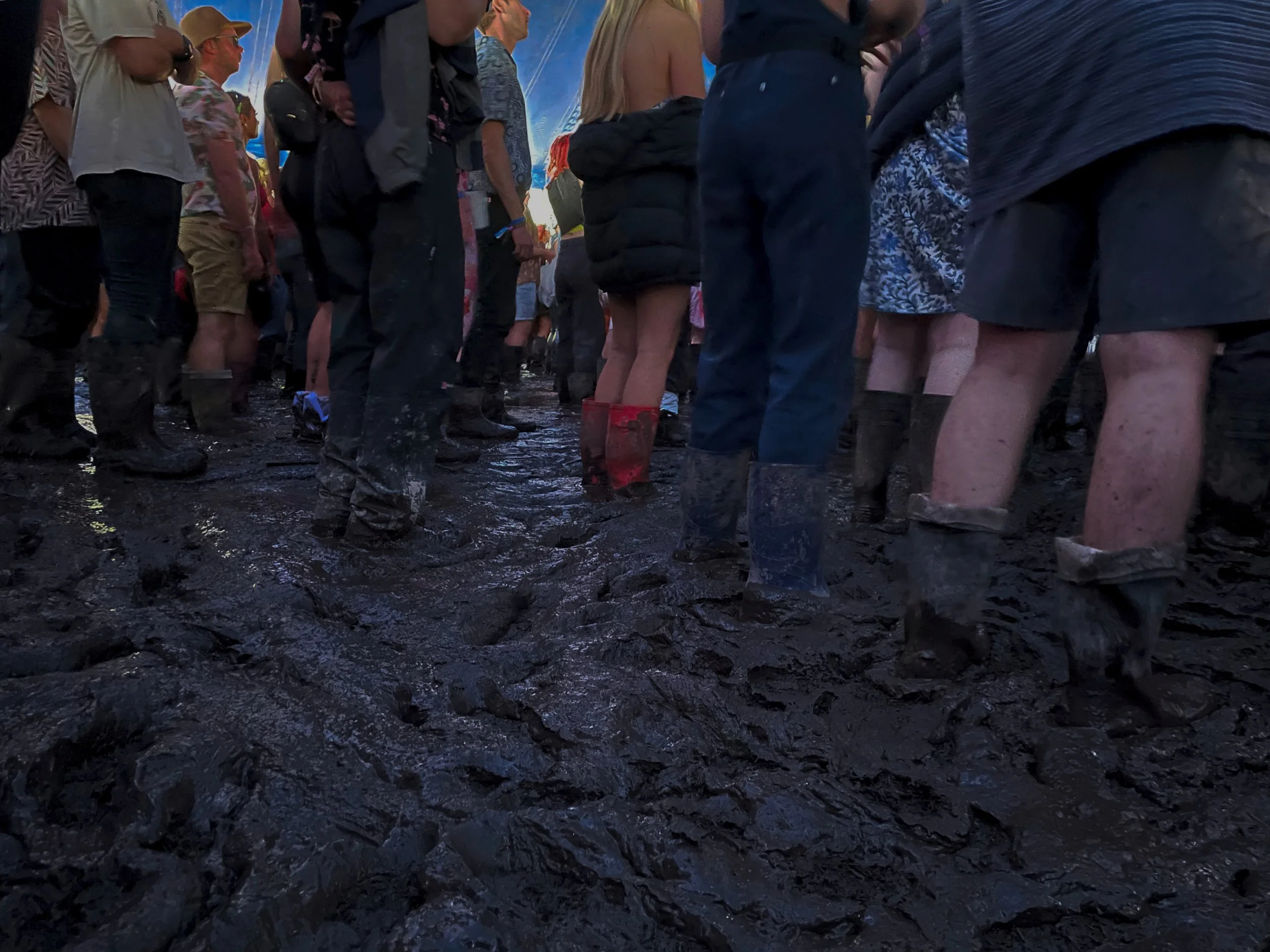 Despite the never ending tirade of online abuse, event organisers managed to lighten the mood with a very clever addition to their offical signage. The main stage facia consisted of two giant screens joined with a digital banner across the top. Normally plastered with the event name, a few keyboard taps change it to SPLENDOUR IN THE MUD for the final day. We found this amusingly appropriate though many other mud rats remained pissed off by everything else.