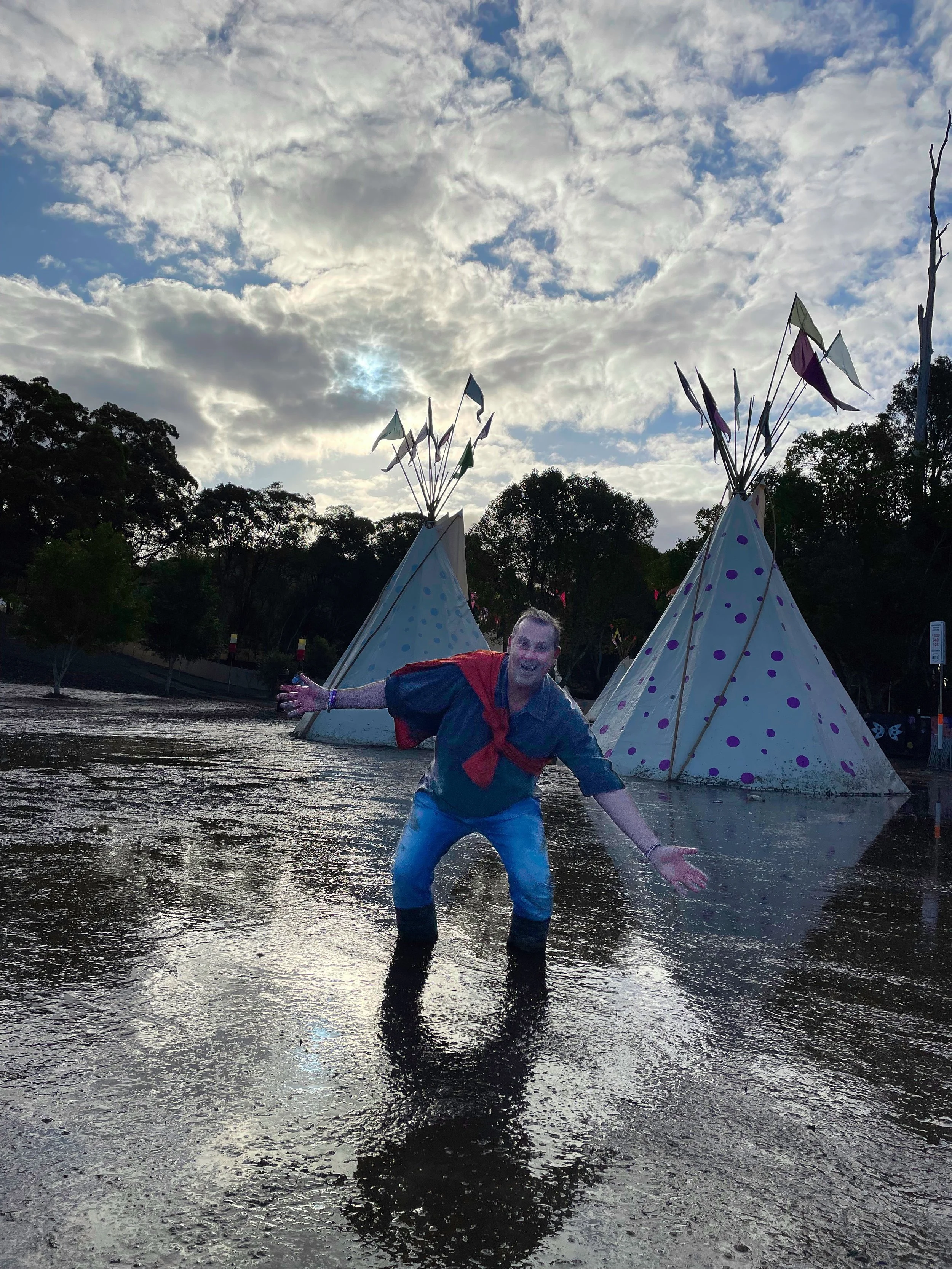The BOM website Sunday morning had more hits than Elvis Presley and the predicted sunny skies thankfully arrived. Having little to no effect on the Somme battle field between the campgrounds and festival, the procession of now fully glammed up patrons marched its way across World Stage Lake and unavoidably through the Ganache Pond. We sought refuge in the VIP village to enjoy a breakfast of Vodka Redbulls and Smirnoff Lime and Sodas. Anything to numb the expected pain.