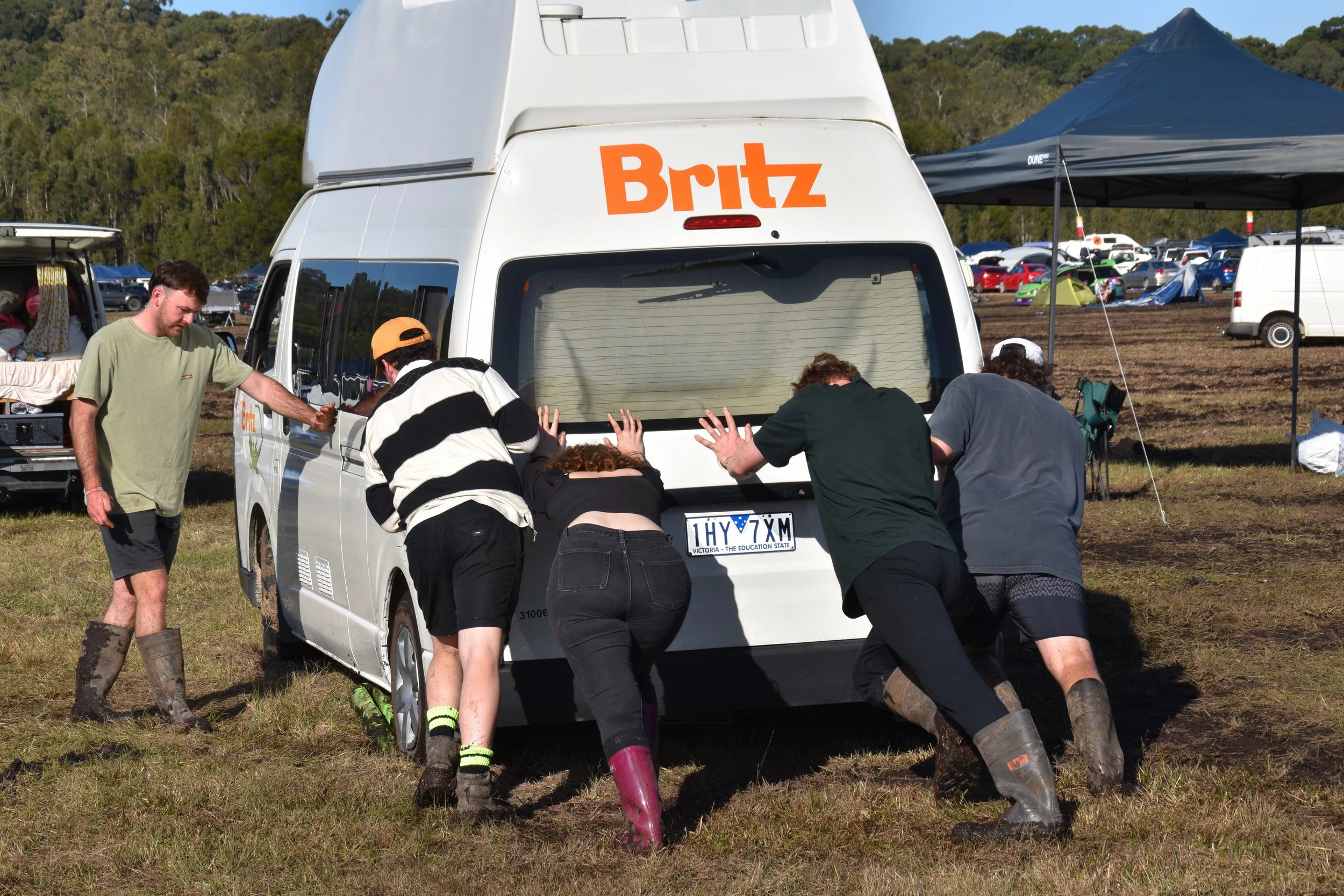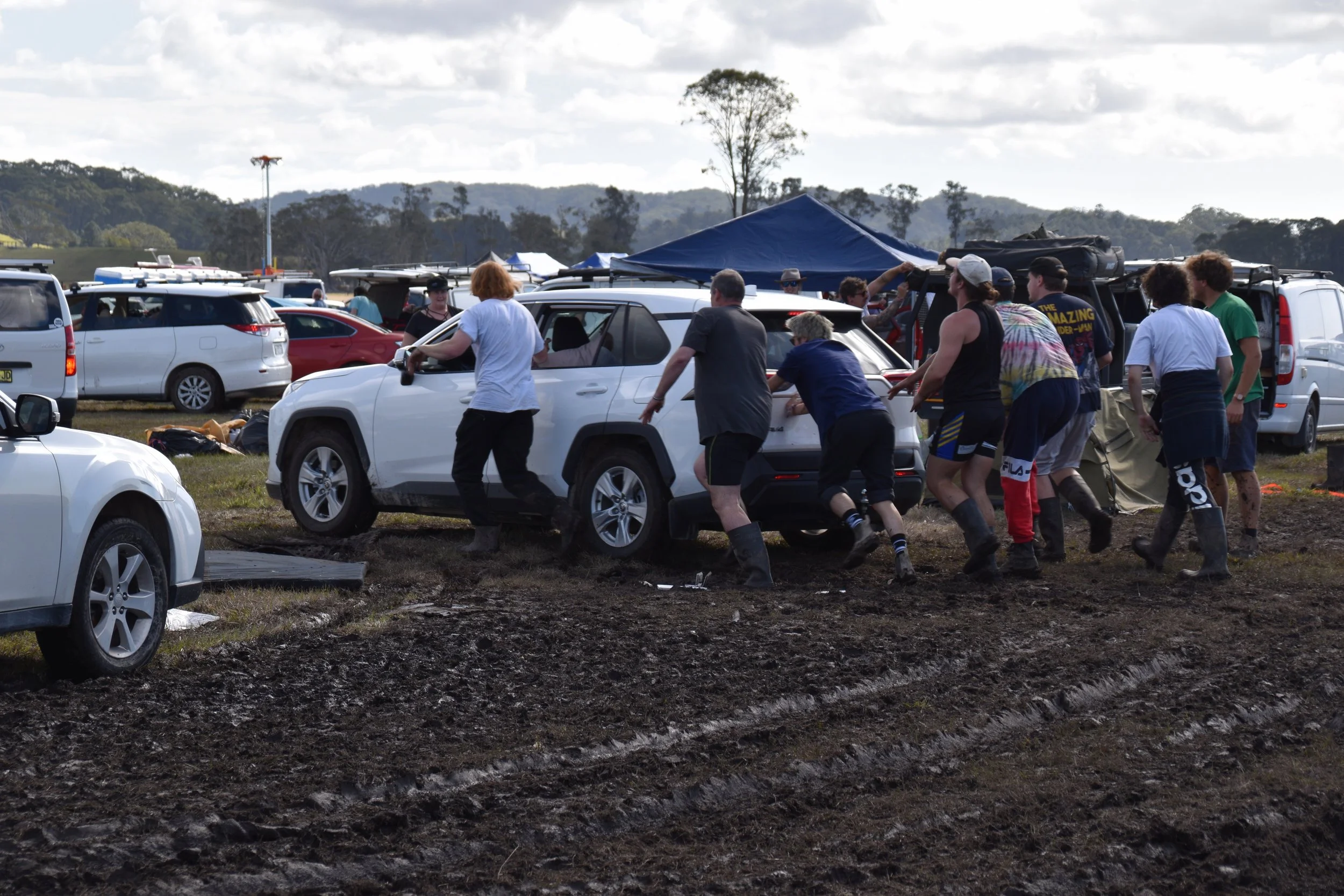 Monday arrived along with little notion on how we would all leave the North Byron Swamplands before nightfall. 7am saw the first cars depart but they were the lucky ones parked on either high ground or the shoulder of the road. For the rest of us it was a matter of grouping together in gummies and shorts, grabbing a Red Bull or two, then strategising as best we could nursing 3 day hangovers and early onset diphtheria. With all the hi-vised Splendour officials busy in other paddocks, the masses rallied beautifully and systematically removed each car through sheer brute force. In the end we unlocked every vehicle from their 4 day mud prison, including the frightfully heavy Warren, to meander back through to the entry gates. We were unclogged by 11am, out off the gates by 12pm and back in Byron Bay by12:30pm for lunch. There we stayed another 2 nights to decompress, wash away layers of built up mud, and lament the end of another Splendour in the Grass.