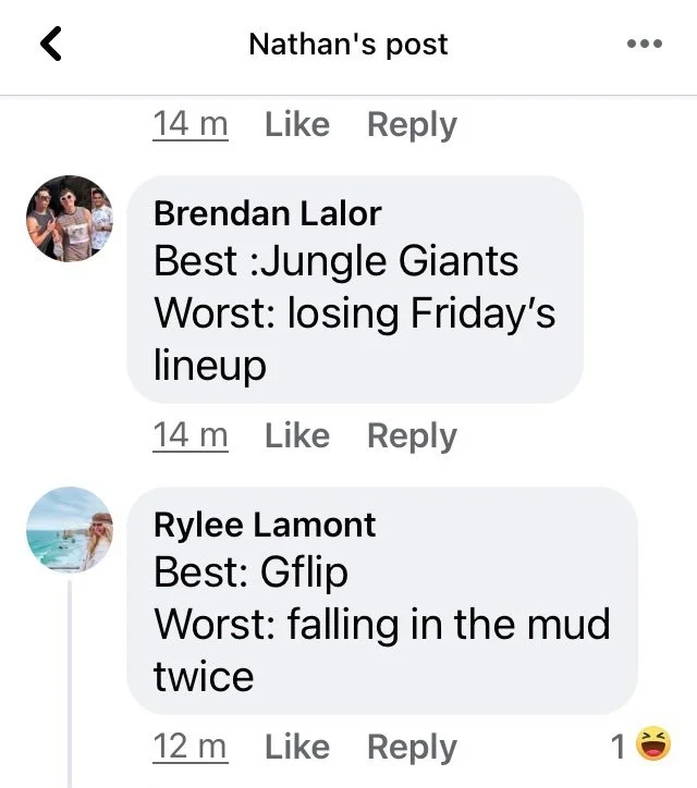 The lines were excessive, the buses non existent, the rain persistent, and all had to stand in ankle deep mud for hours on end with no toilets, warmth or water. Organisers did however go all out World Vision to provide a soggy banana to some. It was a shitshow beyond compare and understandably many questioned even coming back for the Sunday edition. While the reviews were universally scathing, the decision to try again was equally divided, however we think Lillian Tabacco hit the nail on the head with her delightfully sarcastic 6am Facebook post…