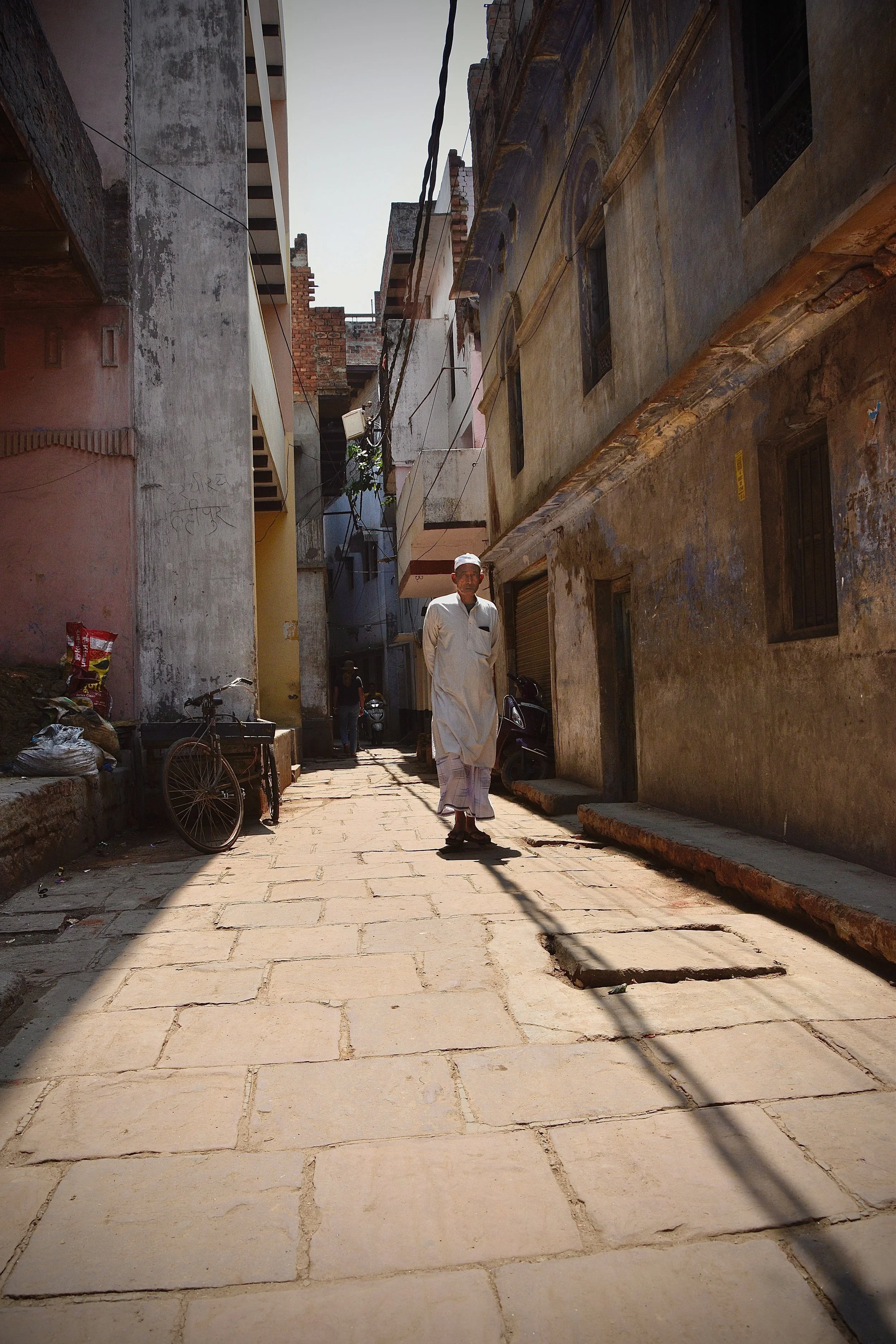 We had only hours before seen the sun rise over the Ganges and the light that day was simply incredible. It stayed that way well before midday and that is when this image was discovered. I noticed the scene and stopped to better identify with it. You’ll even see Lyndall faintly in the shadows as she kept close to our guide. I though stopped, crouched to ground level and played with the settings as this was no run and gun capture. I was on ISO 400 that morning because of the dark shadows of alleyways and moved the f stop to 5.6 because I wanted a sharply focused central image with a slight degree of bokeh to accentuate. A focal length of 18mm (the widest available on the lens being used) was employed to grab as much of the scene into frame and add that distinct wider angled feel. Lastly I was wanting a subject and hence the shutter speed was moved to 1/2000sec to capture that without movement and why the other points of the exposure triangle were adjusted so.