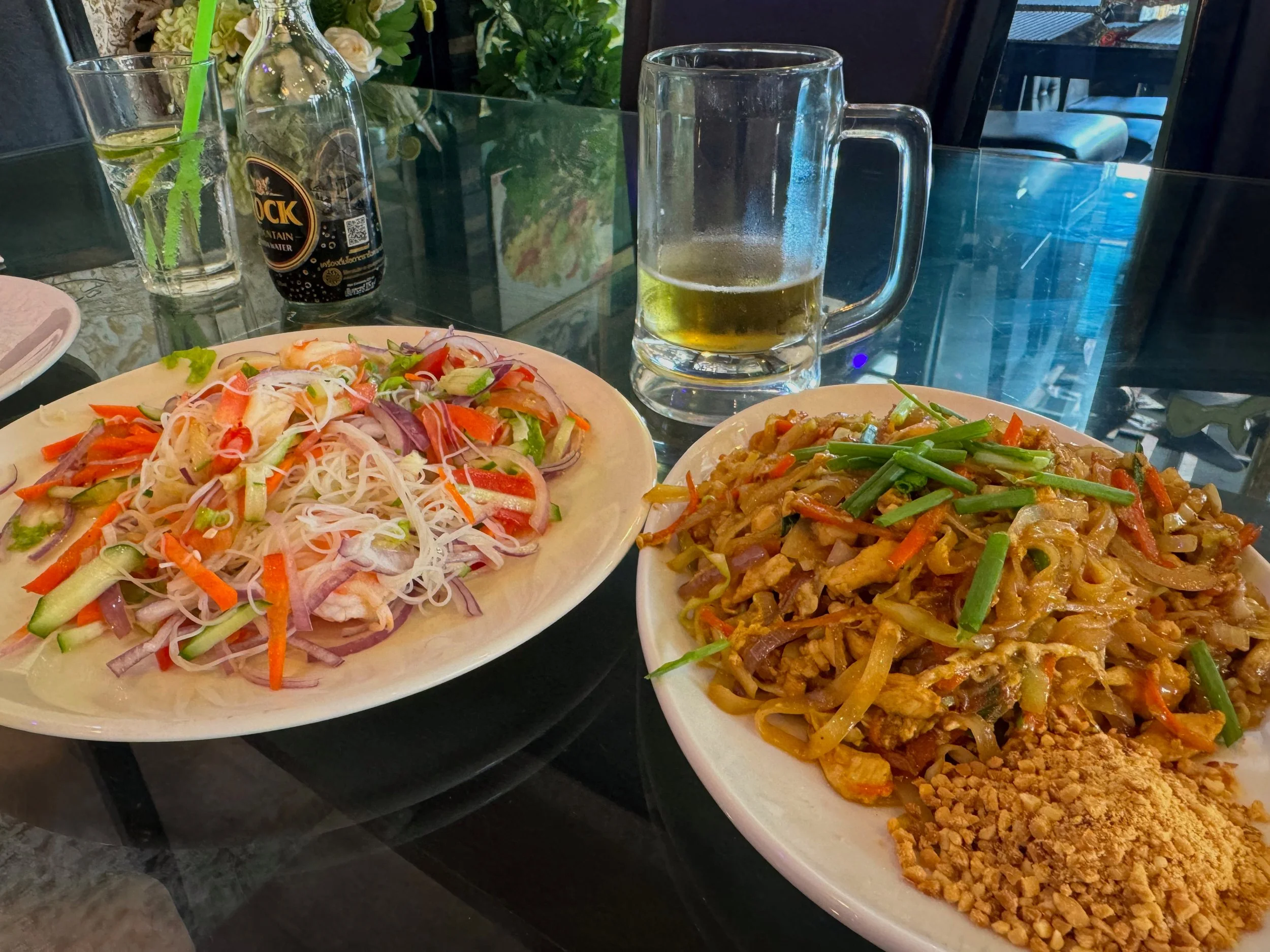 Bang La Road by day is a shadow of its nocturnal self coveted by vehicles more than tourists, but the series of boarded shopfronts were indicative of what would be uncovered later that evening. A cheap and cheerful restaurant of no particular celebrity was selected for lunch where an obligatory Pad Thai and Glass Noodle Salad was chosen. Accompanied by a few infamous Singha Beers, the words of recently departed Shane MacGowan rang true….“Singha Beer don’t ask no questions, Singha Beer, don’t tell no lies”. That little ditty echoed in the mind for god knows how many hours !!