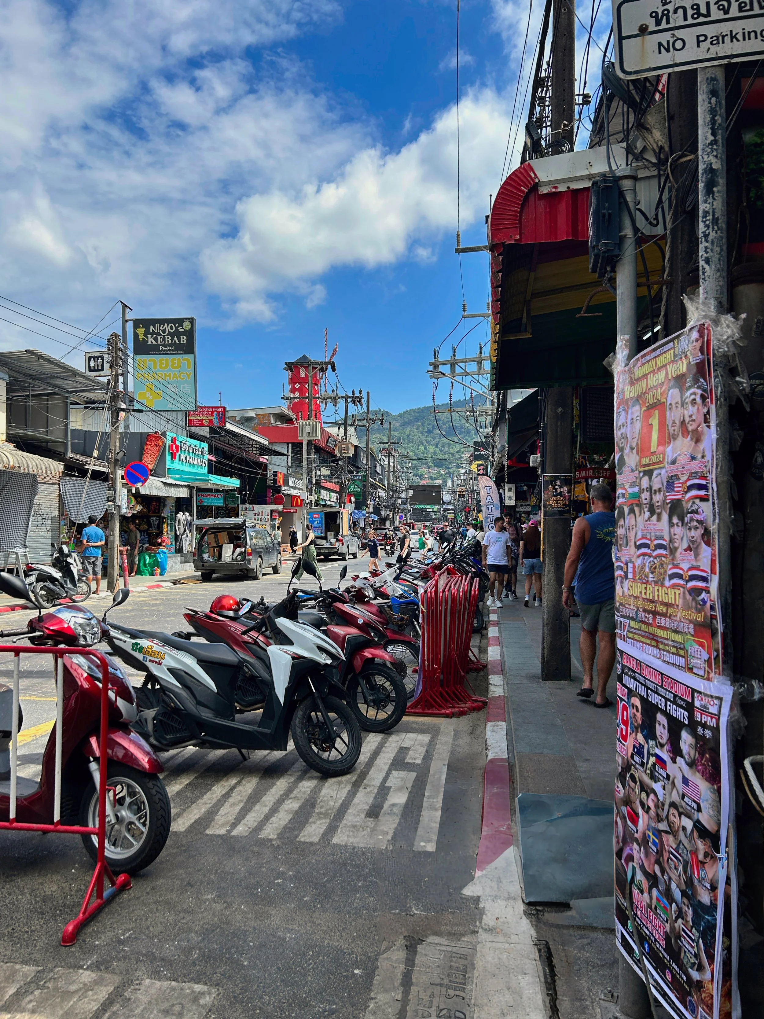 3:00am arrival or not a garbo is a garbo and a dawn wander was taken to the beach and town centre to get some bearings and earmark a few restaurants and bars for future visitation. Patong is pretty much like any other Southeast Asian beach resort town but already seemed a little less spoilt or “boganified” compared to others along the earths belt. The beach is nothing like Australia’s many or can compare to the Maldives, but the combination of water, sand, trees, street vendors, restaurants and bars all within metres of each other always seems special and instantly relaxing. No shirt, no shoes….NO PROBLEM.
