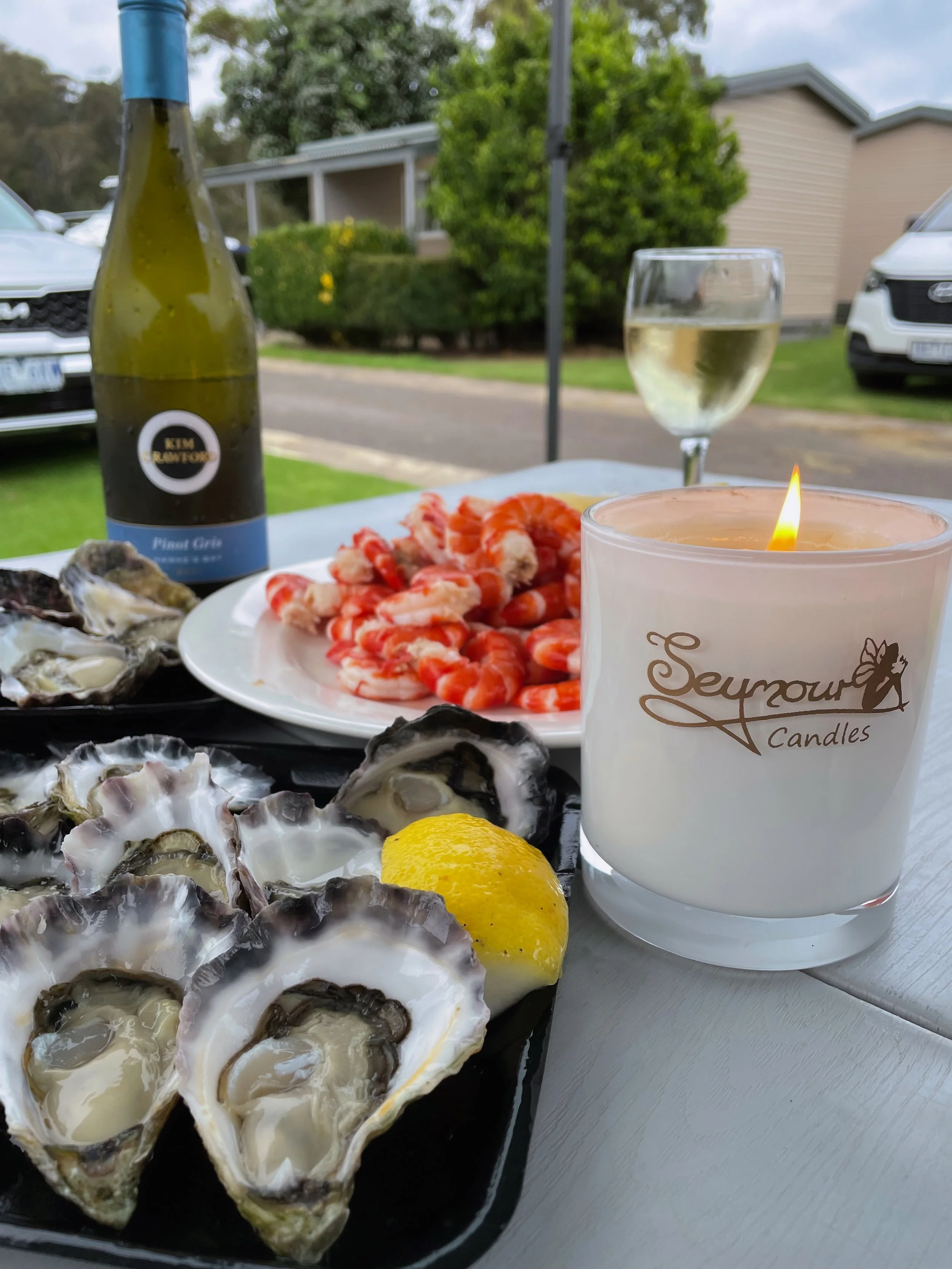 We arrived at Eden unfortunately carrying the conditions of Thredbo, but as our planned meals purposely expired the night before, we headed straight to Eden wharf Co-op for a bounty of obligatory prawns and freshly shucked local oysters. We can’t exactly remember what white wine we had that night, but all 3 of them accompanied the meal perfectly.