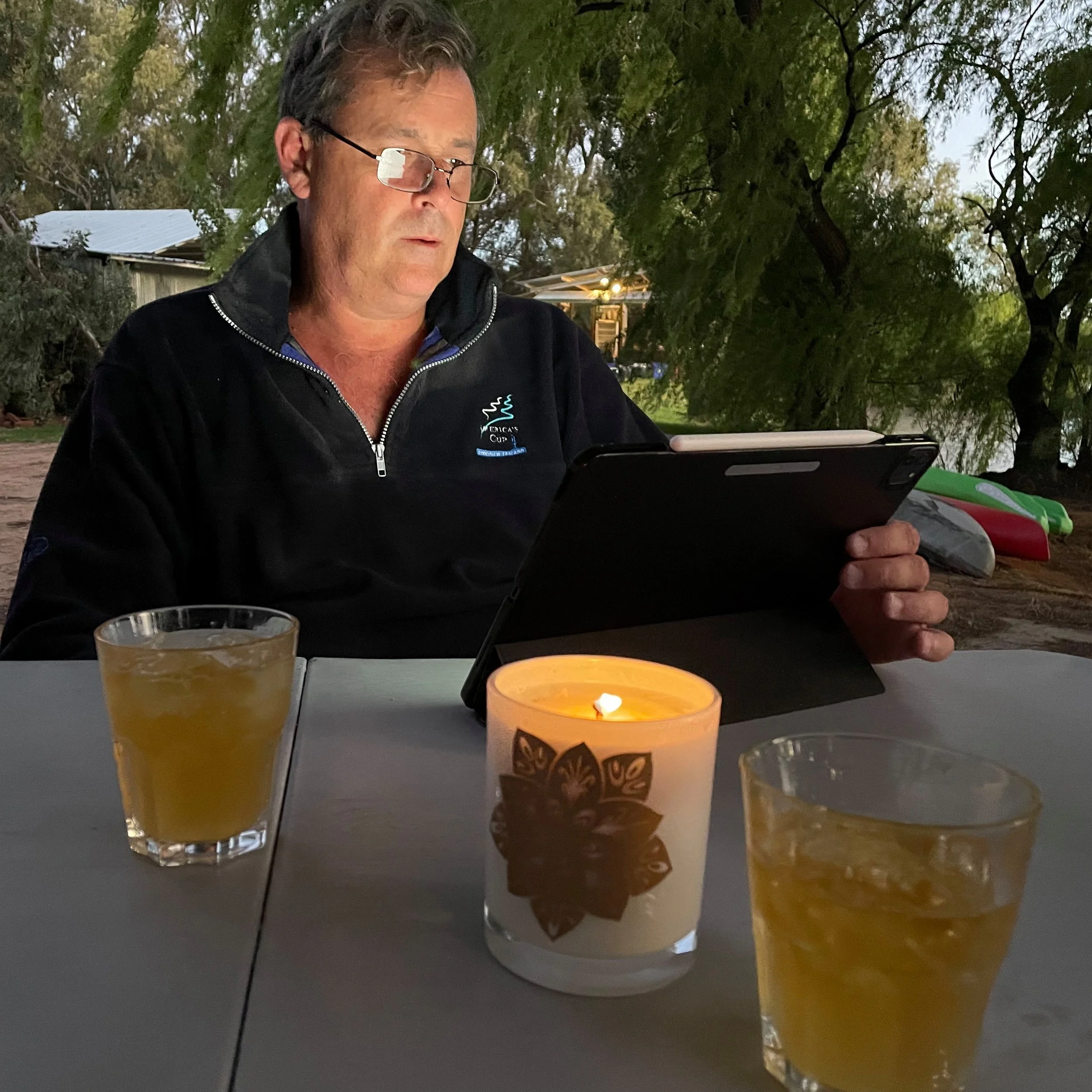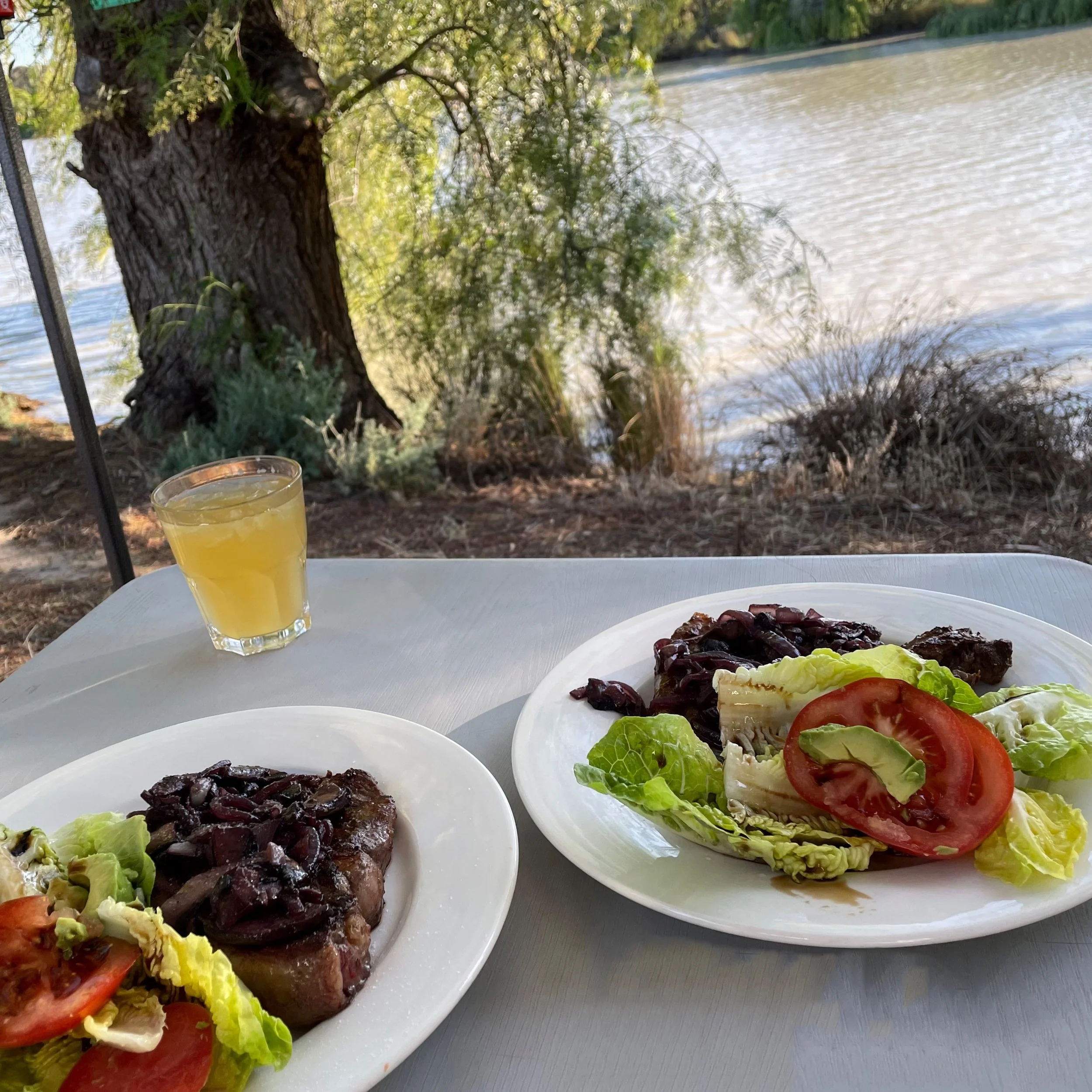 Sunset was shite, alas a cloudless sky, but we were happy to drink wine under the cool shade of the aforementioned willow trees. It was here we meet Fugly the farm dog – not his real name but highly appropriate – who competently snapped at the buzzing flies, and yet ate steak from a fork with impeccable manners.