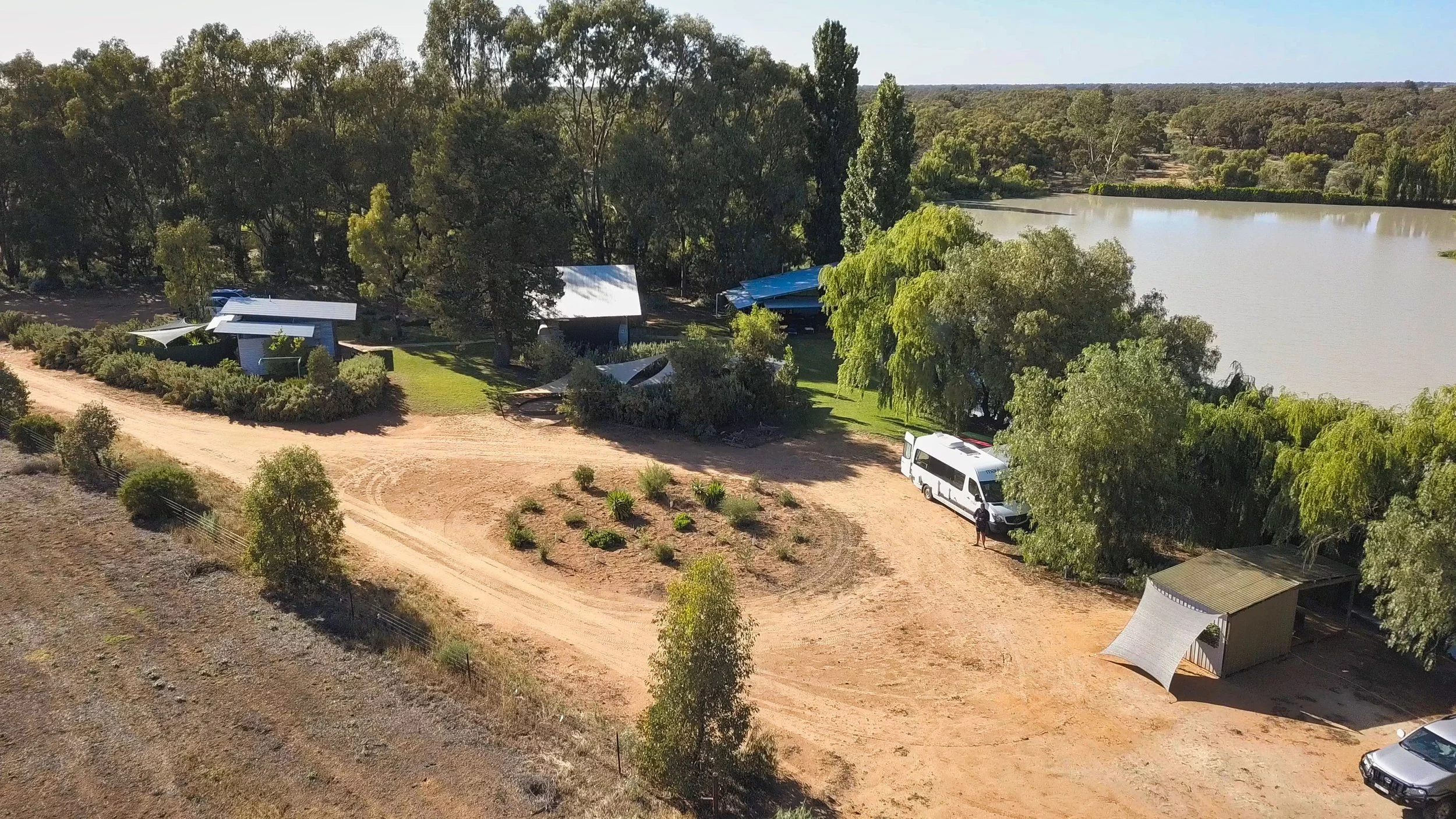 Any tour should balance caravan parks, bush camping, and the more recent rise of Hipcamp Farm Stays. A little out of our way, but when planning this trip one we had to see, was Burraburoon farm stay located on a working sheep station half way between Hay and Deniliquin. Departing the Cobb Highway, on only 15km of private road, this virtual refuge provided powered sites along the shores of a man made lake teeming with willows and bird life. The owner had only that day been pumping gigalitres of water into the adjacent wetlands as part of their own environmental protection zone for the Southern Bell Frog. Not only is this family, like many others throughout the country, rearing food for our table, but they are making it accessible to the traveller while also giving something back to Mother Nature.